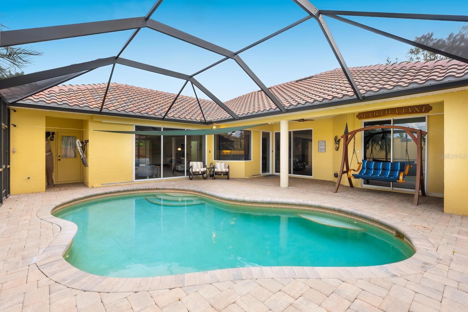 Tucked away on a private cul-de-sac in one of Sarasota's most sought-after communities, this 4-bedroom, 3-bath custom home is designed for relaxed Florida living and entertaining. The spacious kitchen with breakfast nook flows seamlessly into the family room and out through pocket sliders to a caged, heated pool with an expansive covered paver deck--perfect for gathering with friends and family. A split plan ensures privacy, with a generous owner's suite featuring dual closets, a spa-like bath with double vanity, walk-in shower, and soaking tub. Guests will enjoy their own wing with two bedrooms, a shared bath, and a flex/office/bedroom room with additional bath offering pool access. Formal living and dining rooms provide added space for hosting, while wood and tile floors throughout add timeless style and effortless comfort. Outdoors, the fully fenced yard offers room to play. With a 3-car garage, new roof (2024), low HOA, and A-rated schools, this move-in ready home combines comfort, convenience, and lifestyle--all just minutes from I-75, Legacy Trail, downtown Sarasota, and the award-winning beaches of Siesta Key.