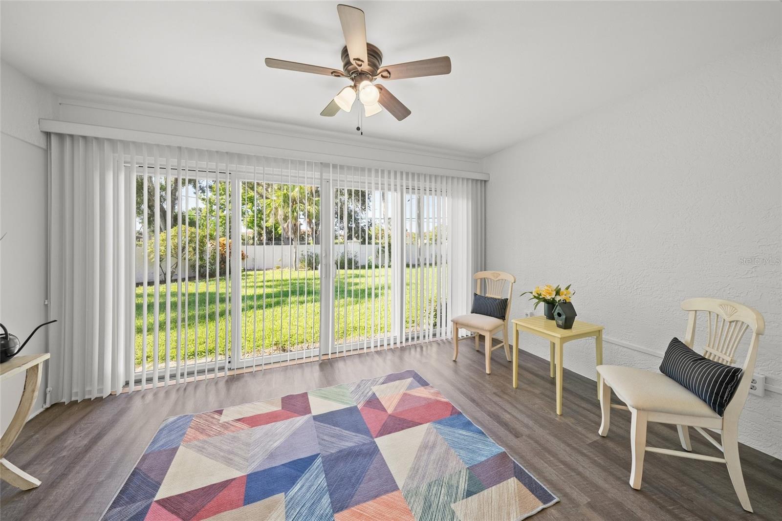 Exterior: Hurricane Shutters, Lighting, Sidewalk, Sliding Doors