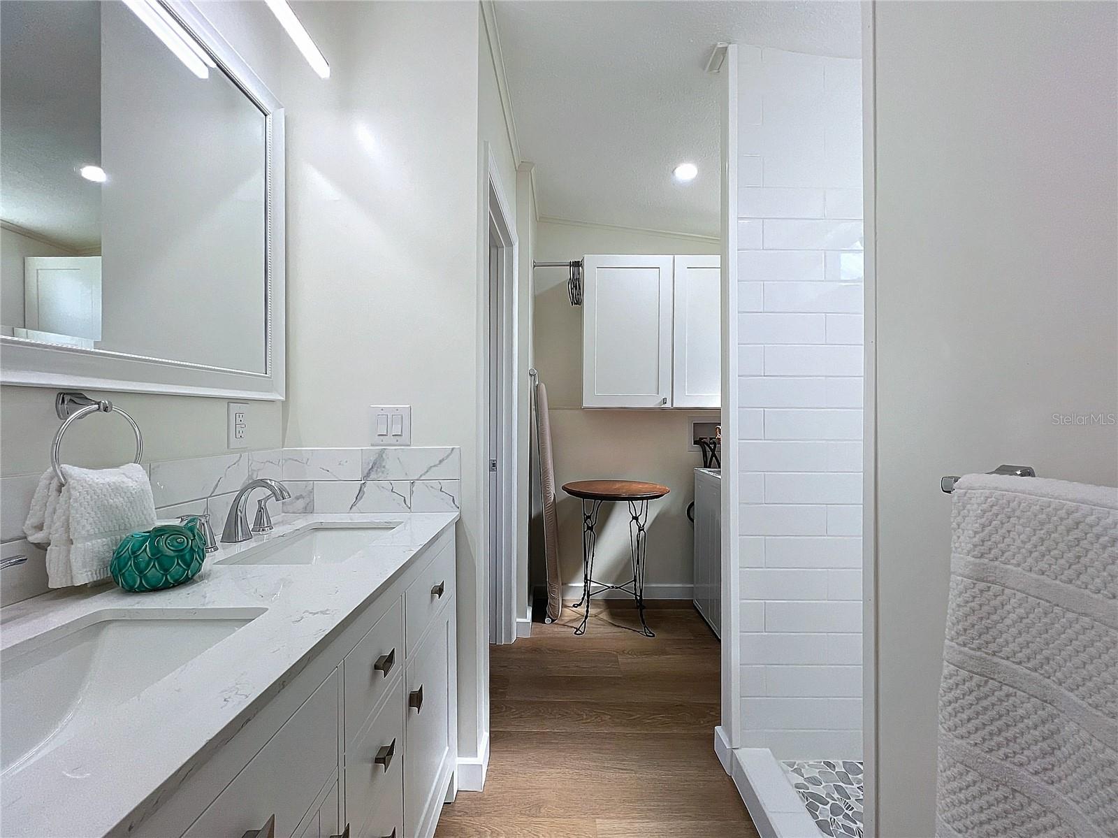 ARE YOU SEARCHING FOR A 55+ RETIREMENT COMMUNITY THAT IS LAND OWNED? THIS UPDATED & FURNISHED 2 BEDROOM, 2 BATH HOME IS WAITING FOR YOU! Inviting floor plan with coastal cottage decor throughout. REMODELED KITCHEN (2024) with stainless steel appliances, quartz countertops, wood shaker soft-close cabinetry, closet pantry, breakfast bar, and a bright sink area with large corner windows. The adjacent dining room has a wall of lighted built-in cabinets. Plenty of room for entertaining in the ample living room. The spacious primary bedroom has a walk-in closet and en suit bathroom. That primary bathroom features a tiled shower with new plumbing fixtures and dual sink vanity with quartz countertop. Laundry room is also off the primary bedroom and includes a never used all-in-one washer/dryer unit. Charming second bedroom with walk-in closet. Vinyl plank flooring throughout. Enclosed side porch with sliding windows and tile floors. Carport. Storage shed with electricity and utility sink. Central A/C (2022). Double-paned vinyl windows. Vapor barrier, tie downs, and longitudinal stabilizers are all ready for foundation inspections. The PET FRIENDLY community of Ridgewood Oaks offers a heated pool & spa, 24-hour guarded gate, clubhouse, tennis courts, pickle-ball courts, shuffle ball courts, covered outdoor fitness equipment, and plenty of opportunities to make new friends. Ridgewood Oaks is near retail, dining, worship, the public library, outlet malls, I-75, and of course the Manatee River. NO LOT RENT! Quarterly fees are $747 and include internet, cable, trash, & grounds maintenance. This property may also be leased with no waiting period. SO MUCH TO OFFER!