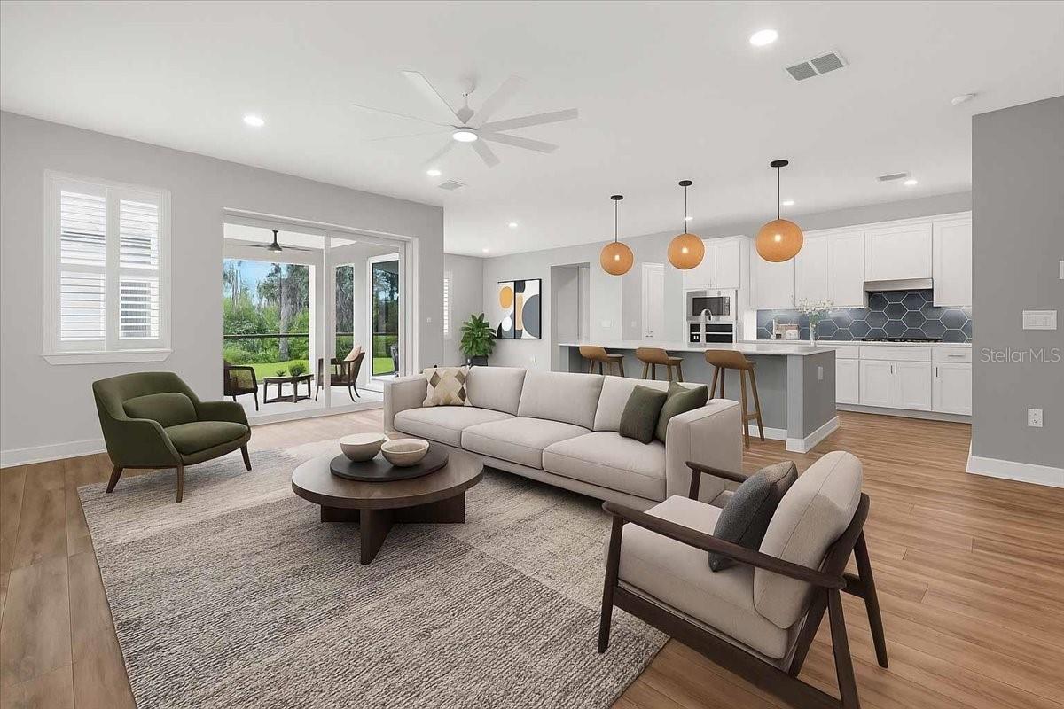 Immaculate, Like-New Home in Premier 55+ CommunityLife called and owners ARE offering their home for immediate sale. Home was built with $150k+ in builder options. From oversized 3 car tandem Garage to custom window options in living/dining room. Every upgrade possible from the highest grade cabinets. Recessed lighting in every room. Bay window upgrade (extended guest bedroom) with Stone front. Outdoor kitchen Gas/Water/Sink Pre-plumb. Pool/Generator prewired and gas hookups. Garage has water softer pre-plumbing. Garage has utility sink with hot/cold water. After closing homeowner added another $60k in upgrades including Professionally widened pavers, Climate controlled garage, custom garage flooring, garage cabinets, garage lighting, garage insulation. High end appliances and top of line Bosch refrigeration and Samsung Steam Washer/Samsung Steam dryer. Custom wood plantation shutters on every window. Custom Low Energy ceiling fans in every room. No flood insurance required. Private upstairs guest quarters with bedroom, full bath, living area, and flex space perfect for an office, craft room, or bunk beds. This home is truly above average in every way and must be seen in person to fully appreciate the quality, detail, and pride of owners. You can't build this home for this price! Please don't buy until you see this one!