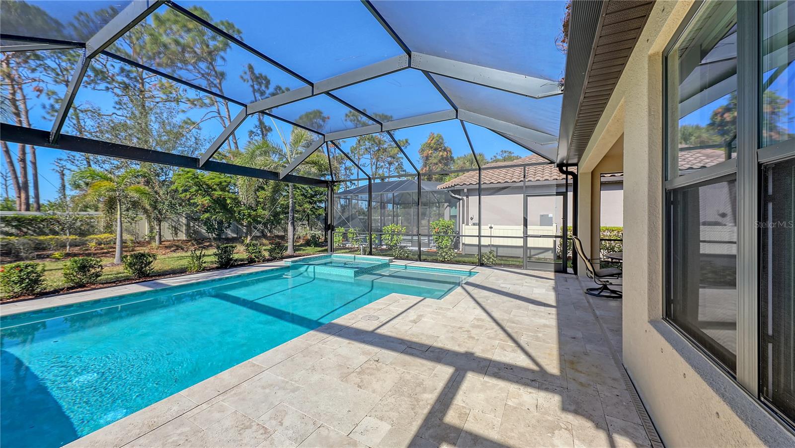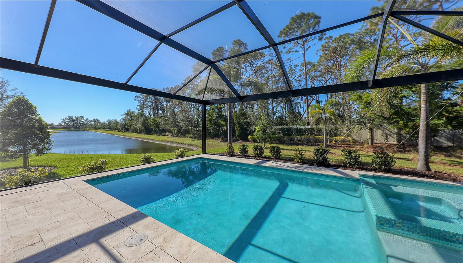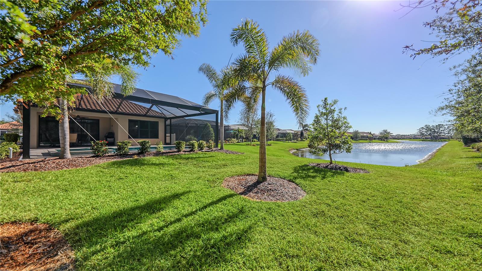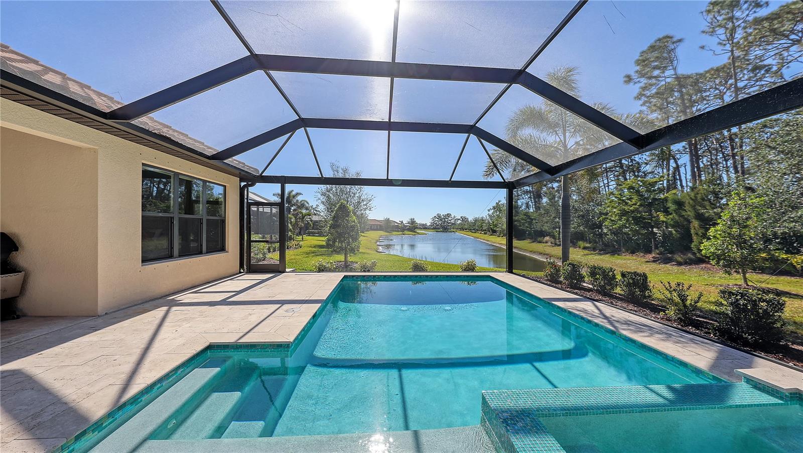 One or more photo(s) has been virtually staged. Welcome to this beautiful 3-bedroom plus den Arezzo Model, perfectly positioned on a premier lot in the highly desirable Bellacina by Esplanade community. Enjoy ultimate privacy with serene south-facing water views that create your own tropical retreat. A heated pool and spa complete the picture, offering the perfect setting for everyday relaxation or entertaining. The open floor plan is ideal for gatherings, while the natural gas kitchen is a dream for cooking enthusiasts. Notable upgrades include elegant plantation shutters, a spacious laundry room with abundant storage, reverse osmosis water filtration, a custom master closet by Affordable Closets, clear span pool cage screens, room-darkening shades in the primary suite, and a Tesla charging station in the garage. Upscale clubhouse with catering kitchen, fitness center overlooking the resort-style pool with cabanas, outdoor spa and firepit, pickleball, tennis, and bocce ball courts, cornhole and playground Two dog parks, full-time activities director for a vibrant social calendar. No CDD fees. Lawn care included in HOA fees. Direct gated access to Sarasota's Legacy Trail. Minutes to Nokomis Beach, Venice Beach, and Siesta Key Beach, plus nearby shopping, dining, and grocery stores. Don't miss the chance to own in one of Sarasota's most sought-after lifestyle communities. Schedule your private showing today and start living the Florida dream!