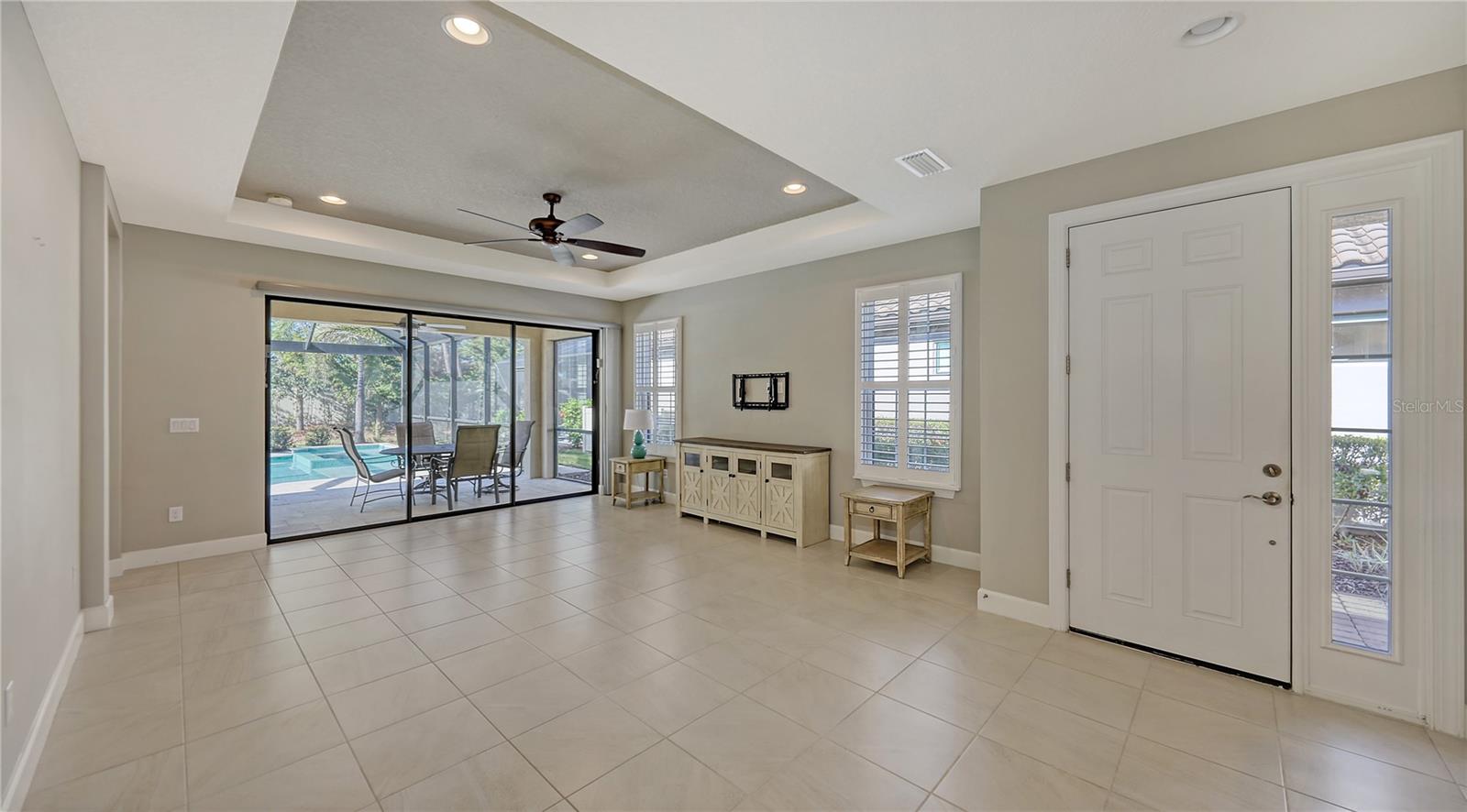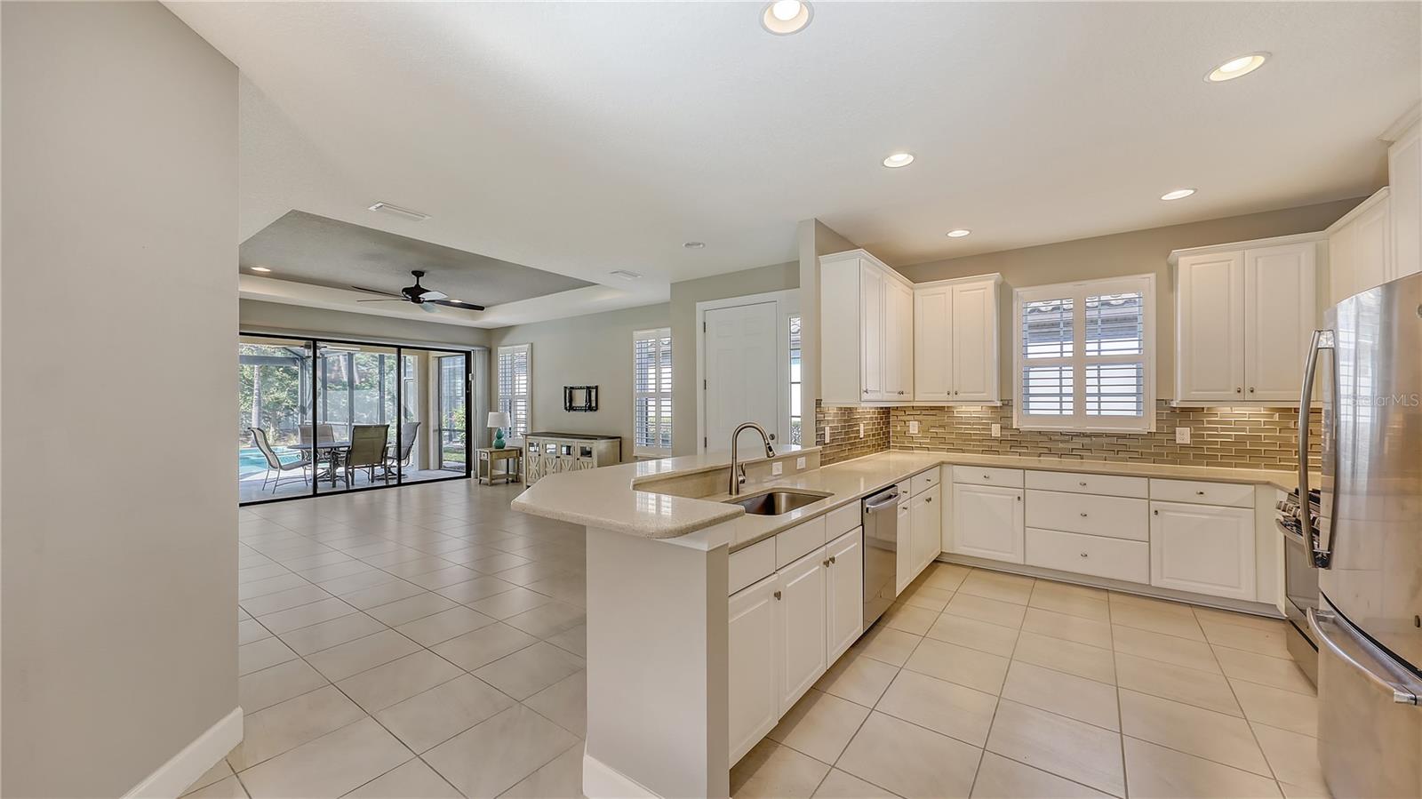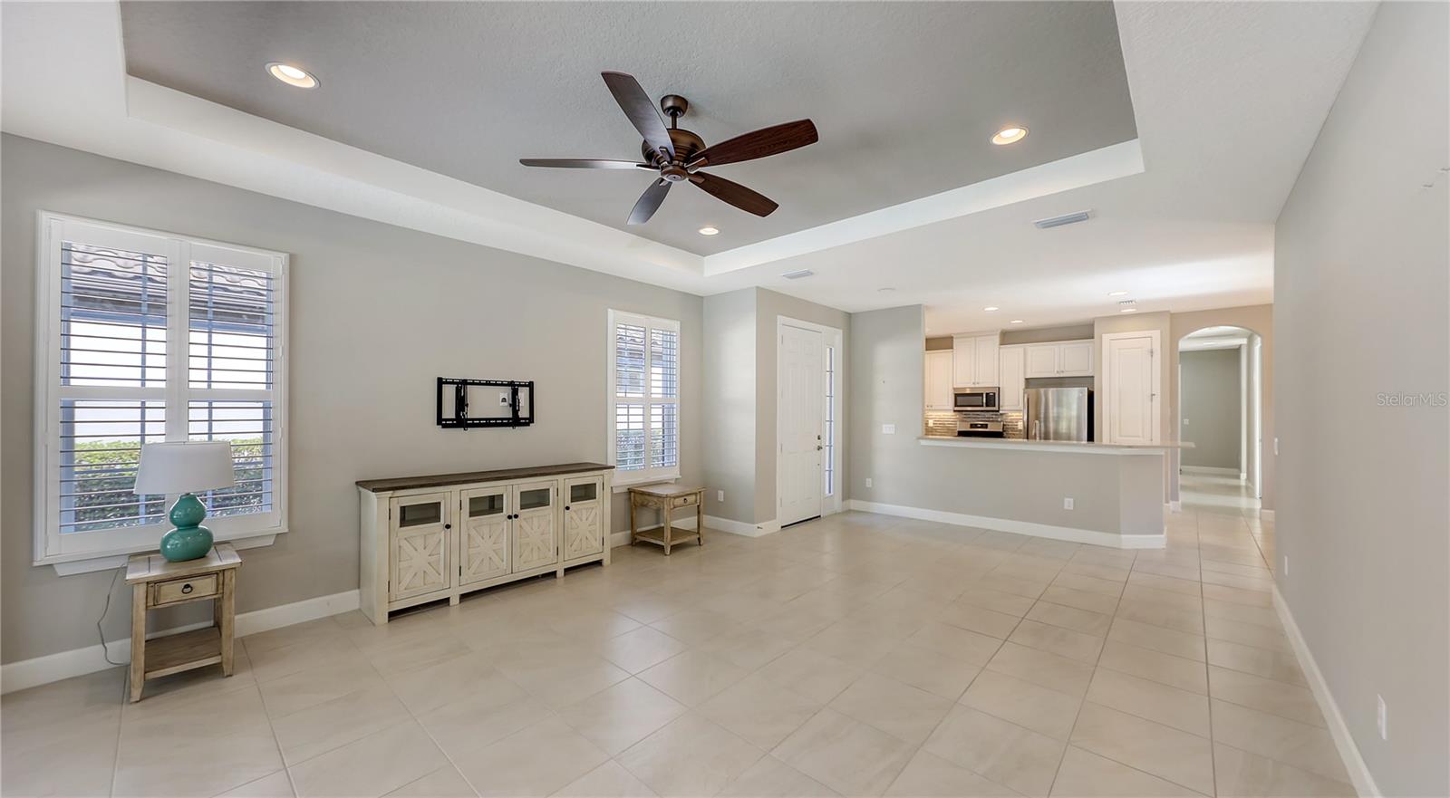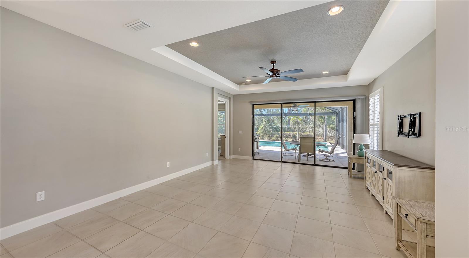 One or more photo(s) has been virtually staged. Welcome to this beautiful 3-bedroom plus den Arezzo Model, perfectly positioned on a premier lot in the highly desirable Bellacina by Esplanade community. Enjoy ultimate privacy with serene south-facing water views that create your own tropical retreat. A heated pool and spa complete the picture, offering the perfect setting for everyday relaxation or entertaining. The open floor plan is ideal for gatherings, while the natural gas kitchen is a dream for cooking enthusiasts. Notable upgrades include elegant plantation shutters, a spacious laundry room with abundant storage, reverse osmosis water filtration, a custom master closet by Affordable Closets, clear span pool cage screens, room-darkening shades in the primary suite, and a Tesla charging station in the garage. Upscale clubhouse with catering kitchen, fitness center overlooking the resort-style pool with cabanas, outdoor spa and firepit, pickleball, tennis, and bocce ball courts, cornhole and playground Two dog parks, full-time activities director for a vibrant social calendar. No CDD fees. Lawn care included in HOA fees. Direct gated access to Sarasota's Legacy Trail. Minutes to Nokomis Beach, Venice Beach, and Siesta Key Beach, plus nearby shopping, dining, and grocery stores. Don't miss the chance to own in one of Sarasota's most sought-after lifestyle communities. Schedule your private showing today and start living the Florida dream!