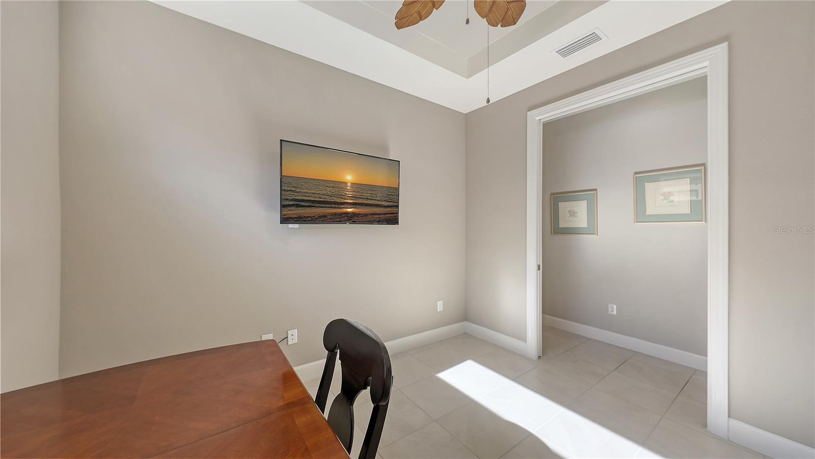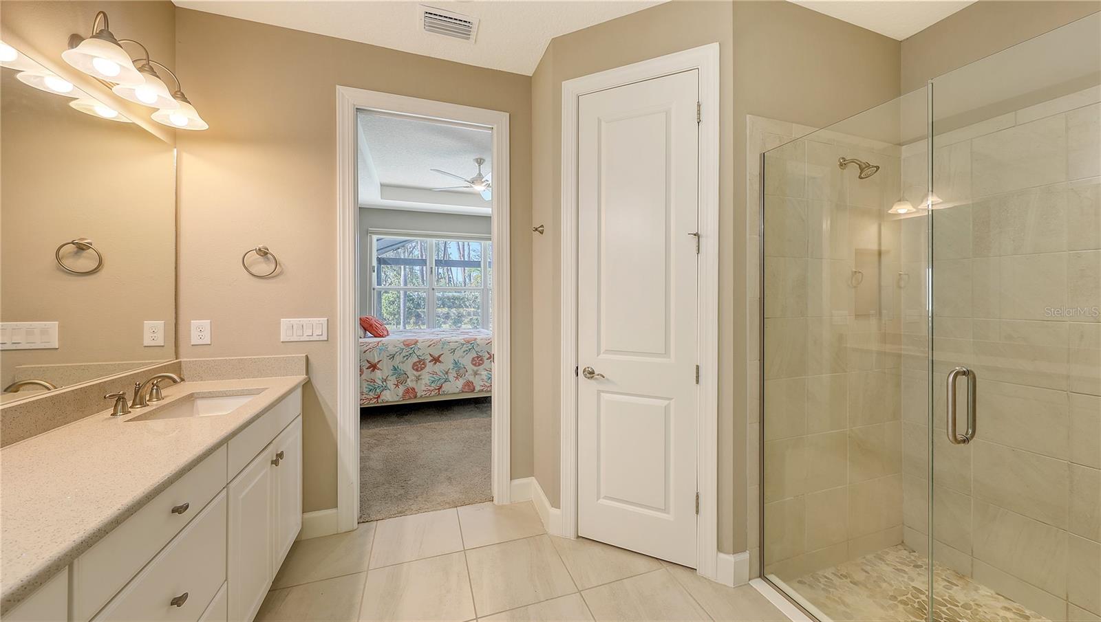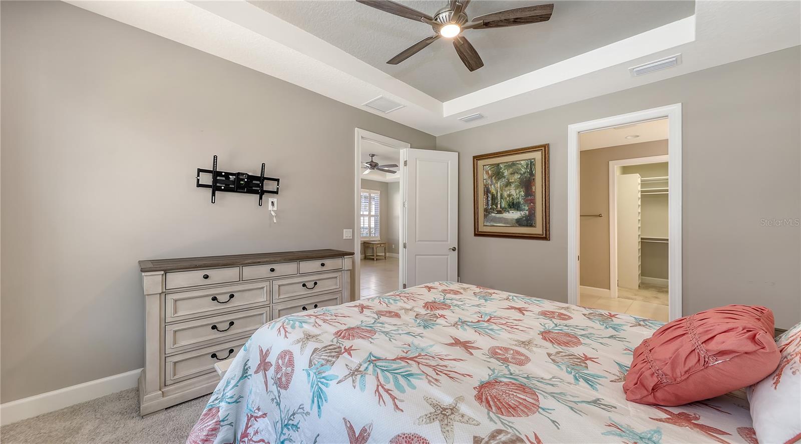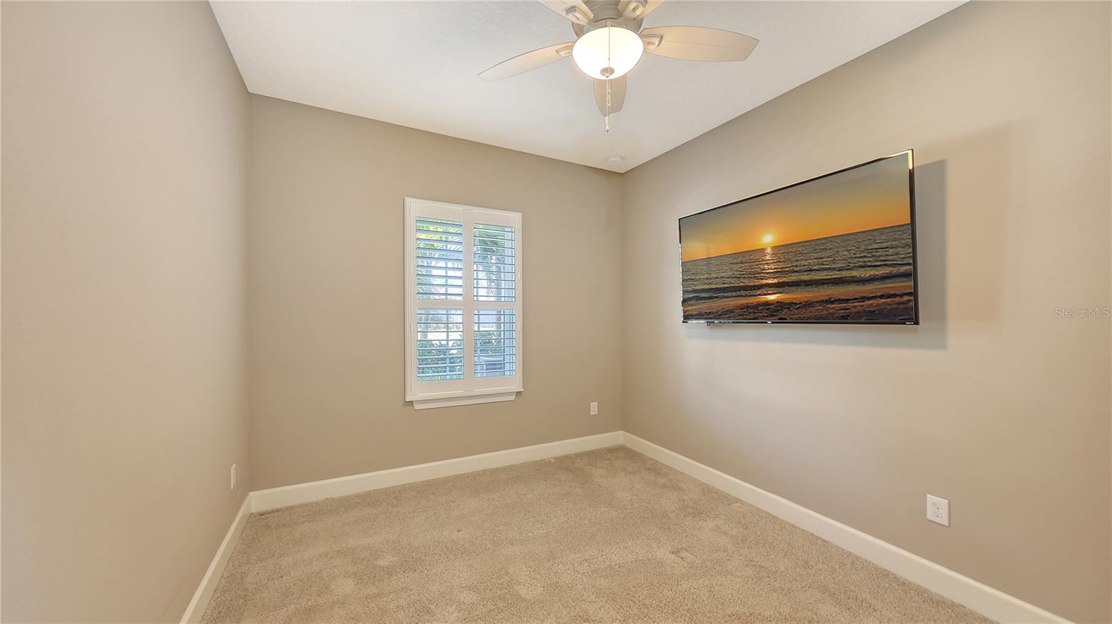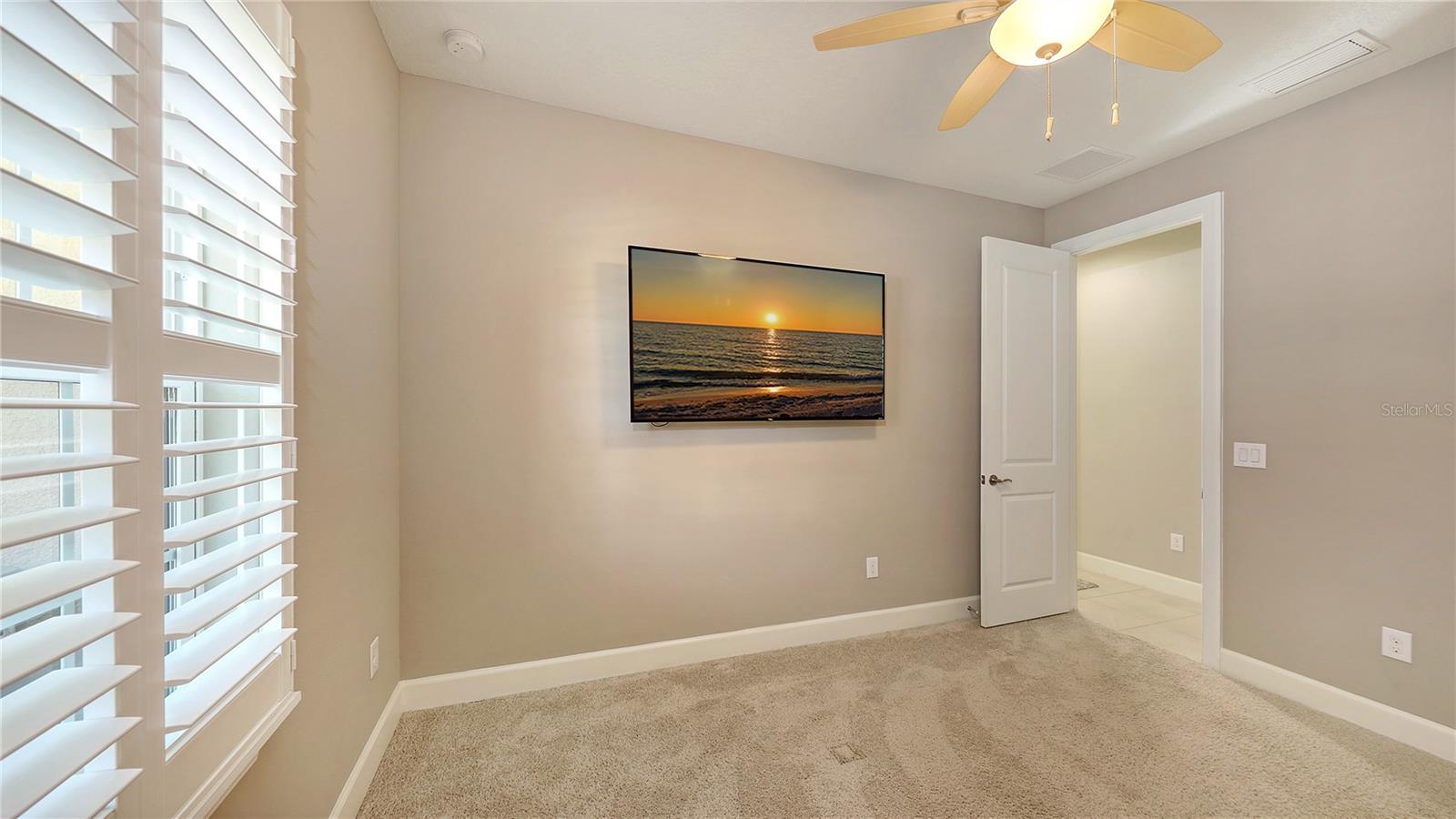 One or more photo(s) has been virtually staged. Welcome to this beautiful 3-bedroom plus den Arezzo Model, perfectly positioned on a premier lot in the highly desirable Bellacina by Esplanade community. Enjoy ultimate privacy with serene south-facing water views that create your own tropical retreat. A heated pool and spa complete the picture, offering the perfect setting for everyday relaxation or entertaining. The open floor plan is ideal for gatherings, while the natural gas kitchen is a dream for cooking enthusiasts. Notable upgrades include elegant plantation shutters, a spacious laundry room with abundant storage, reverse osmosis water filtration, a custom master closet by Affordable Closets, clear span pool cage screens, room-darkening shades in the primary suite, and a Tesla charging station in the garage. Upscale clubhouse with catering kitchen, fitness center overlooking the resort-style pool with cabanas, outdoor spa and firepit, pickleball, tennis, and bocce ball courts, cornhole and playground Two dog parks, full-time activities director for a vibrant social calendar. No CDD fees. Lawn care included in HOA fees. Direct gated access to Sarasota's Legacy Trail. Minutes to Nokomis Beach, Venice Beach, and Siesta Key Beach, plus nearby shopping, dining, and grocery stores. Don't miss the chance to own in one of Sarasota's most sought-after lifestyle communities. Schedule your private showing today and start living the Florida dream!