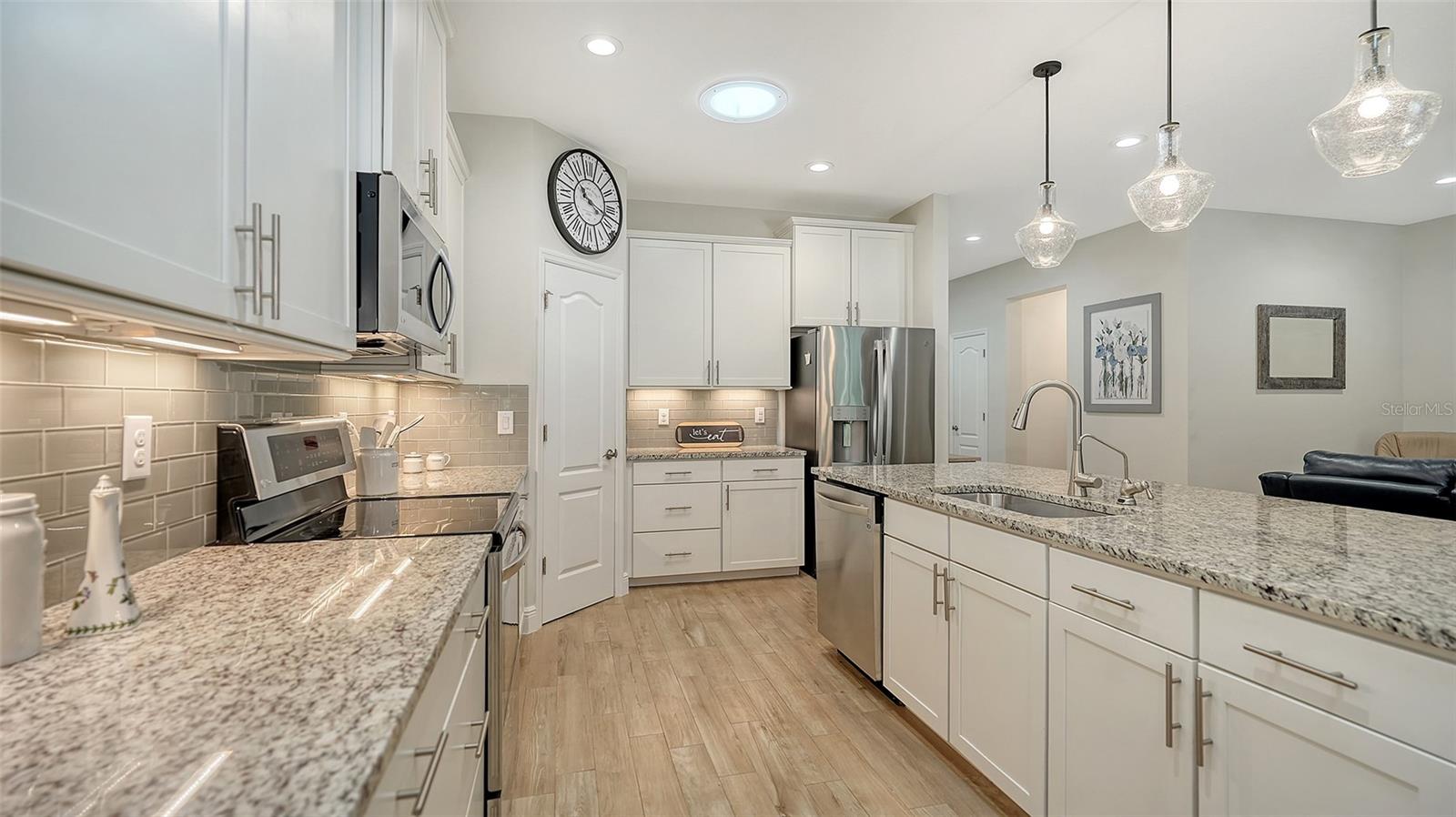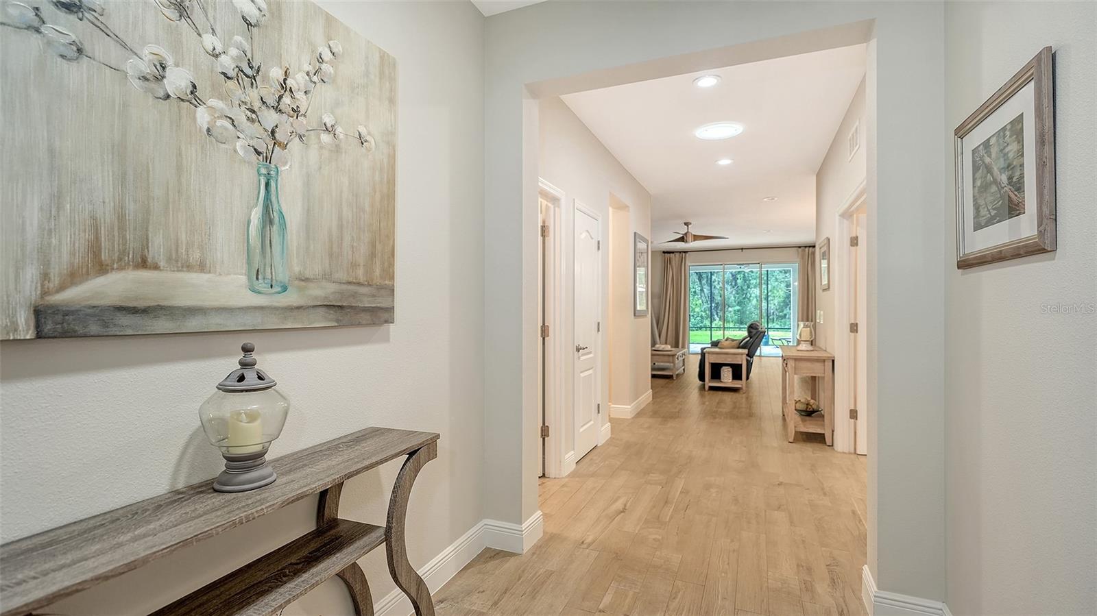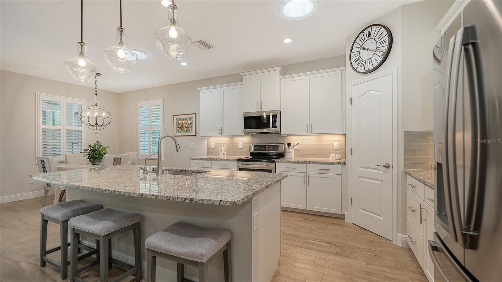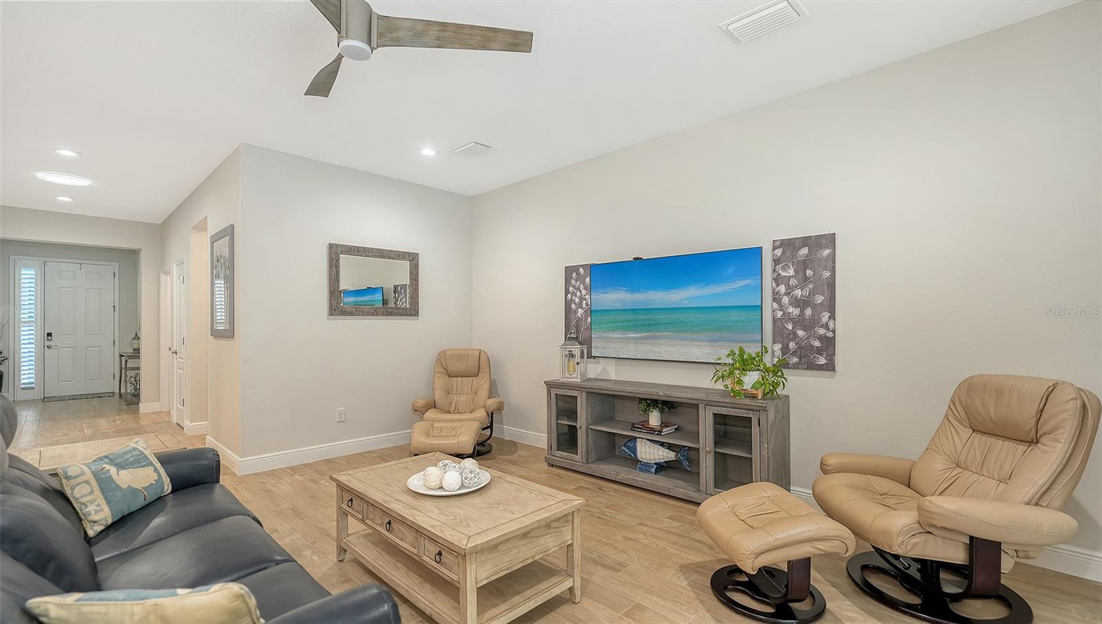 Every Buyer's Dream Home is awaiting a new owner. Absolutely stunning masterpiece features Three Full Bedrooms, Two and One Half Baths Plus double glass entry doors into the additional Den or Home Office. The open floor plan creates a spacious and airy atmosphere which is enhanced by abundant natural light flowing through the home via uniquely positioned solar ceiling tubes. The welcoming, open Kitchen-Family Room is just delightful and packed with enviable upgrades. There is plenty of room for counter height seating in addition to a dining area incorporated into the living and kitchen areas. Sliding glass doors lead you onto the amazingly enormous screened lanai with brick pavers offering a huge and private outdoor living space, perfect for relaxing or entertaining. There is an outdoor shower and more than ample room for a pool or spa, all overlooking a gorgeous landscaped preserve. The views are captivating and provide a serene and private oasis.The home boasts gleaming wood-look ceramic tiling throughout, providing a clean, modern aesthetic enhancement. Ample closet space with built-in storage solutions ensures optimal organization. This well-maintained and pristine residence presents an ideal living environment. For added protection, the home is equipped with Hurricane Accordion Shutters, plantation shutters, Double Pane Low-E tilt windows, radiant barrier in the roof plus extra insulation. Numerous Upgrades unique to this home include 42" staggered shaker cabinets with soft closures, Reverse Osmosis water filtration system in the kitchen, beautiful stainless appliances, designer fixtures throughout and ample appointments are just some of the special features awaiting a new owner. Each time you enter your new home, a beautiful expanded Paver Driveway greets you featuring lush, creative landscaping and to top off this extensive list you will be pleasantly surprised to find a large, Two Car Garage loaded with custom flooring, cabinetry, storage and utility sink. There is a three page attachment provided with recent upgrades and enhancements for you to review.This fabulous home is a treasure for the discerning buyers looking for 3 dedicated Bedrooms and an Office with affordability, stability and accessibility to major roadways, shopping and proximity to amenities and resources. This intimate 57 home neighborhood is located on a quiet circular street with a dog park and boasts VERY LOW HOA fees. Dog Owners: Fences are allowed with permission from HOA. There are many homes with either metal fences or light privacy fences! The convenient proximity to the newly constructed 44th Avenue connects Lakewood Ranch with the pristine sandy beaches of the Gulf of Mexico, providing seamless east-west connectivity. Welcome to your New Home!