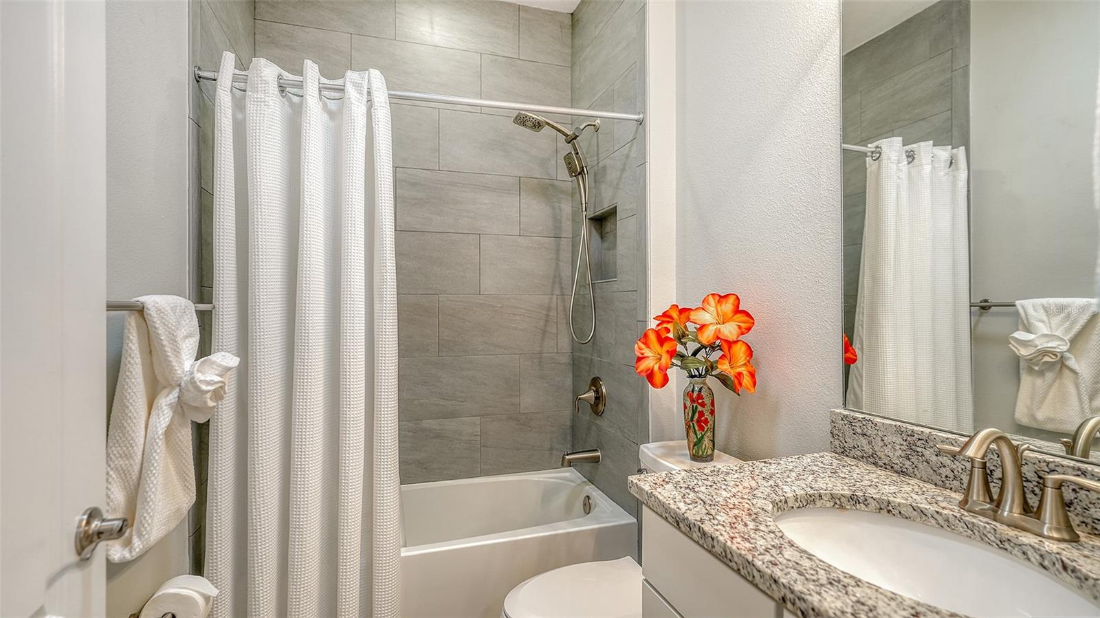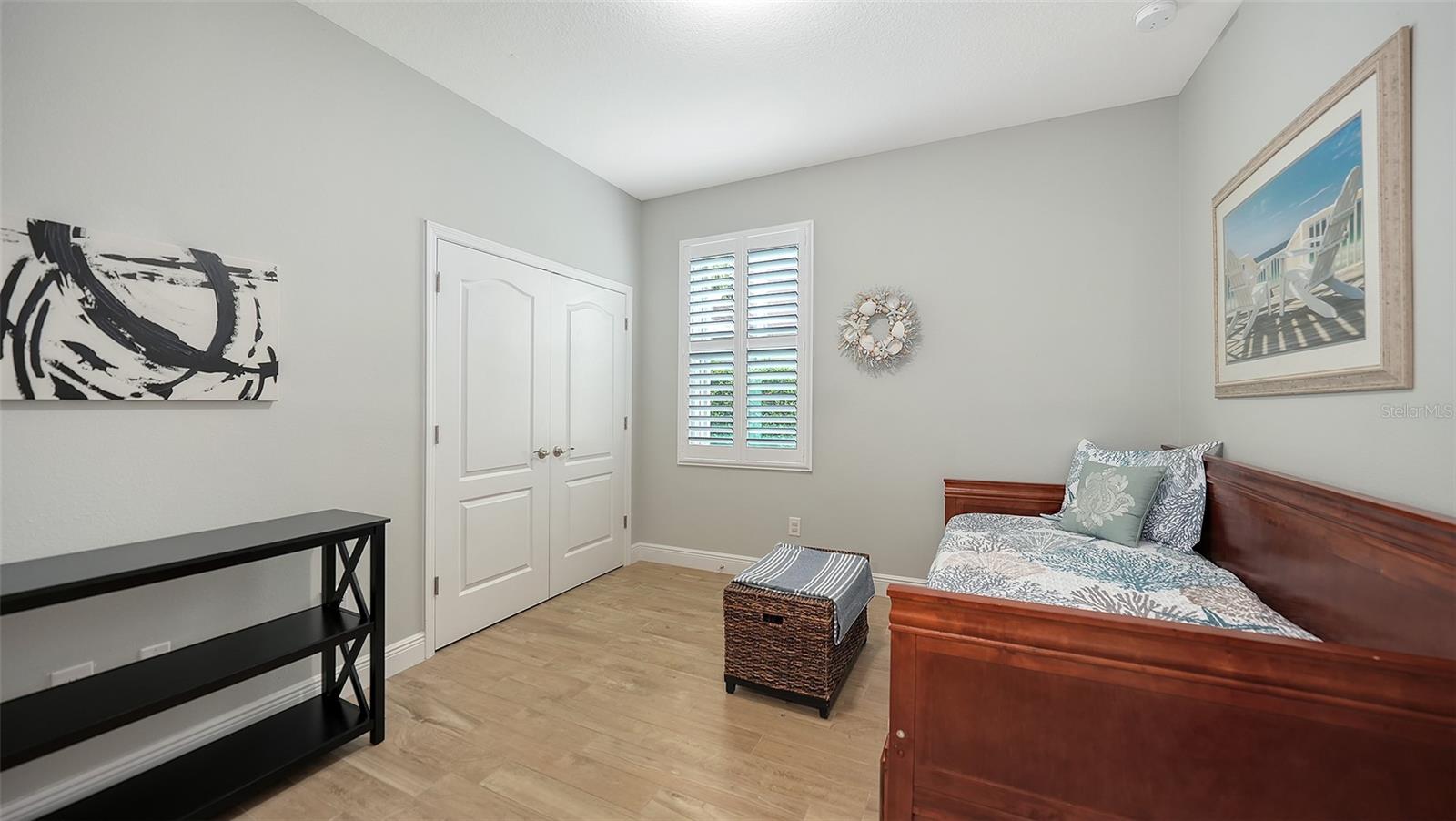 Exterior: Hurricane Shutters, Lighting, Outdoor Shower, Rain Gutters, Shade Shutter(s), Sidewalk, Sliding Doors, Storage