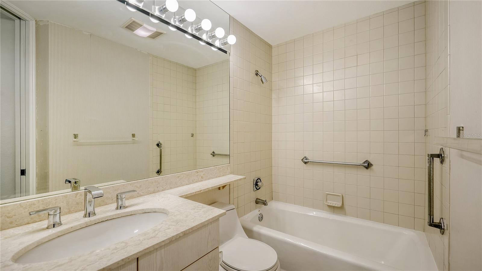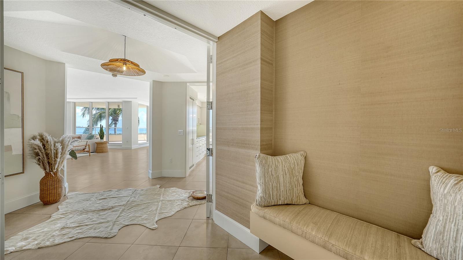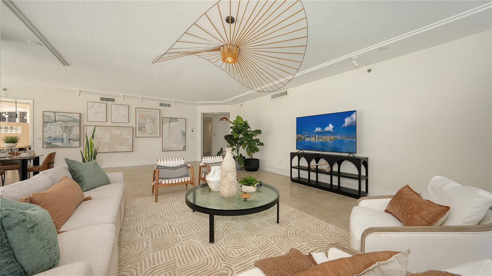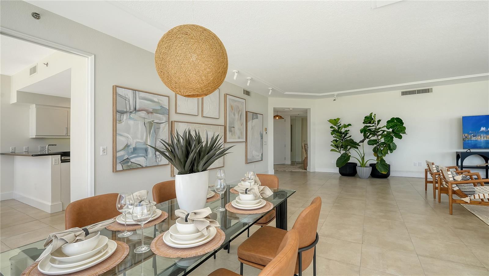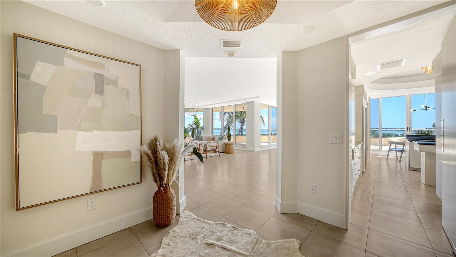 Beautifully furnished and move-in ready, this expansive three-bedroom residence offers an enviable bayfront lifestyle within Longboat Key's sought-after Grand Bay community. Spanning nearly 3,000 square feet, the open Antigua layout is framed by floor-to-ceiling glass walls that fill the interiors with natural light and connect nearly every room to the sweeping wraparound terrace. The main living space is designed for both relaxation and entertaining, with diagonal tile flooring connecting the living and dining areas. The adjacent eat-in kitchen features a center island, sleek countertops, double built-in ovens, and a breakfast nook surrounded by windows that showcase sparkling water views. The secluded primary suite is a private retreat with direct access to the terrace, a spacious walk-in closet, additional built-in closets, and marble en-suite bath with dual vanities, soaking tub, and separate glass shower. Two guest suites provide comfort and privacy for overnight visitors: one located in the northeast spot with access to the larger terrace, and the other tucked into the southwest wing with its own private balcony. Additional conveniences include a dedicated laundry room, one secure under-building parking space, and climate-controlled storage. Residents of Grand Bay enjoy a host of resort-style amenities: two heated swimming pools with sundecks, Har-Tru tennis courts, a modern fitness center, clubhouse, and a vibrant calendar of social activities. On-site management and 24-hour security provide peace of mind in this meticulously maintained community. As an exclusive benefit, owners have deeded access to the private Bay Isles Beach Club, where pristine sands of the Gulf of Mexico await. Spend the day at the beachside pavilion, host a barbecue, or join in a game of volleyball just steps from the water. Nestled on Longboat Key, Grand Bay balances privacy with proximity. Just minutes away are the boutiques and fine dining of St. Armands Circle, the cultural attractions of downtown Sarasota, and the renowned beaches of Lido and Siesta Key. From theater and art to world-class marinas and championship golf, the very best of Sarasota living is within easy reach.