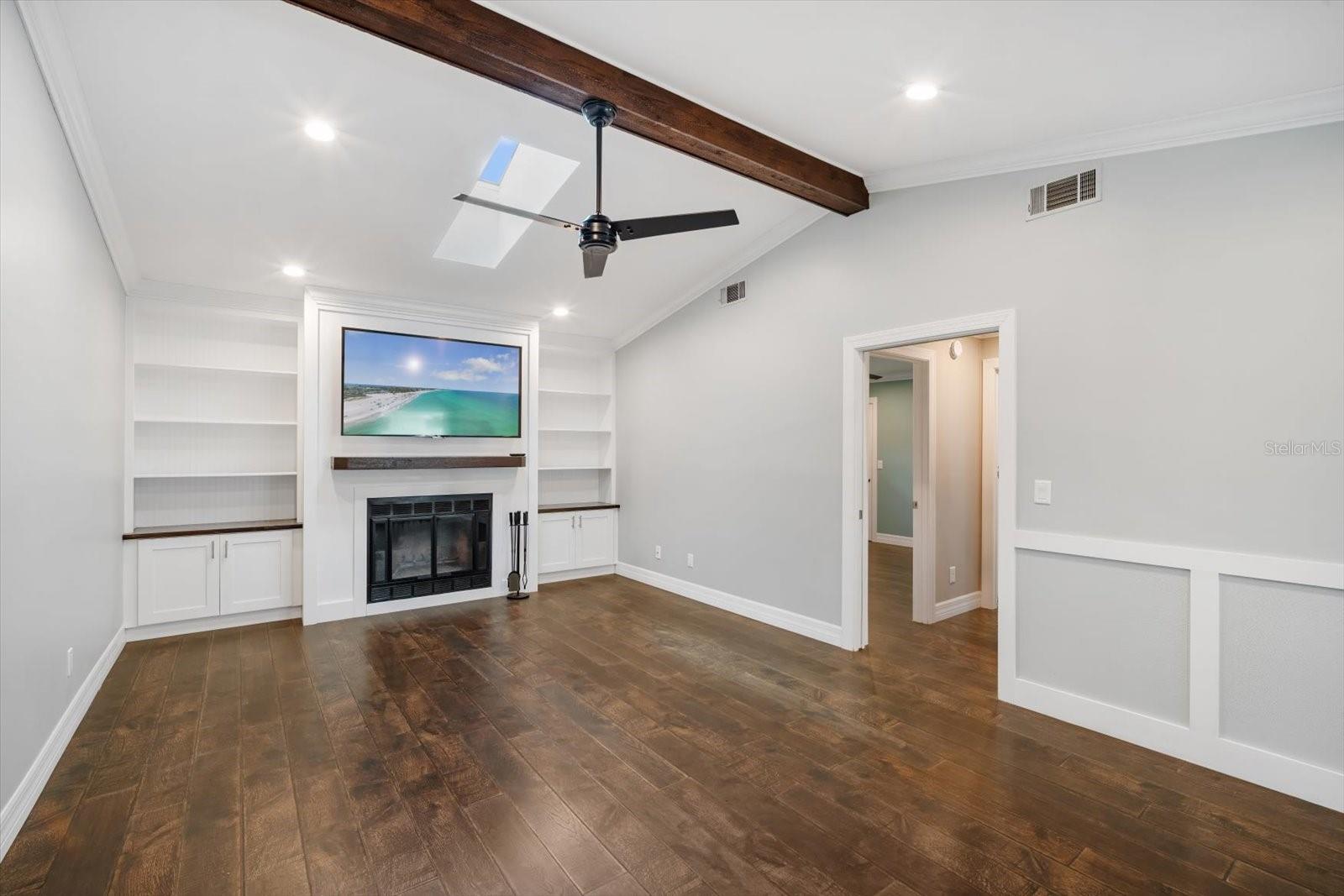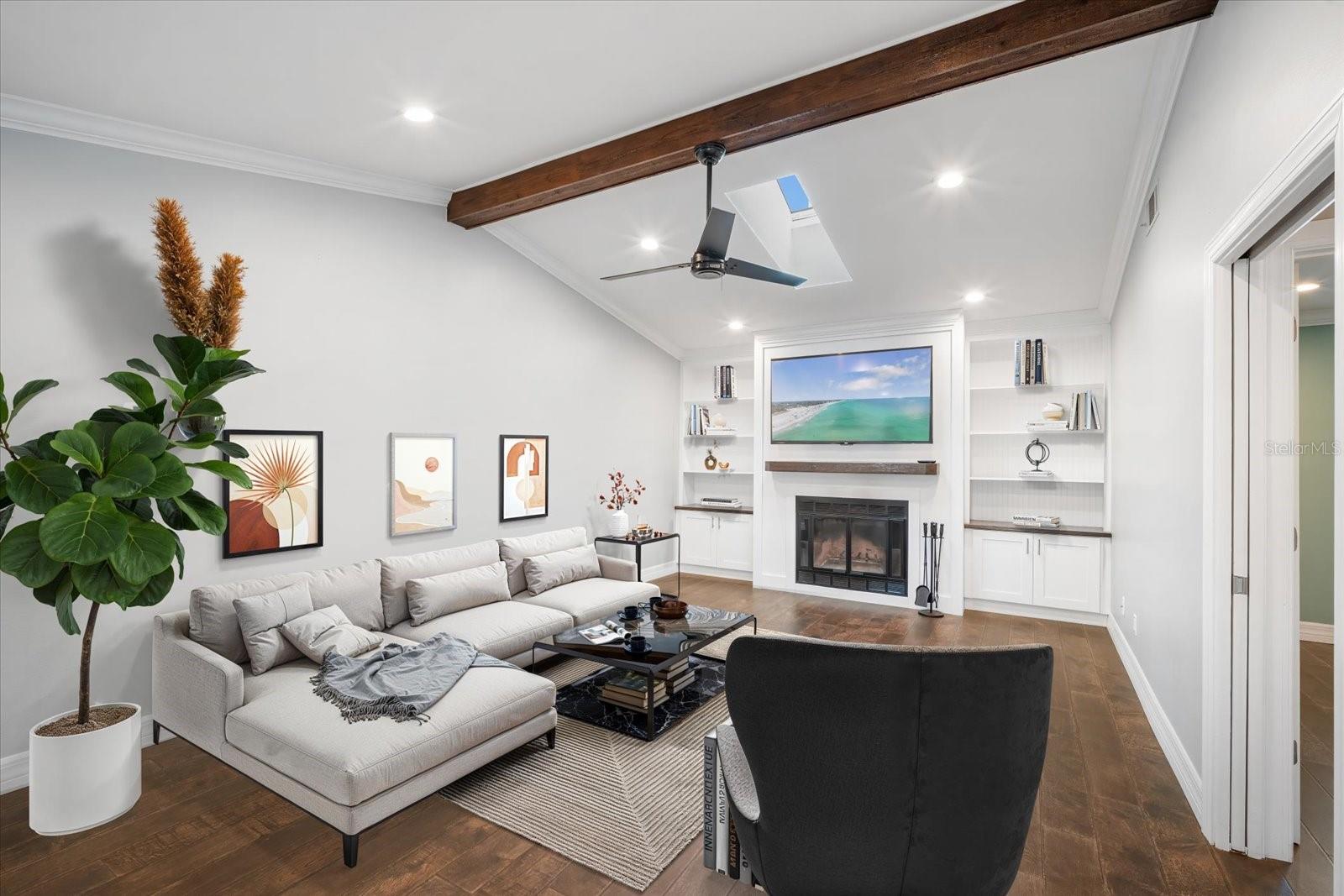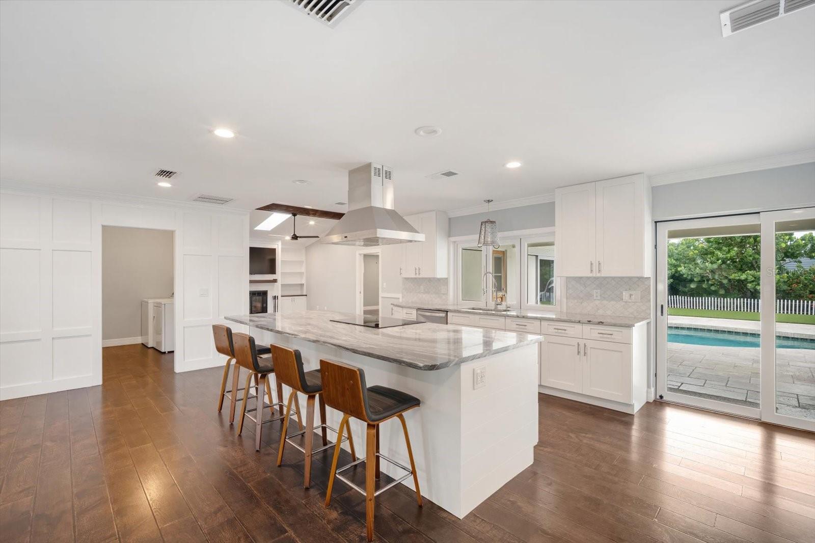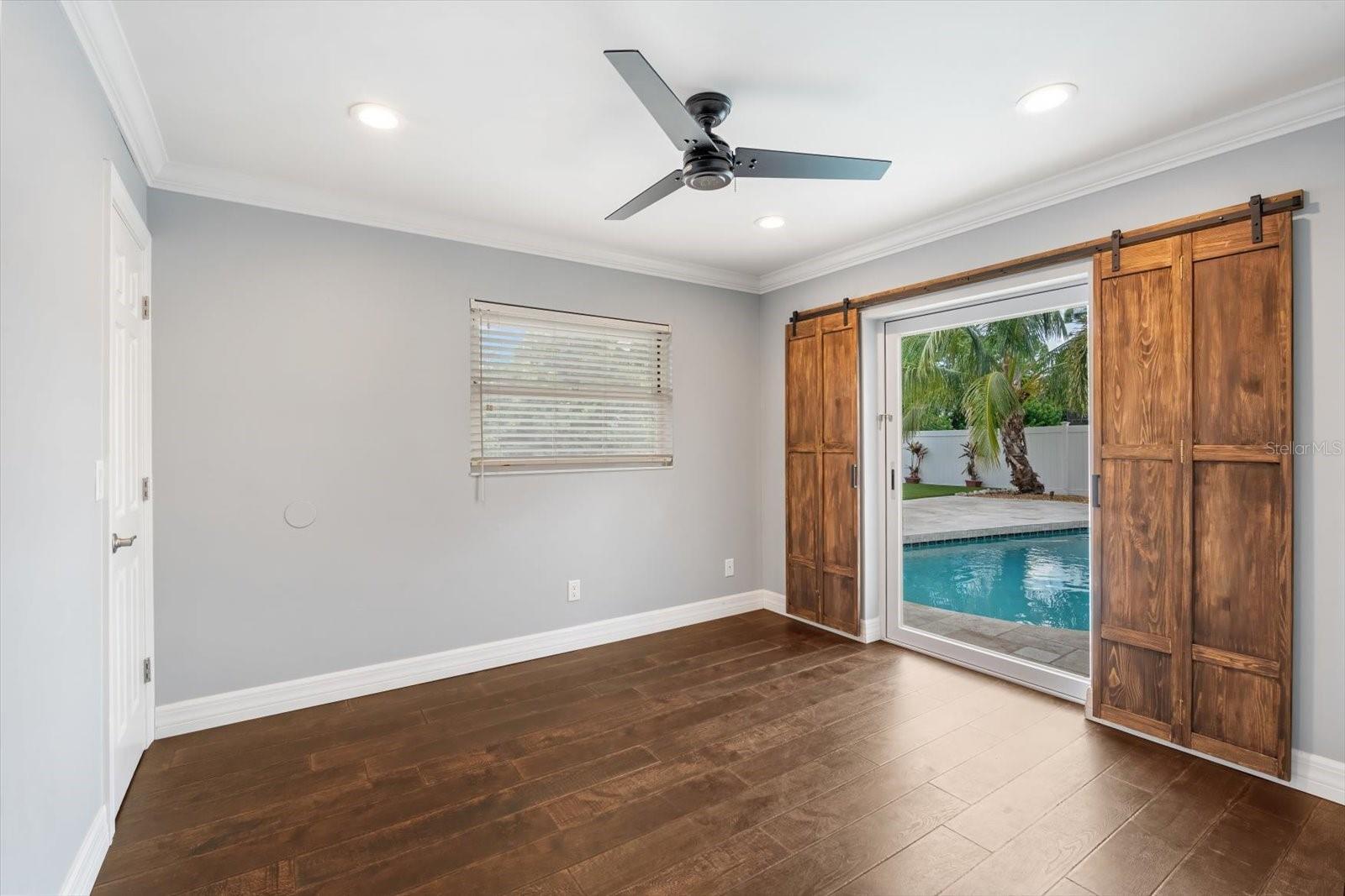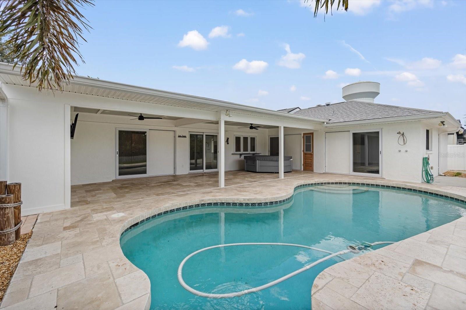 One or more photo(s) has been virtually staged. This beautifully updated pool home offers the perfect blend of comfort and peace of mind with hurricane impact windows, 200-amp electric service (2023), and a tankless water heater (2020). The home was freshly painted outside and includes a car charging station (2023)--a modern convenience for today's lifestyle.Inside, the inviting open floor plan features high ceilings, built-ins, and a cozy wood-burning fireplace in the living room. The chef's kitchen is a showstopper with a massive island with bar seating, granite countertops, stainless steel appliances, a Frigidaire Professional double-door refrigerator, abundant cabinetry, under-sink water filtration, and a convenient pass-through window to the lanai.The split-bedroom design provides privacy for the primary suite, complete with sliding doors to the pool concealed with a barn door, a large walk-in closet plus linen closet, and a spa-style ensuite featuring a granite vanity and walk-in shower. Across the home, two guest bedrooms--each with a walk-in closet--share a bathroom with granite countertops and a tub/shower combo, all tucked behind a pocket door for added privacy.A functional laundry room with washer/dryer, storage cabinetry, utility sink, and a pocket door to keep it out of view adds everyday convenience. The spacious two-car garage offers extra storage space.Step outside to your backyard oasis with a heated saltwater pool and recent upgrades, including a Hayward pool vacuum (2024), new salt cell (2025), LED multi-colored pool lights (2024), and a new pump/motor (2025). Enjoy an expansive covered lanai with hot tub, outdoor shower, firepit, and grilling station with electric and lighting. New landscaping and artificial turf complete the low-maintenance outdoor retreat.With a low HOA of just $230 per year, excellent rental and Airbnb potential, and a prime location only 9 miles from Manatee Public Beach, this NW Bradenton gem checks every box.