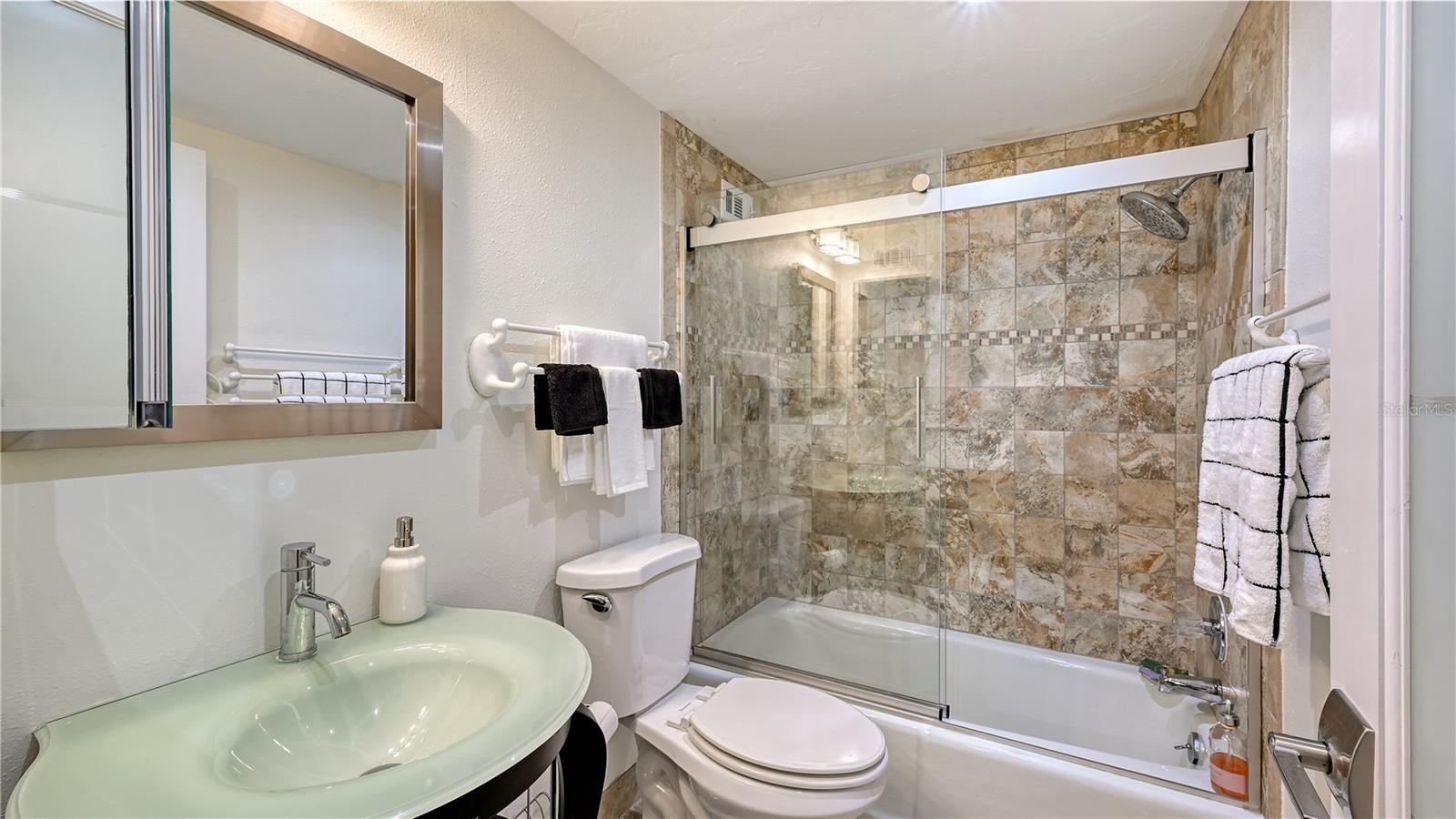 Perched atop the 11th floor, this penthouse residence at Privateer South captures an extraordinary sweep of views spanning Longboat Key Club's lush golf course, the expanse of Sarasota Bay, the downtown skyline, and the Gulf of Mexico's turquoise waves. Offering more than 1,400 square feet, the light-filled interiors flow effortlessly between living, dining, and kitchen spaces, framed by impact windows and glass sliders that open to two private terraces--one Gulf-facing and one Bay-facing--inviting you to enjoy sunrises and sunsets alike. The modernized kitchen balances style and function with quartz countertops, a sleek tile backsplash, shaker cabinetry, and stainless-steel appliances. Porcelain tile flooring adds a timeless touch, enhancing the airy ambiance throughout. The split-bedroom plan ensures privacy when guests visit, with the primary suite offering direct access to the larger terrace, a spacious walk-in closet, and a private en-suite bath, while the guest suite is positioned on the opposite wing with its own serene views. Additional comforts include newer impact-rated windows and sliders, covered parking, and an owner's storage unit located on the same floor. Privateer South, set directly on the Gulf of Mexico, has recently been enhanced with upgrades that further elevate its appeal, including a newer roof, refreshed lobby, and updated common areas. Residents enjoy a lifestyle that blends leisure and convenience, with a beachside heated pool and spa on an expansive deck, tennis, pickleball, and shuffleboard courts, fitness center, fire pit lounge, barbecue area with outdoor seating, social room with catering kitchen, and guest suites for visitors. On-site management and security provide peace of mind in this sought-after community. Beyond the gates, Longboat Key delivers a lifestyle defined by natural beauty and cultural access. Championship golf and fine dining await for members at the Longboat Key Club, while the boutiques and restaurants of St. Armands Circle are minutes away. Downtown Sarasota, with its world-class theaters, museums, galleries, and vibrant waterfront, is an easy drive south. Award-winning beaches, including those of neighboring Lido and Siesta Key, complete the picture, offering endless opportunities to explore, relax, and savor life on the Gulf Coast. This penthouse is more than a residence--it's a front-row seat to the very best of Sarasota living.