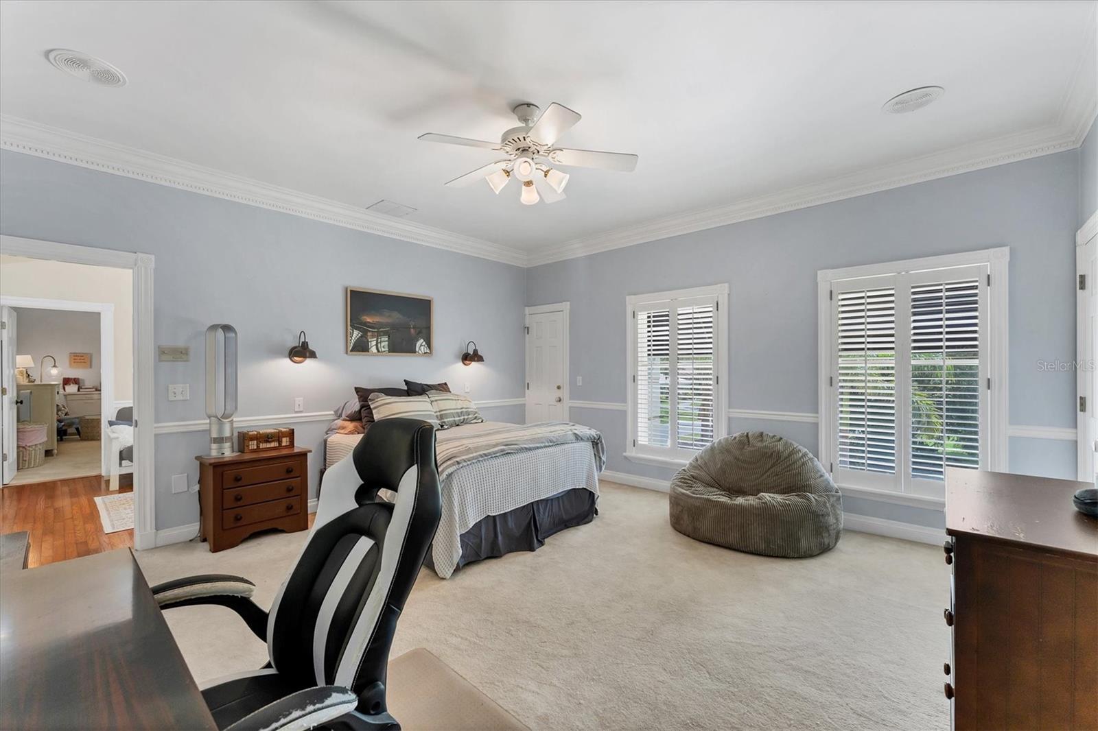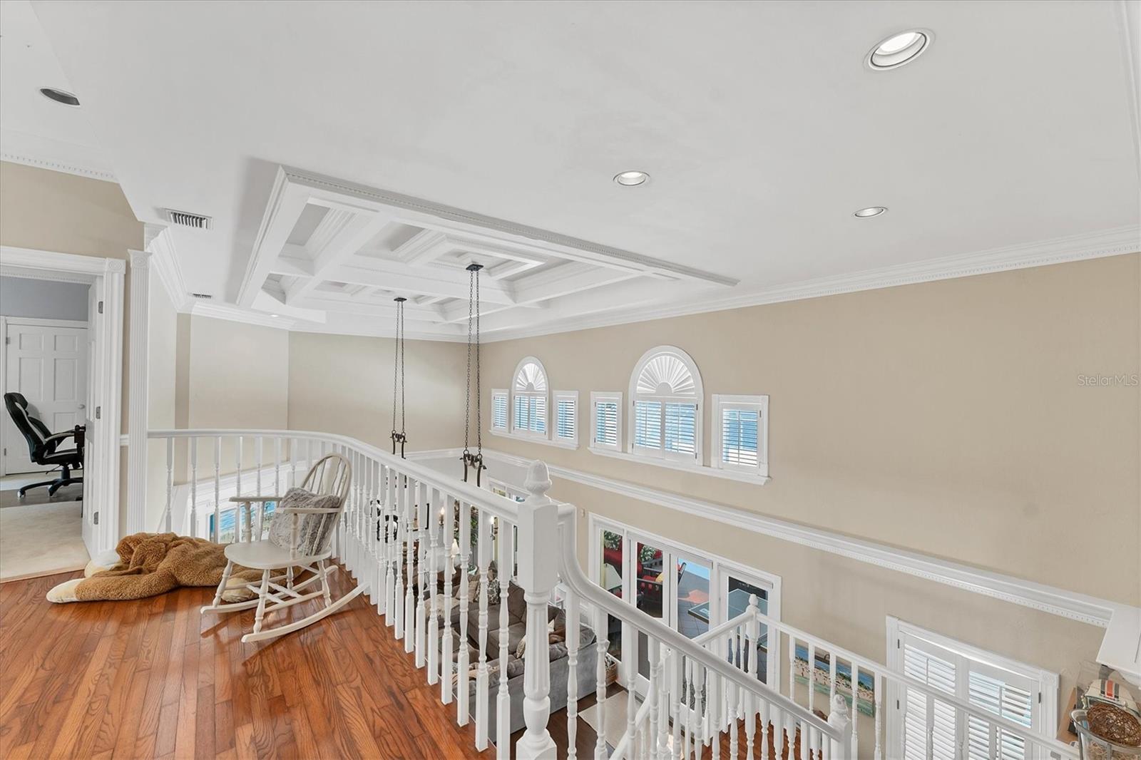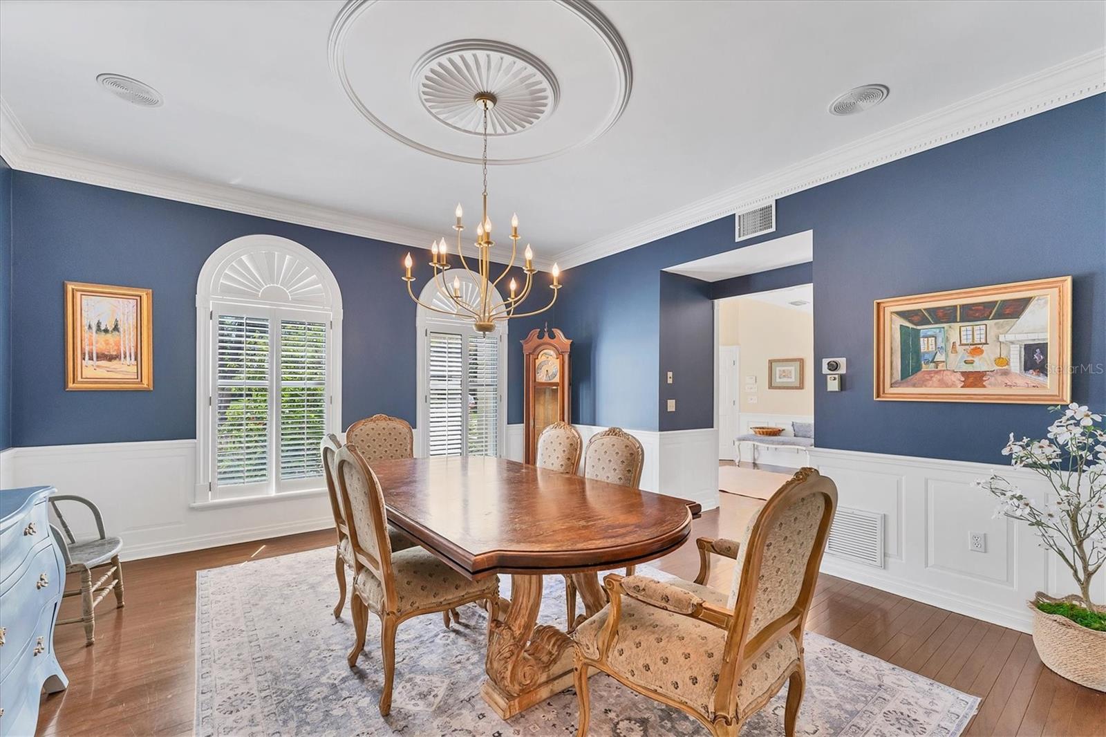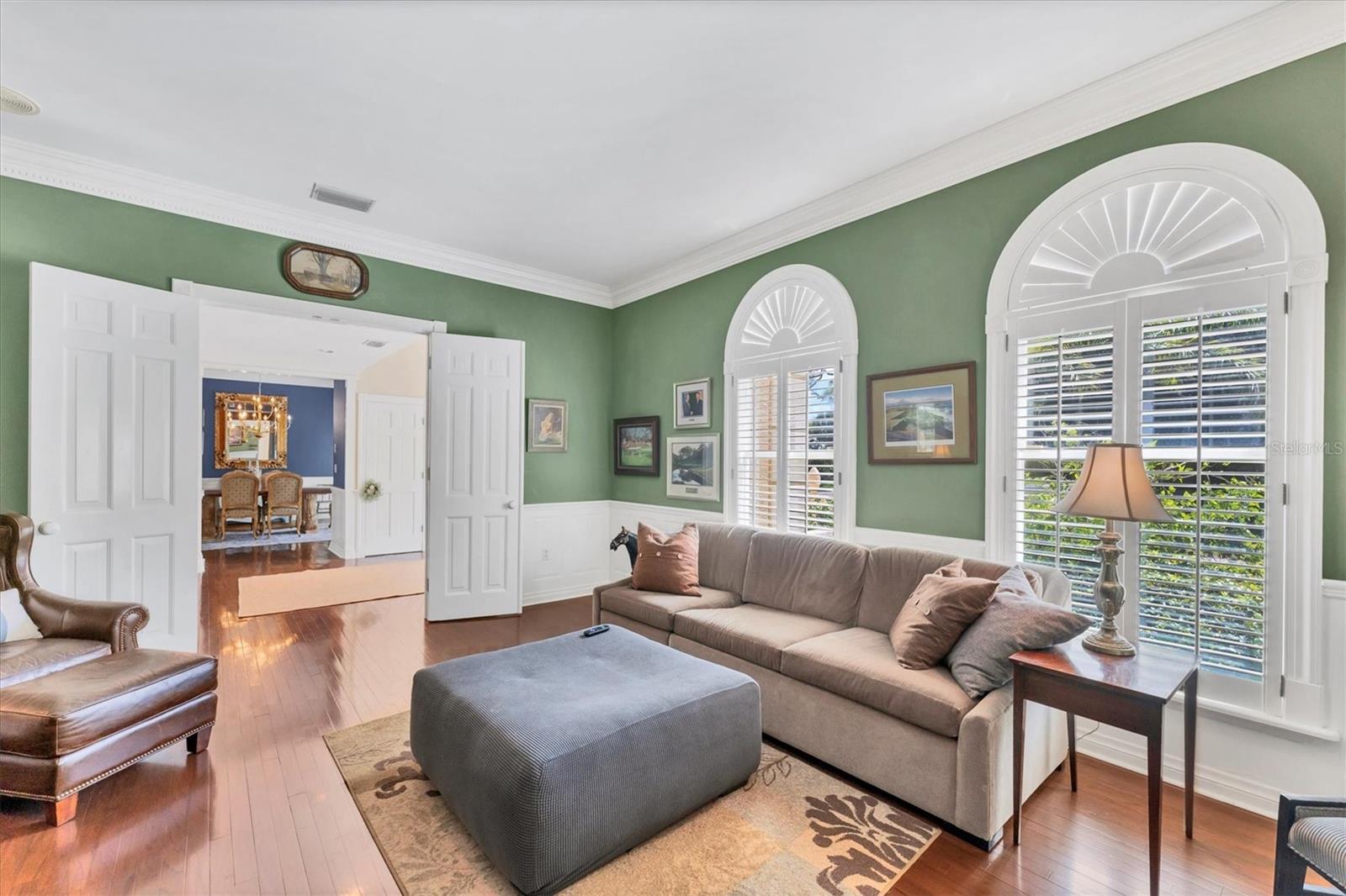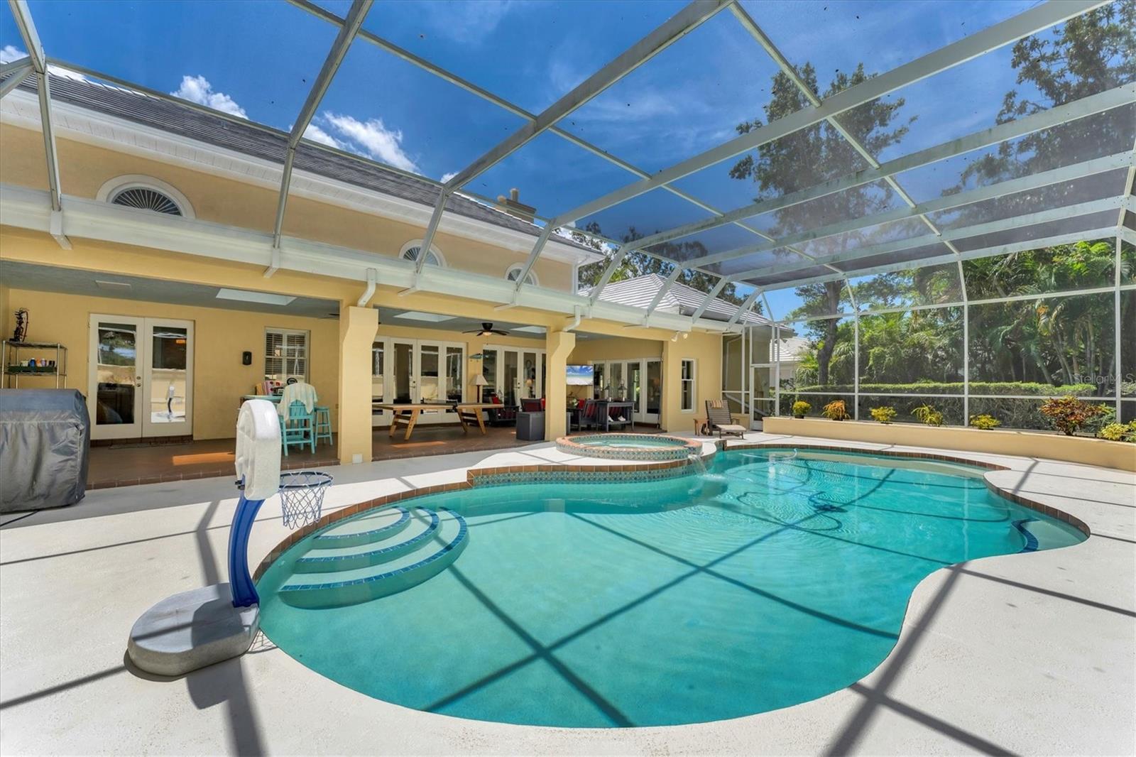 Grand 2 Story Colonial 5BR, 3.5 Bath & 3.5 Car Gar., Pool home sitting on almost an acre within "The Landings", a majestic West of Trail 24/7 attended guard-gated tennis community (membership optional). As you drive in you will surely see, Moms and Dads riding bikes or roller blading with kids, sisters walking the family dog, or boys with fishing poles heading down to the intracoastal/bay. Arriving to your inviting, charming and elegant home, you would enter the triple wide brick driveway to a side loading garages, and guests are welcomed over a brick half circle driveway to the front and greeted by pineapple topped pillars and black carriage lights to enter through glass haint blue double doors and into the foyer. Upon entering, you know you are in a special space that is warm and inviting with recently refinished real hardwood floors, chair rail, and wainscoting that wraps the walls and is carried through to the Den/Family room w/ wood-burning fireplace to the left, and the right an elegant dining room with a chandelier and ceiling medallion. Stepping straight ahead you'll pass by the wood staircase with white railings, turned balusters, and acorn-topped newel posts, into the 20' soaring ceiling living room where the exquisite wood work it taken to another level literally with chair rail, wall molding, upper windows with plantation shutters, and colonial detailed stacked crown molding, highlighted with multi-depth coffered ceiling punctuated by two large iron oval candelabra chandeliers. Of course, this room is also anchored with a grand wood-burning fireplace and mantle. Two quadruple-paned French doors lead out to the massive 43'x14' covered lanai and 52'x30' walled and screen-enclosed all privately housing the 35'x14' heated pool with a 8-person circular spa. This home is a must-see, and I could wax on and on, as each room has the same level of craftsmanship, grandeur with built-ins, bonus spaces plus some hidden features to delight. BRAND NEW $100K ROOF, and Freshly Painted Exterior just completed in Aug. of this year! Enjoy the conveniences of GAS 6-Burner Stove, on-demand water heater, and pool heater. 4 zones of HVAC, two of which are 1 year old, well for irrigation with a Rid-o-rust injector an American Hydro system ensuring happy plants and a lush lawn. These types of homes don't come on the market very often. Make this spectacular home your home now - before someone else does!