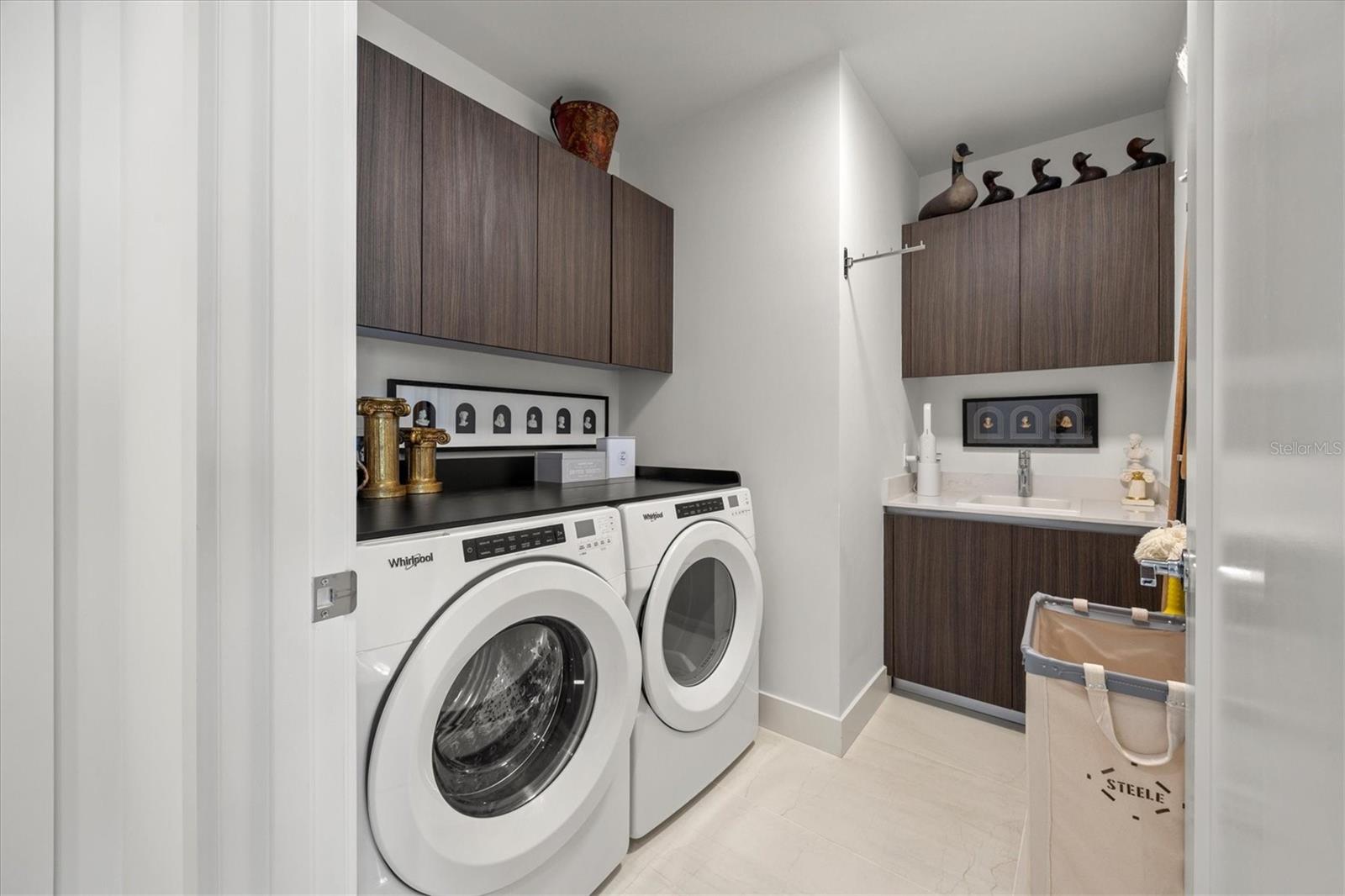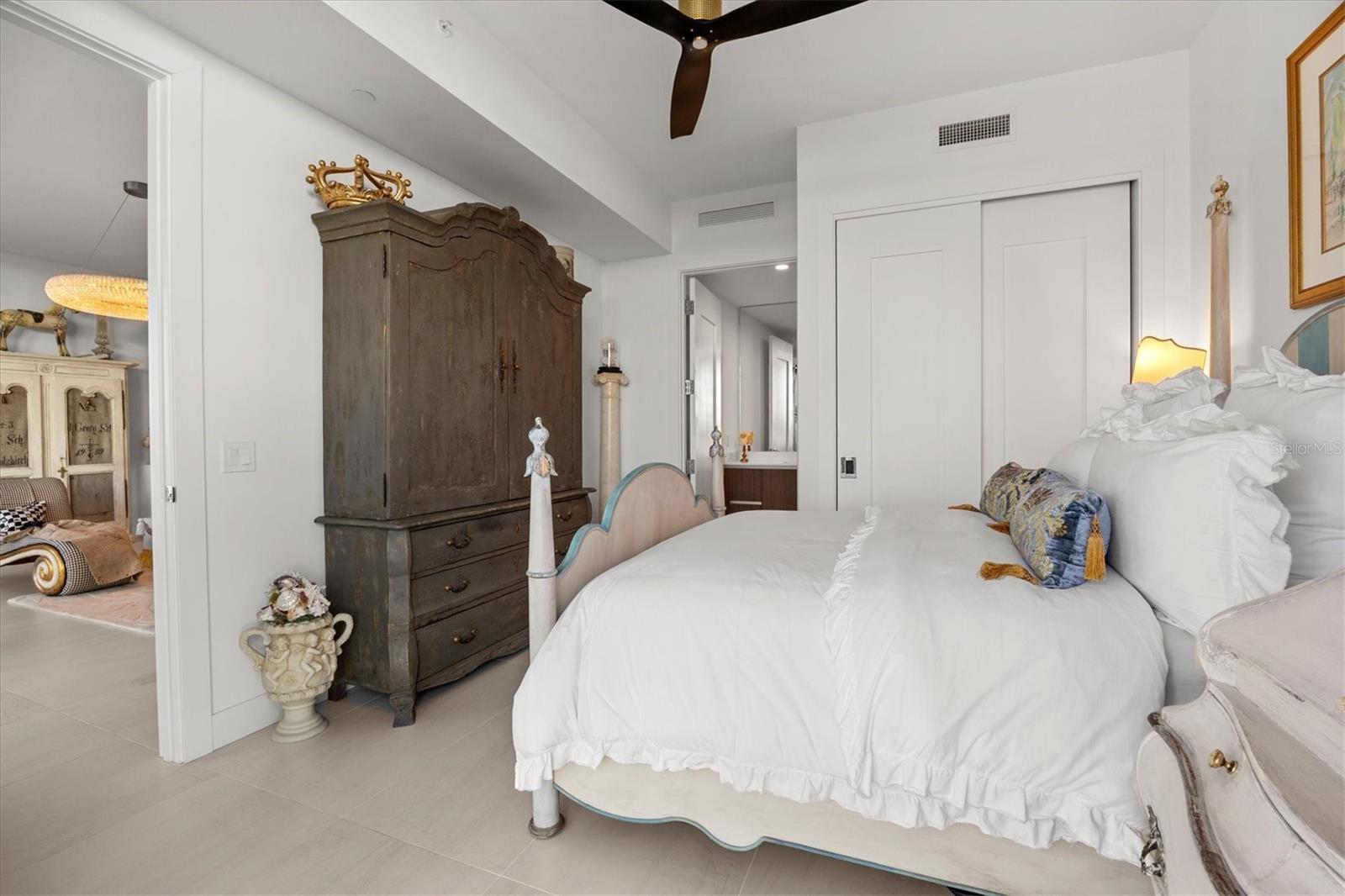 Discover an elevated lifestyle at Bayso, Sarasota's most coveted luxury tower where contemporary urban elegance meets laid-back coastal charm. Perfectly positioned at the vibrant Quay Sarasota waterfront district, this 18-story residential landmark offers walkable convenience to the city's acclaimed arts, dining, and cultural scene, making it an ideal retreat for those who desire both sophistication and connection. Perched on the 17th floor, Residence 1704 is a beautifully designed, light-filled sanctuary that offers 1,689 square feet of airy, open living space. This two-bedroom, three-bath residence exudes effortless style with 10-foot ceilings and expansive floor-to-ceiling glass windows and sliders, opening to a 33' x 8' private terrace. From here, take in panoramic views of Sarasota Bay, city skyline, and breathtaking sunsets. Inside, the residence has been thoughtfully furnished with curated European antiquities, offering a unique blend of character and contemporary flair. The open-concept layout flows seamlessly from the living area to the chef's kitchen, where Italkraft Euro-style cabinetry, quartz countertops, and premium JennAir stainless steel appliances create a striking and functional space. The owner's suite features a generous walk-in closet and a spa-inspired bathroom with Grohe fixtures, perfect for unwinding after a day by the sea. The guest bedroom suite offers equally impressive views and a private en-suite bath. A third full bathroom with walk-in shower and a spacious laundry room add to the home's thoughtful design. Bayso's exceptional amenities are designed for elevated everyday living. The ground floor features 24-hour conceierge service, a professional fitness room, community room with bar, a conference room and private work rooms with high-speed internet. On the fifth level, residents enjoy a resort-style pool and spa, expansive sun decks, a grilling station, club room and a residents' lounge with multiple gathering spaces. Additional features include a dog park and pool baths. Additional amenities include one-reserved parking space, a secure storage unit, and a bike room for easy exploration of downtown and the bayfront paths. The location is just minutes from award-winning Siesta and Lido beaches, world-class shopping, fine dining, and Sarasota-Bradenton International Airport, this residence combines the best of Florida living with the understated elegance of a private coastal retreat. If you're seeking a sophisticated urban home with a coastal soul, Residence 1704 at Bayso welcomes you.