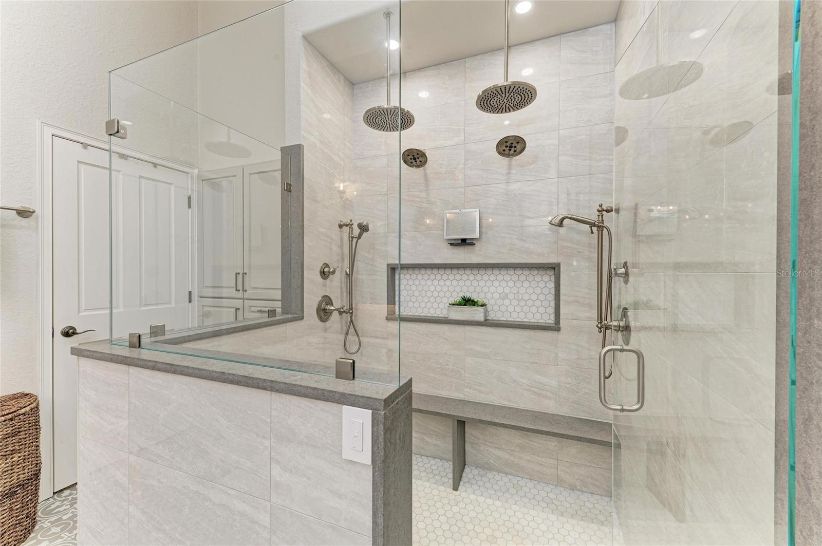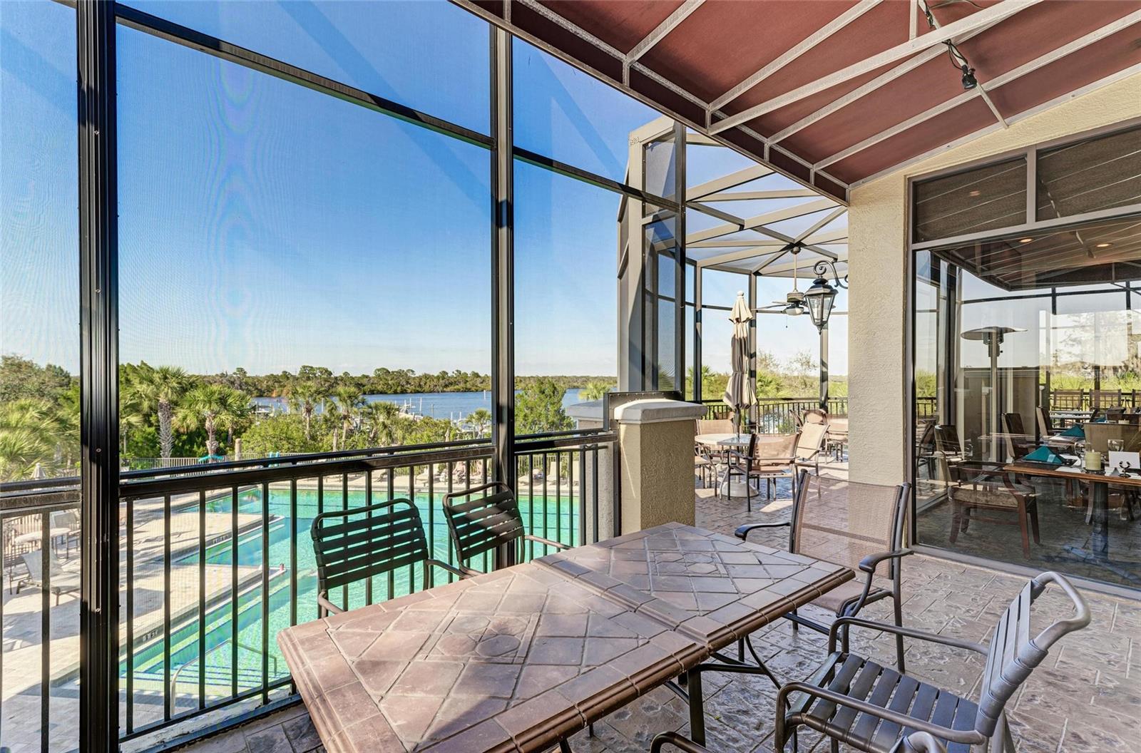 Florida luxury riverfront living in the gated community of Waterlefe Golf & River Club. This Mediterranean coastal-style villa/townhouse is located on the Manatee River with spectacular panoramic water views. This spacious two-story home offers 3,240 square feet of living for a perfect blend of comfort, style, and functionality, with four bedrooms, four-and-a-half baths, separated living and dining rooms, beautiful high coffered and tray ceilings, hurricane-rated impact windows, remote-controlled window shades, crown molding, central vacuum, in-wall pest system, built-in ceiling speakers, screened-in heated swimming pool and jacuzzi, outside kitchen and bar and a second-story screened-in balcony with amazing views of the river. This home has extensive upgrades throughout and shows like a model. Ideal for entertaining, the impressive kitchen is outfitted for a culinary enthusiast with stainless steel appliances, including a gas stove with built-in vent, built-in wall oven, convection oven, wine refrigerator, travertine backsplash, granite counters, solid wood cabinets, breakfast bar, pantry and extra storage cabinetry. The kitchen is completely open to the living room for gatherings with family and friends, or to enjoy warming up next to the gas fireplace during the cooler months. The primary bedroom will take your breath away with the awe-inspiring water views and features direct access to the lanai overlooking the pool. The en-suite bath adds a touch of luxury with its thoughtful finishes, designed with a gorgeous soaking tub to take all your worries away, large walk-in shower with dual shower heads and dual custom-built walk-in closets. The large dining room provides plenty of space for dinner parties for your friends and family. The laundry room offers a front-load washer and dryer, utility sink and an abundance of extra storage cabinets. Upstairs, the additional three bedrooms all have en-suite baths and custom-built closets, allowing access to the screened balcony to enjoy stunning water views and beautiful sunsets. Walk through the glass doors to the outdoor screened paved area to enjoy the swimming pool, jacuzzi, outdoor kitchen with bar and grill for fun and entertainment. Within the screened pool area, you will find a covered patio with plenty of space to soak in the sun or to BBQ your favorite meal. You can also enjoy the serenity of a view to catch a glimpse of a variety of wildlife, beautiful birds and spectacular sunsets. Waterlefe Golf & River Club offers an active lifestyle with countless activities. Waterlefe River Club serves as the community hub, featuring a delightful restaurant, bar, fitness center, meeting rooms and a resort-style swimming pool with a tiki bar alongside the many comfortable lounge chairs. Get to know your neighbors at a variety of social events, from fitness classes to card games and book clubs to social events. You will find nature trails for walking, biking, boating, kayaking and fishing. Waterlefe offers an optional membership for a boat slip to the community marina for boating enthusiasts. Optional golf club memberships at an award-winning, semi-private, championship golf course. The association fee includes cable, internet, exterior maintenance including roof replacement (replaced in 2024), water, sewer, trash, painting and yard maintenance. Wake up each day knowing you are living your dream in this true Florida waterfront paradise.