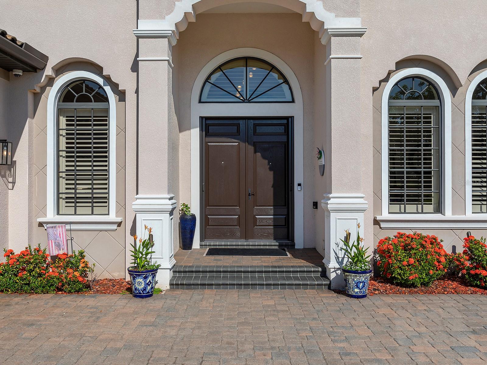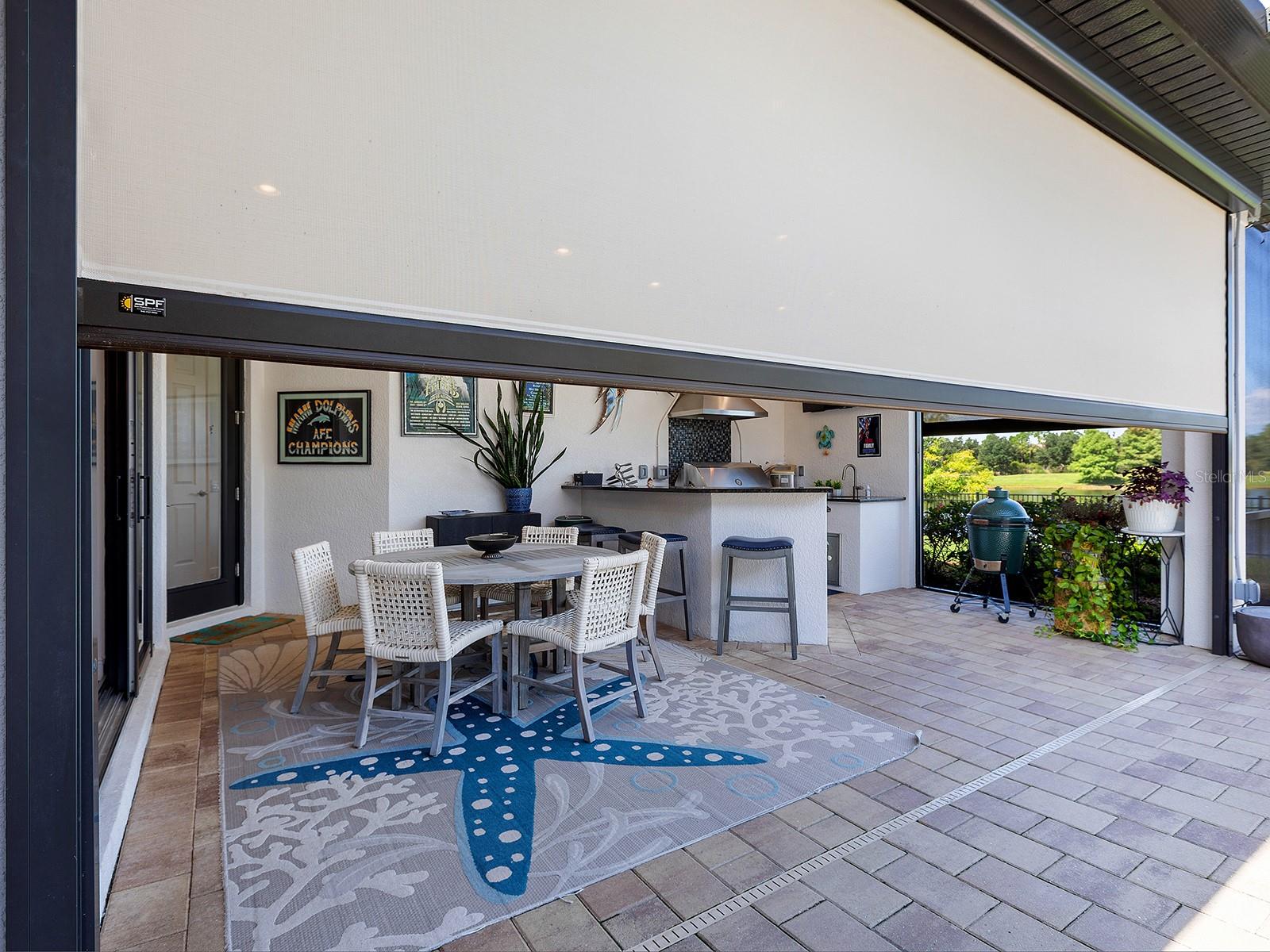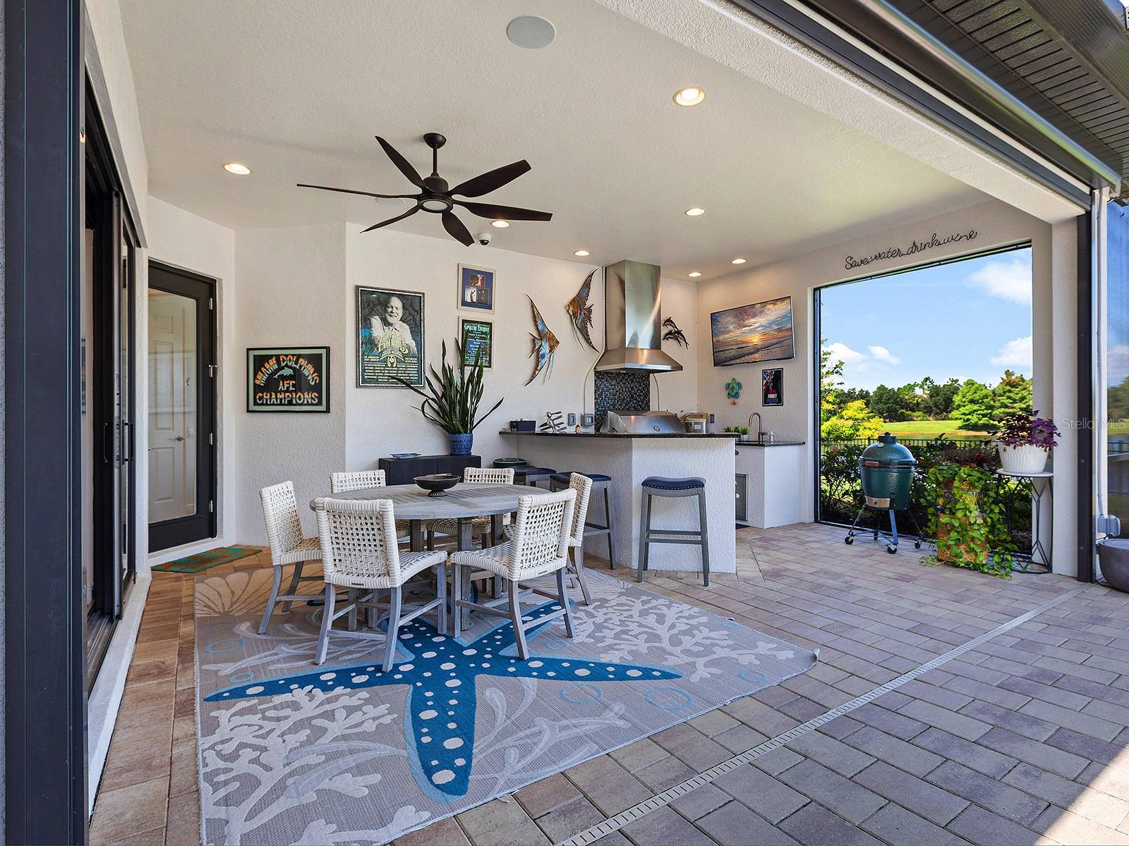 Exterior: Hurricane Shutters, Lighting, Outdoor Grill, Outdoor Kitchen, Rain Gutters, Sidewalk, Sliding Doors, Sprinkler Metered