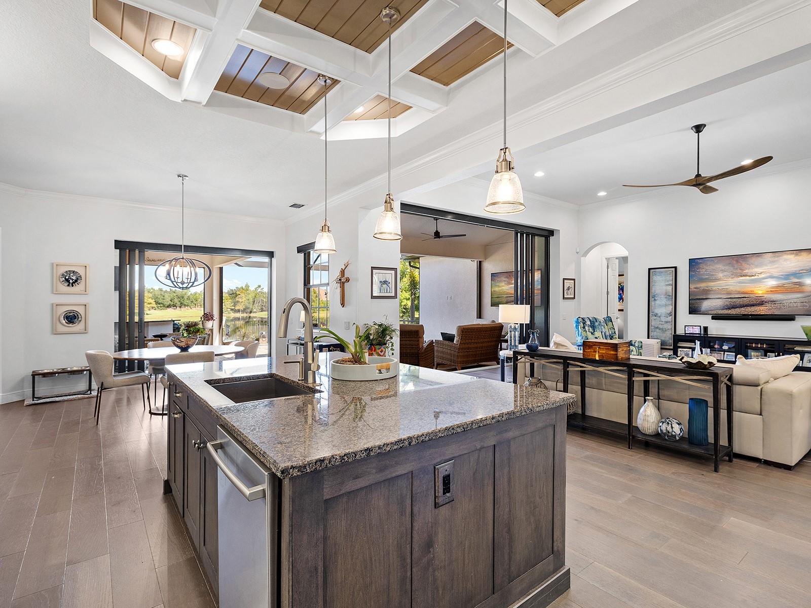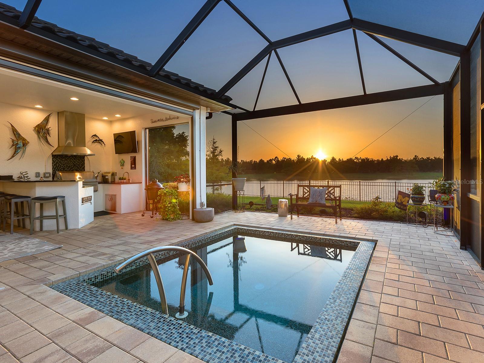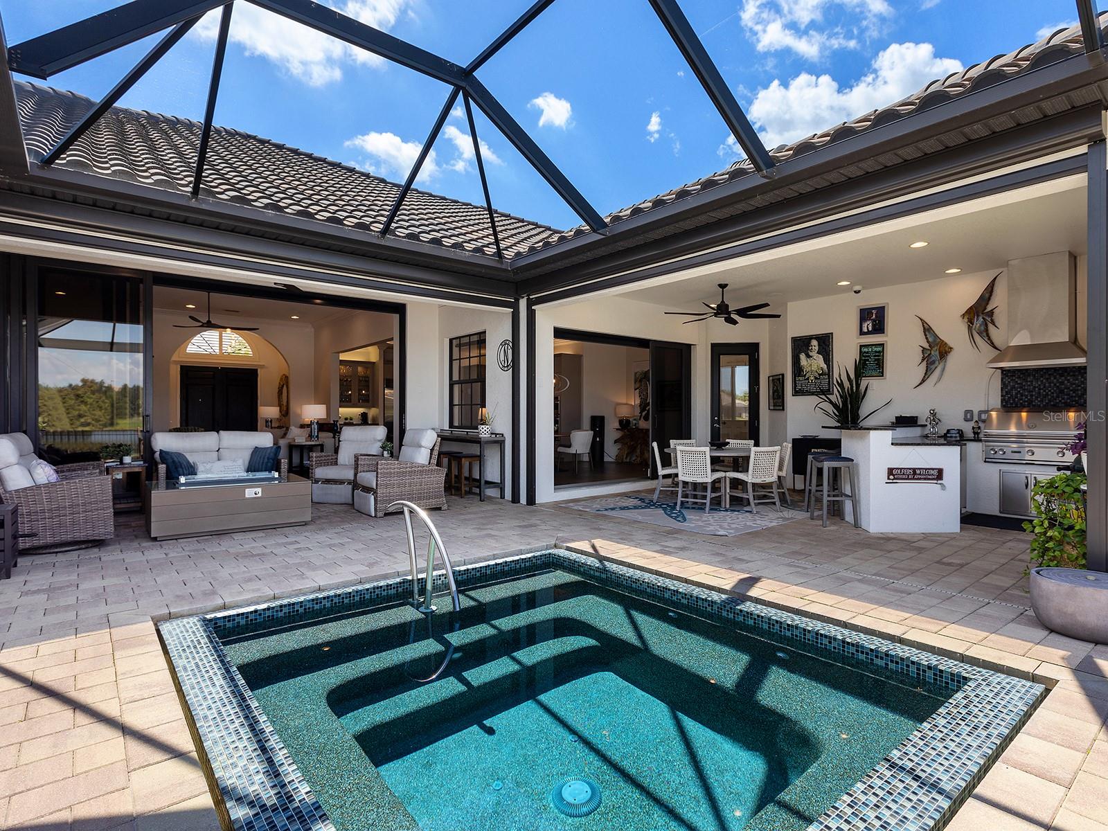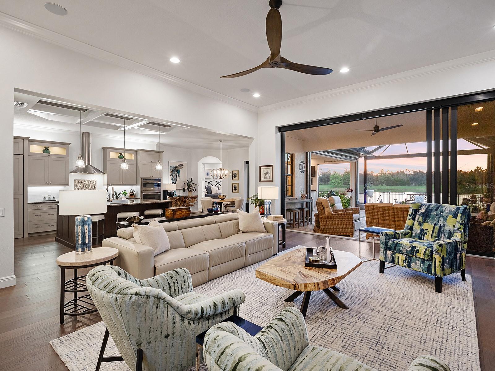 Sunset views and one of the largest homesites in Seacroft set the stage for this custom John Cannon home in Country Club East. With 4 bedrooms, 3.5 baths, a private office, and expansive indoor-outdoor living, the residence showcases lake vistas, unforgettable sunsets, and a rare oversized fenced yard--now offered at a value that reflects both the quality and extensive upgrades.The great room blends 12' ceilings, wood floors, designer lighting and fans, 10' impact sliders with remote-controlled shades, and seamless access to the lanai. A chef's dream, the kitchen offers a 48" Sub-Zero refrigerator, new Bosch dishwasher, oversized island, custom pantry shelving, wood cabinetry, and beam-and-beadboard ceiling detail opening to the dining area. The owner's suite features wood floors (2023), tranquil lake views, dual custom walk-in closets, granite vanities, an oversized shower with rainhead and dual faucets, and a soaking tub. Three additional bedrooms--one en-suite--plus an updated powder room (2024) complete the thoughtful plan.Outdoor living is exceptional with an oversized spa, outdoor kitchen with Lynx grill, refrigerator, and granite bar, new no-see-um screens (2023), hurricane-rated drop-down screens (2024), cage and landscape lighting, and a retractable front-door screen for cross-breezes. The oversized lot with new fencing (2023) creates privacy and a sense of space rarely found in the community.Recent updates elevate peace of mind: freshly painted interior/exterior (2023), impact windows and doors, whole-house generator (2023), 3-zone HVAC with allergen-friendly blue light, plantation shutters and wood blinds (2024), new washer/dryer (2025), and luxury vinyl plank in bedrooms 2-4 (2023). All mounted TVs convey, including two on the lanai plus those in the great room, owner's suite, and bedrooms. The garage is climate-controlled with a mini-split A/C (2023), Icynene insulation, custom flooring, built-in cabinetry, and overhead storage.Country Club East residents enjoy three resort-style pools, fitness, and optional membership at Lakewood Ranch Golf & Country Club. Just outside the gates: Waterside Place, Main Street, dining, shopping, medical facilities, and Gulf beaches all within minutes.