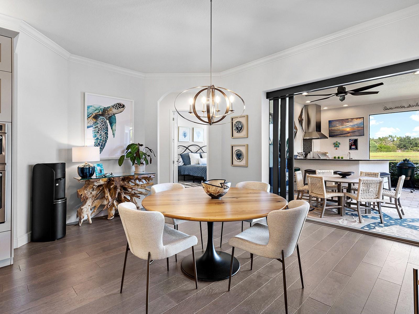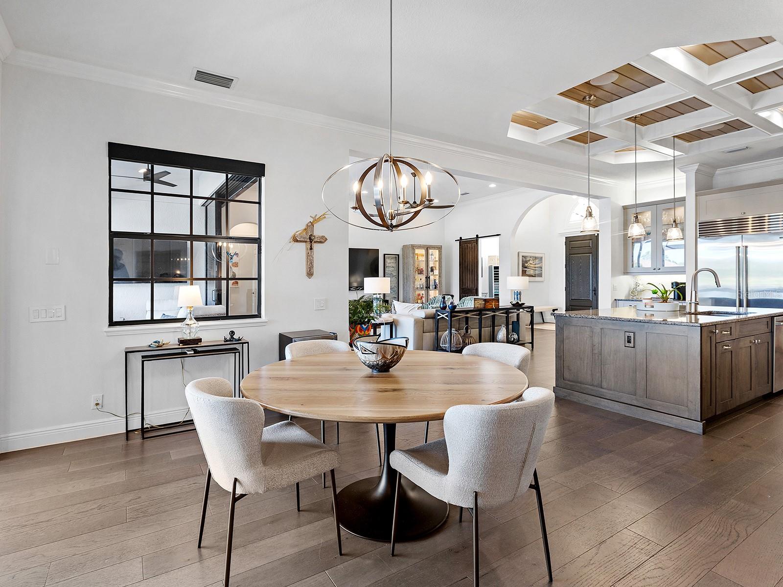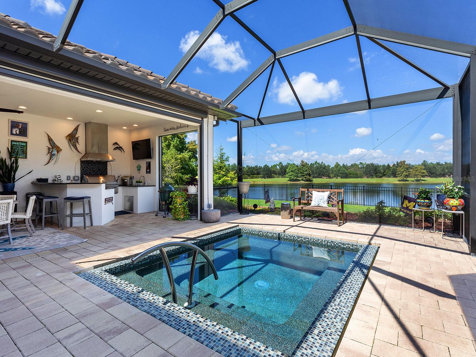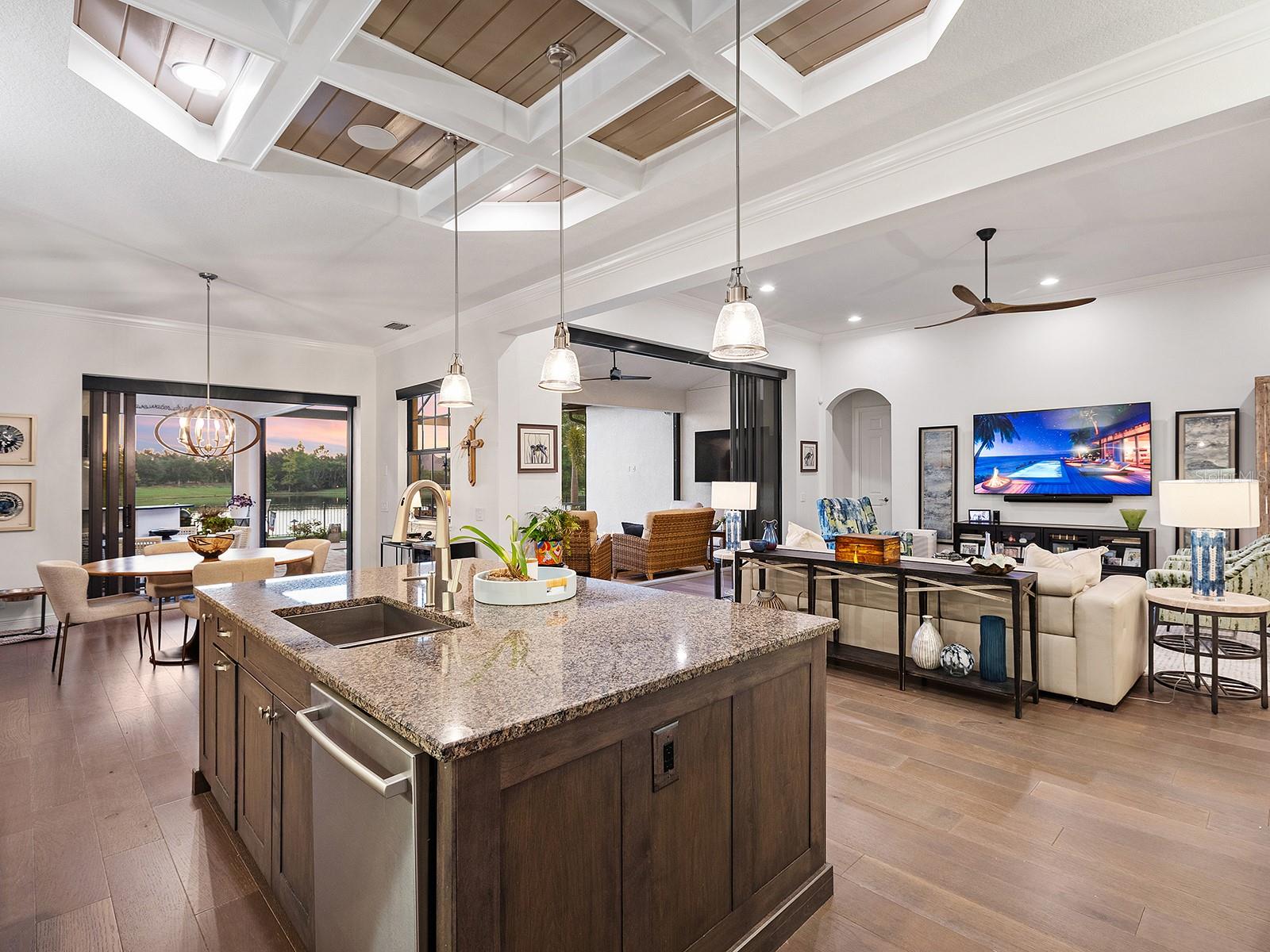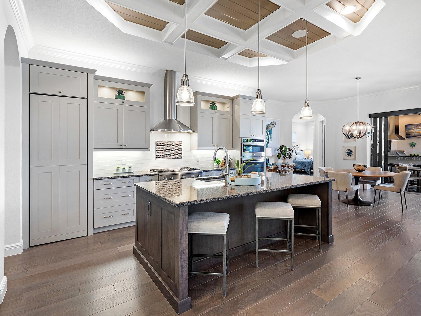 Sunset views and one of the largest homesites in Seacroft set the stage for this custom John Cannon home in Country Club East. With 4 bedrooms, 3.5 baths, a private office, and expansive indoor-outdoor living, the residence showcases lake vistas, unforgettable sunsets, and a rare oversized fenced yard--now offered at a value that reflects both the quality and extensive upgrades.The great room blends 12' ceilings, wood floors, designer lighting and fans, 10' impact sliders with remote-controlled shades, and seamless access to the lanai. A chef's dream, the kitchen offers a 48" Sub-Zero refrigerator, new Bosch dishwasher, oversized island, custom pantry shelving, wood cabinetry, and beam-and-beadboard ceiling detail opening to the dining area. The owner's suite features wood floors (2023), tranquil lake views, dual custom walk-in closets, granite vanities, an oversized shower with rainhead and dual faucets, and a soaking tub. Three additional bedrooms--one en-suite--plus an updated powder room (2024) complete the thoughtful plan.Outdoor living is exceptional with an oversized spa, outdoor kitchen with Lynx grill, refrigerator, and granite bar, new no-see-um screens (2023), hurricane-rated drop-down screens (2024), cage and landscape lighting, and a retractable front-door screen for cross-breezes. The oversized lot with new fencing (2023) creates privacy and a sense of space rarely found in the community.Recent updates elevate peace of mind: freshly painted interior/exterior (2023), impact windows and doors, whole-house generator (2023), 3-zone HVAC with allergen-friendly blue light, plantation shutters and wood blinds (2024), new washer/dryer (2025), and luxury vinyl plank in bedrooms 2-4 (2023). All mounted TVs convey, including two on the lanai plus those in the great room, owner's suite, and bedrooms. The garage is climate-controlled with a mini-split A/C (2023), Icynene insulation, custom flooring, built-in cabinetry, and overhead storage.Country Club East residents enjoy three resort-style pools, fitness, and optional membership at Lakewood Ranch Golf & Country Club. Just outside the gates: Waterside Place, Main Street, dining, shopping, medical facilities, and Gulf beaches all within minutes.