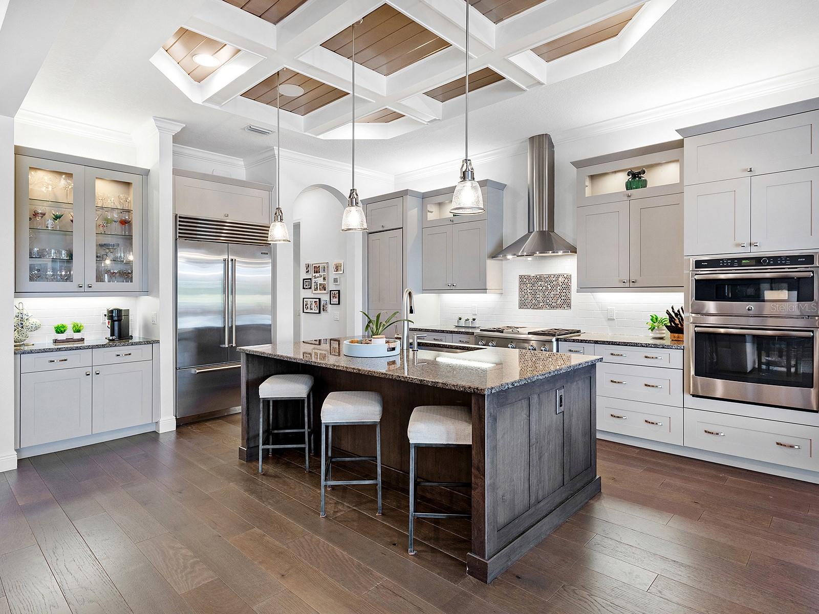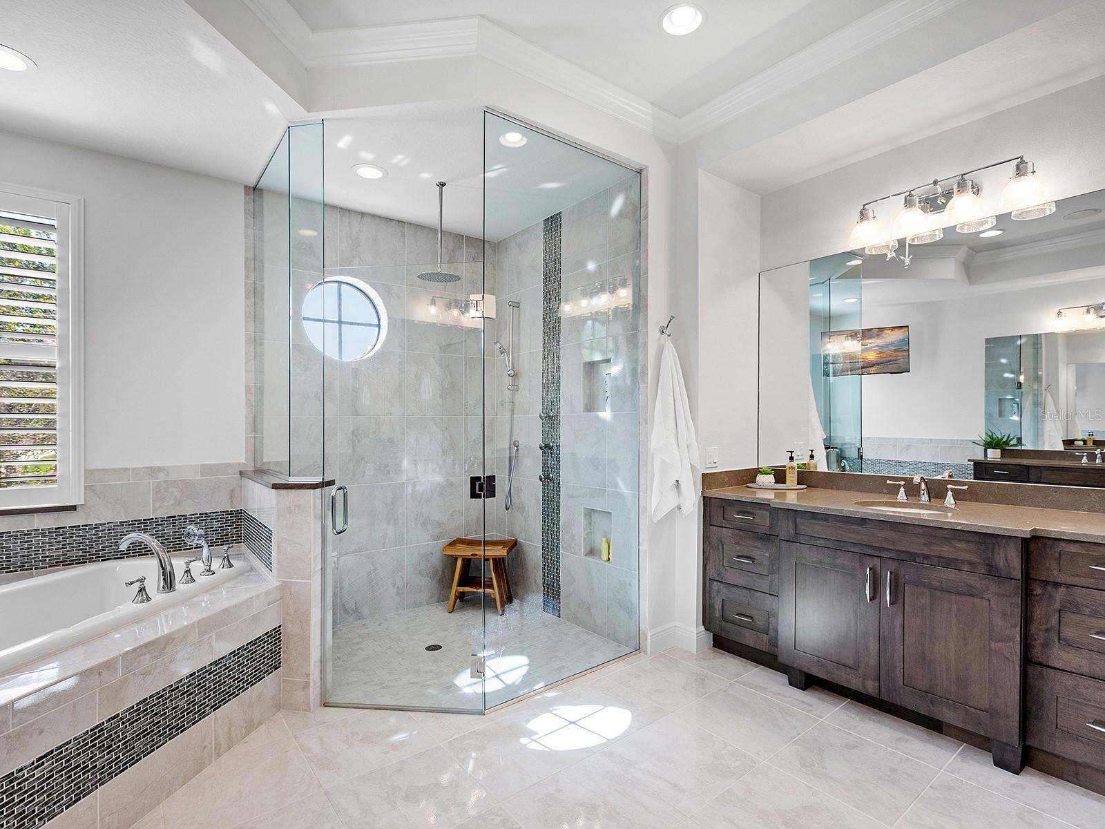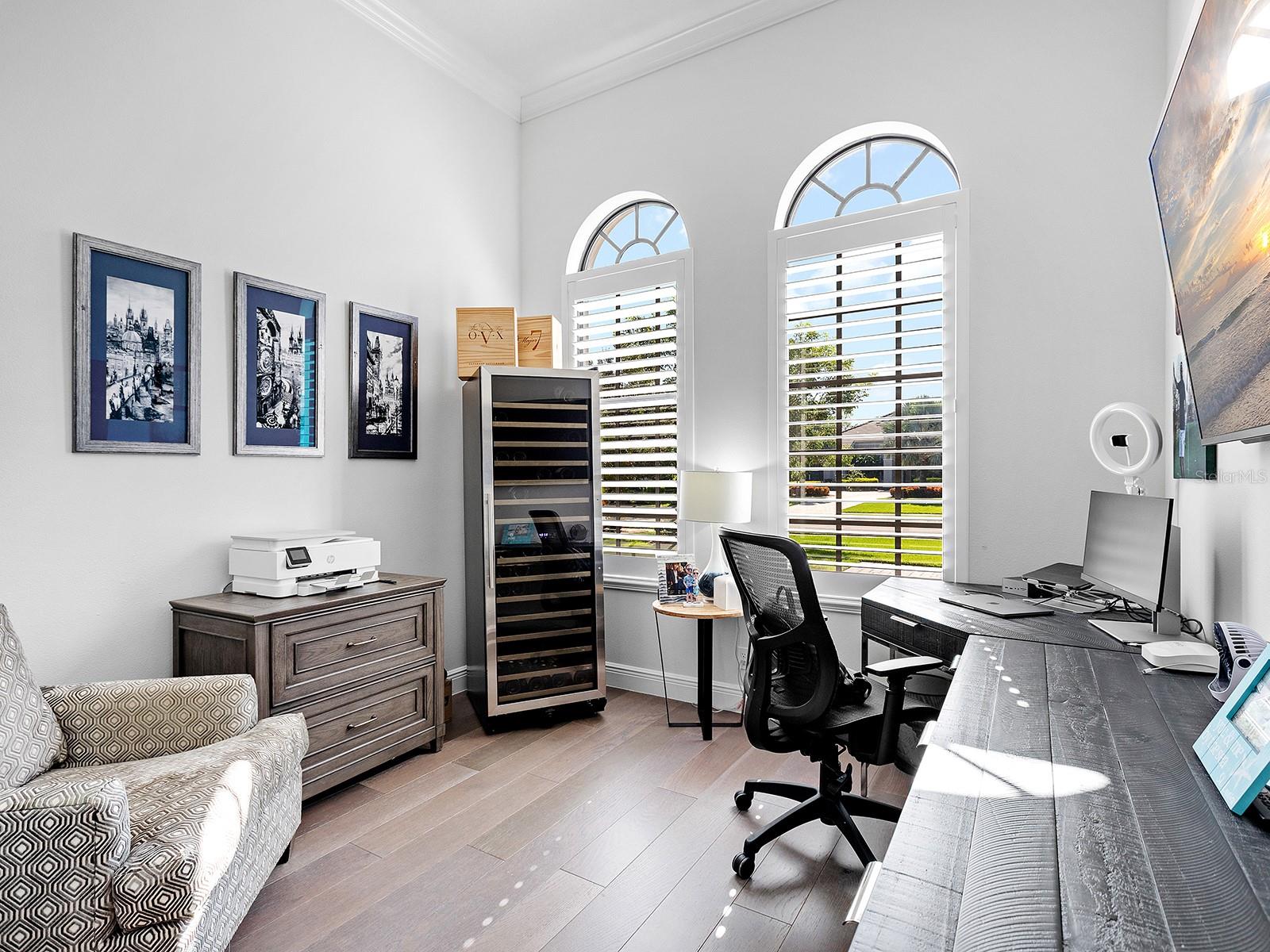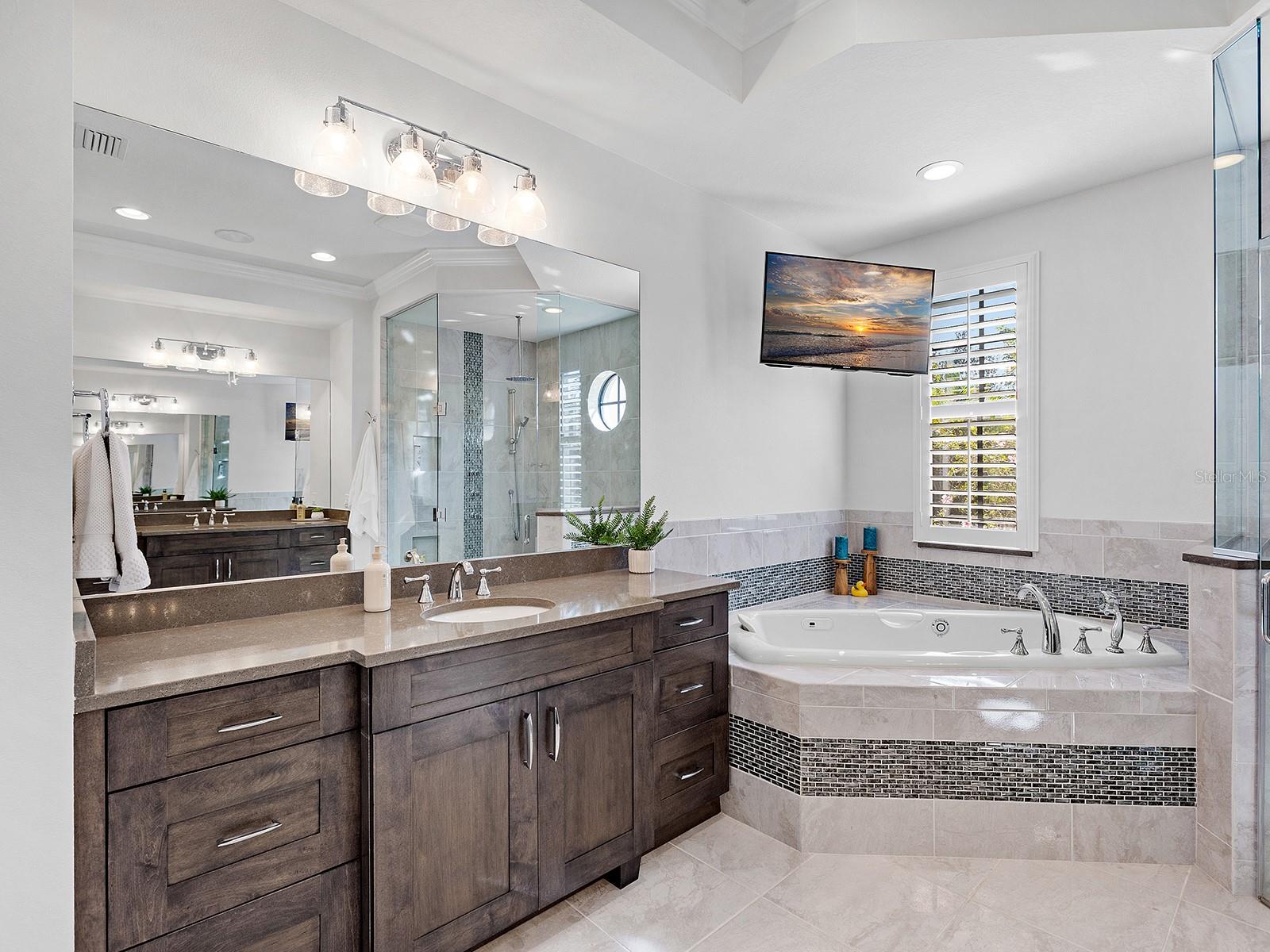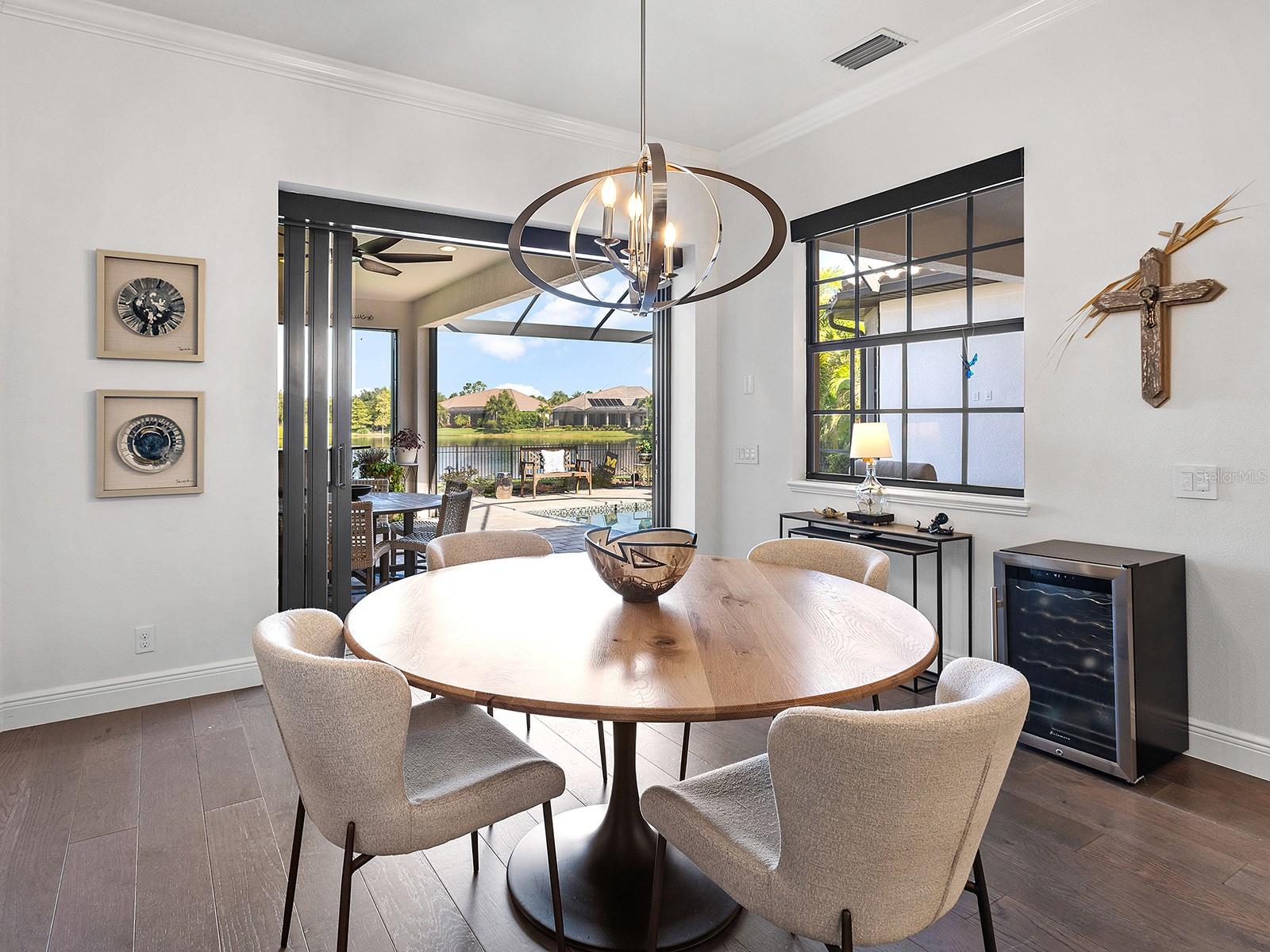 Sunset views and one of the largest homesites in Seacroft set the stage for this custom John Cannon home in Country Club East. With 4 bedrooms, 3.5 baths, a private office, and expansive indoor-outdoor living, the residence showcases lake vistas, unforgettable sunsets, and a rare oversized fenced yard--now offered at a value that reflects both the quality and extensive upgrades.The great room blends 12' ceilings, wood floors, designer lighting and fans, 10' impact sliders with remote-controlled shades, and seamless access to the lanai. A chef's dream, the kitchen offers a 48" Sub-Zero refrigerator, new Bosch dishwasher, oversized island, custom pantry shelving, wood cabinetry, and beam-and-beadboard ceiling detail opening to the dining area. The owner's suite features wood floors (2023), tranquil lake views, dual custom walk-in closets, granite vanities, an oversized shower with rainhead and dual faucets, and a soaking tub. Three additional bedrooms--one en-suite--plus an updated powder room (2024) complete the thoughtful plan.Outdoor living is exceptional with an oversized spa, outdoor kitchen with Lynx grill, refrigerator, and granite bar, new no-see-um screens (2023), hurricane-rated drop-down screens (2024), cage and landscape lighting, and a retractable front-door screen for cross-breezes. The oversized lot with new fencing (2023) creates privacy and a sense of space rarely found in the community.Recent updates elevate peace of mind: freshly painted interior/exterior (2023), impact windows and doors, whole-house generator (2023), 3-zone HVAC with allergen-friendly blue light, plantation shutters and wood blinds (2024), new washer/dryer (2025), and luxury vinyl plank in bedrooms 2-4 (2023). All mounted TVs convey, including two on the lanai plus those in the great room, owner's suite, and bedrooms. The garage is climate-controlled with a mini-split A/C (2023), Icynene insulation, custom flooring, built-in cabinetry, and overhead storage.Country Club East residents enjoy three resort-style pools, fitness, and optional membership at Lakewood Ranch Golf & Country Club. Just outside the gates: Waterside Place, Main Street, dining, shopping, medical facilities, and Gulf beaches all within minutes.