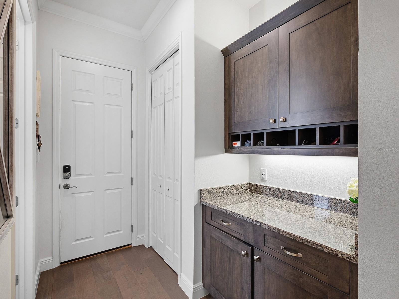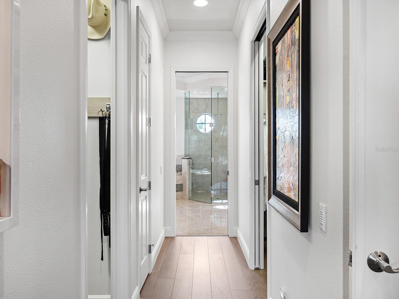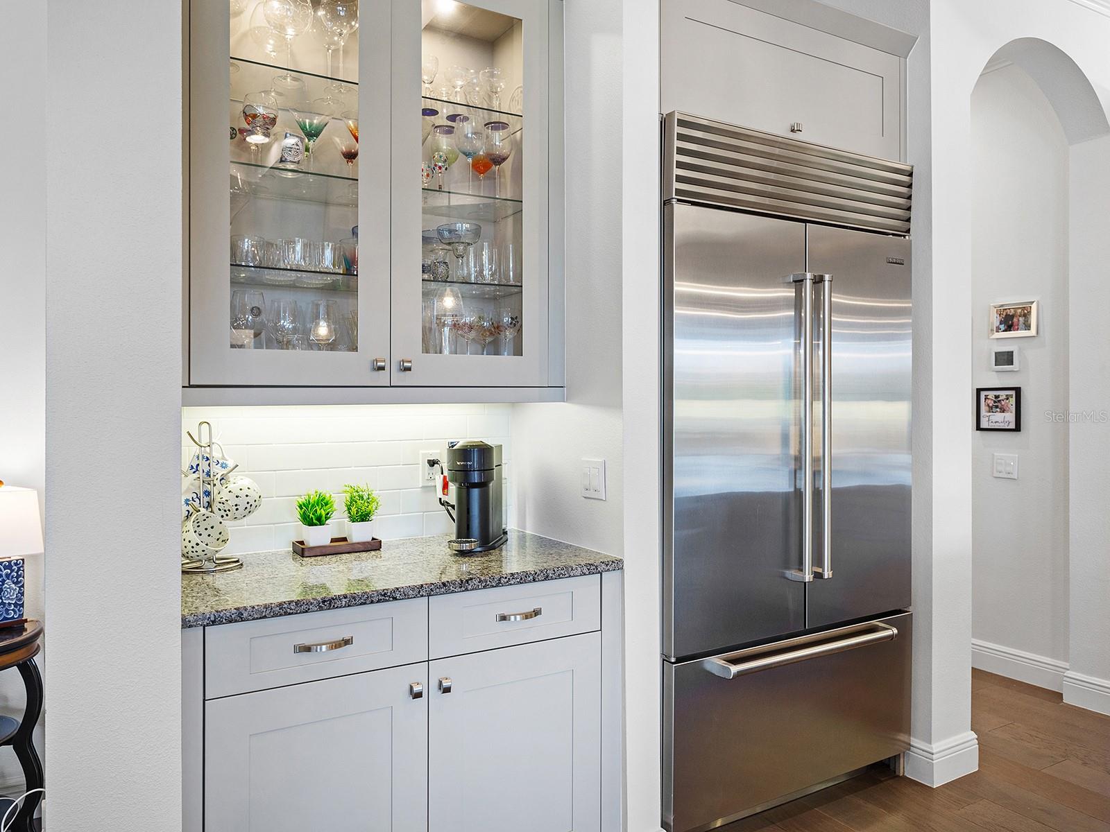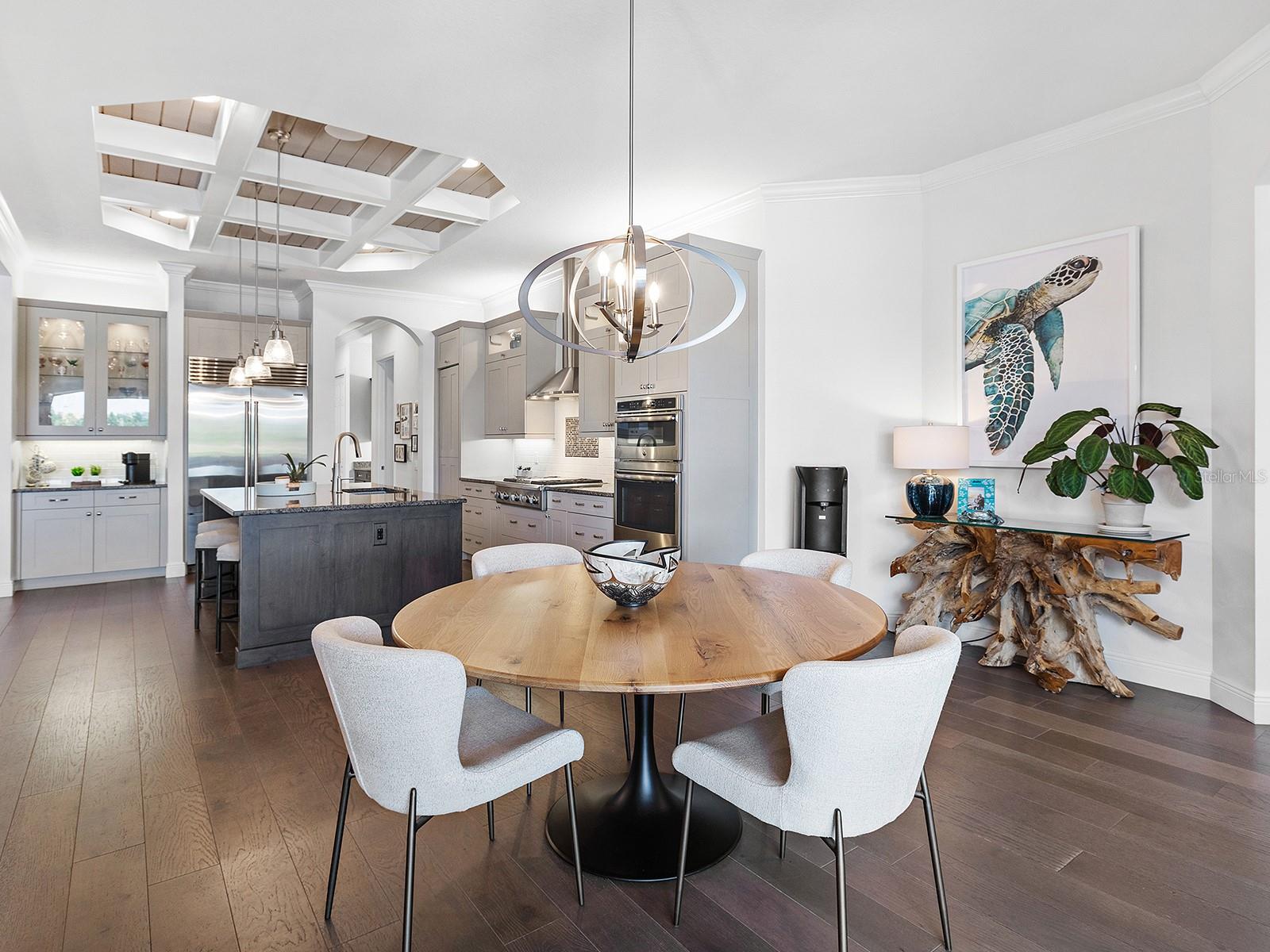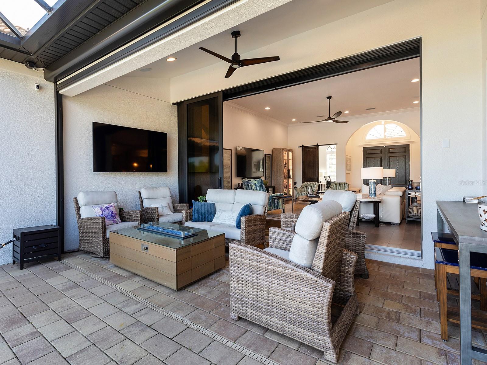 Sunset views and one of the largest homesites in Seacroft set the stage for this custom John Cannon home in Country Club East. With 4 bedrooms, 3.5 baths, a private office, and expansive indoor-outdoor living, the residence showcases lake vistas, unforgettable sunsets, and a rare oversized fenced yard--now offered at a value that reflects both the quality and extensive upgrades.The great room blends 12' ceilings, wood floors, designer lighting and fans, 10' impact sliders with remote-controlled shades, and seamless access to the lanai. A chef's dream, the kitchen offers a 48" Sub-Zero refrigerator, new Bosch dishwasher, oversized island, custom pantry shelving, wood cabinetry, and beam-and-beadboard ceiling detail opening to the dining area. The owner's suite features wood floors (2023), tranquil lake views, dual custom walk-in closets, granite vanities, an oversized shower with rainhead and dual faucets, and a soaking tub. Three additional bedrooms--one en-suite--plus an updated powder room (2024) complete the thoughtful plan.Outdoor living is exceptional with an oversized spa, outdoor kitchen with Lynx grill, refrigerator, and granite bar, new no-see-um screens (2023), hurricane-rated drop-down screens (2024), cage and landscape lighting, and a retractable front-door screen for cross-breezes. The oversized lot with new fencing (2023) creates privacy and a sense of space rarely found in the community.Recent updates elevate peace of mind: freshly painted interior/exterior (2023), impact windows and doors, whole-house generator (2023), 3-zone HVAC with allergen-friendly blue light, plantation shutters and wood blinds (2024), new washer/dryer (2025), and luxury vinyl plank in bedrooms 2-4 (2023). All mounted TVs convey, including two on the lanai plus those in the great room, owner's suite, and bedrooms. The garage is climate-controlled with a mini-split A/C (2023), Icynene insulation, custom flooring, built-in cabinetry, and overhead storage.Country Club East residents enjoy three resort-style pools, fitness, and optional membership at Lakewood Ranch Golf & Country Club. Just outside the gates: Waterside Place, Main Street, dining, shopping, medical facilities, and Gulf beaches all within minutes.