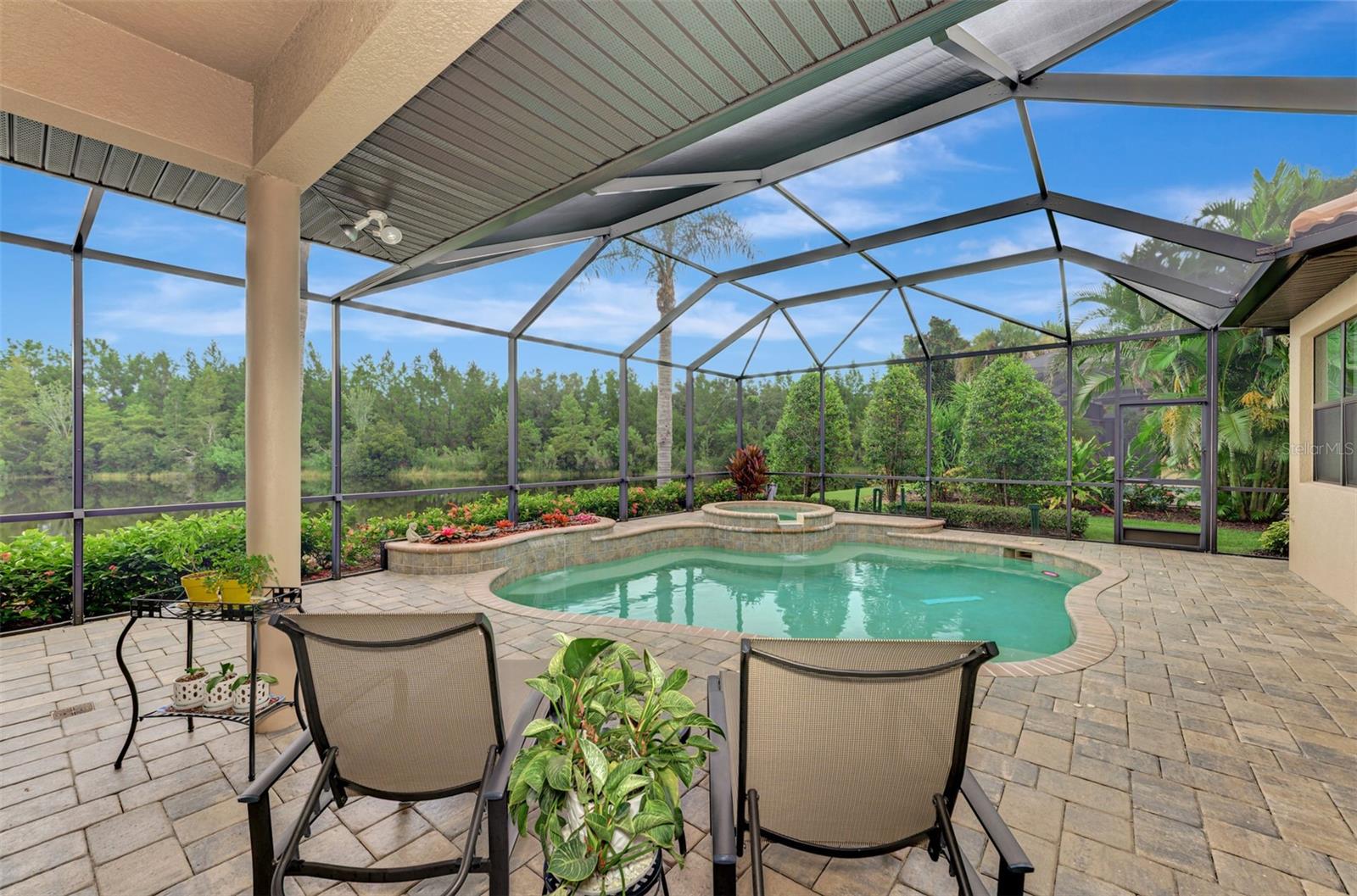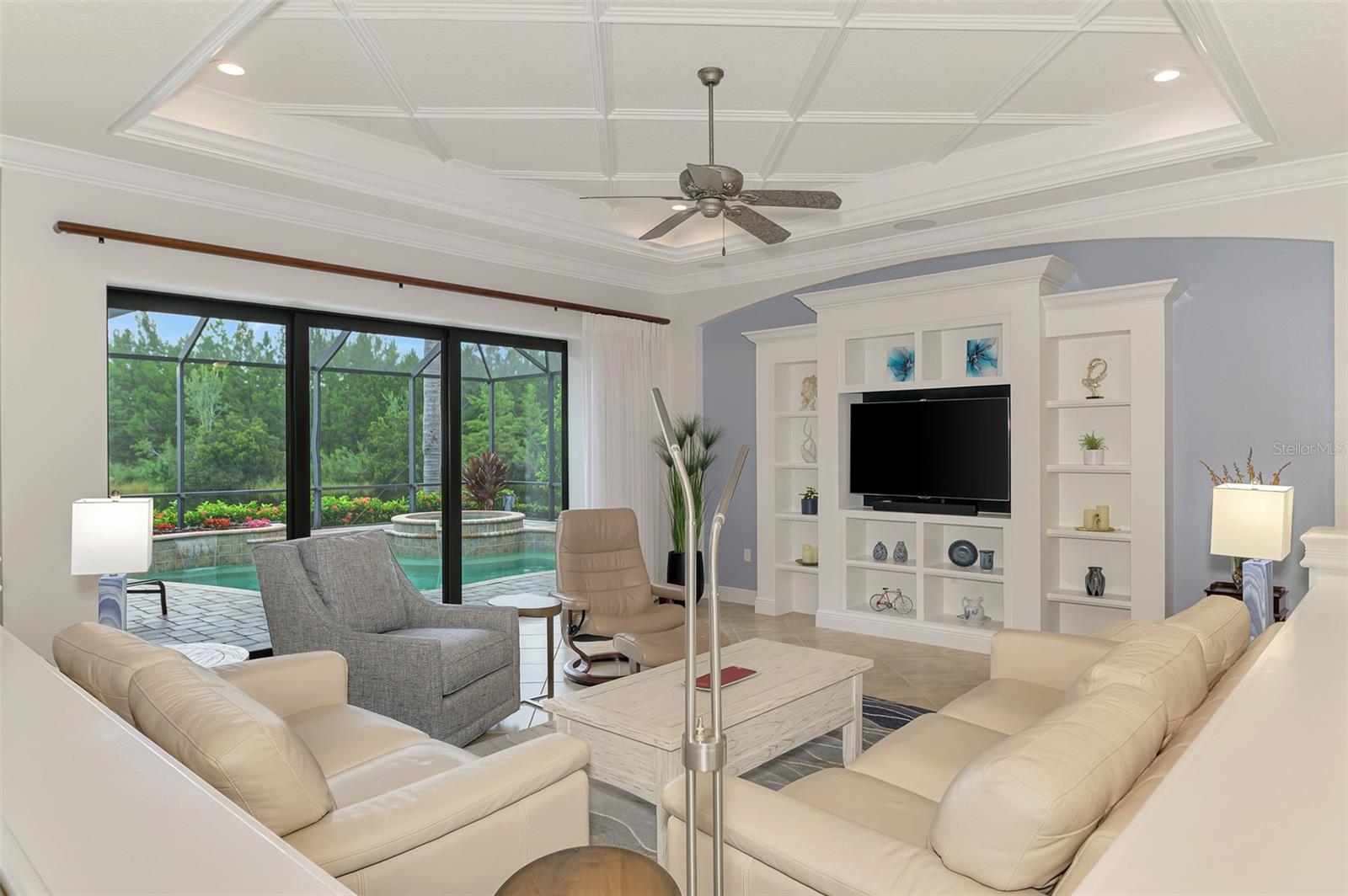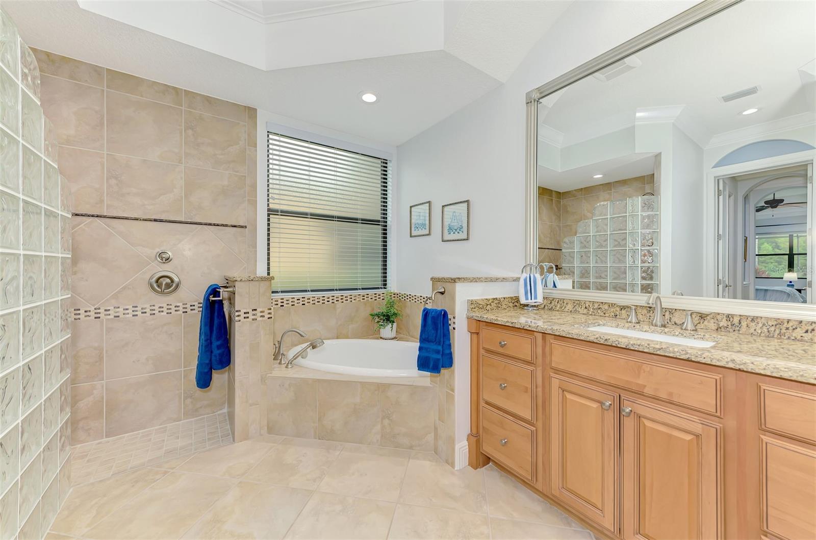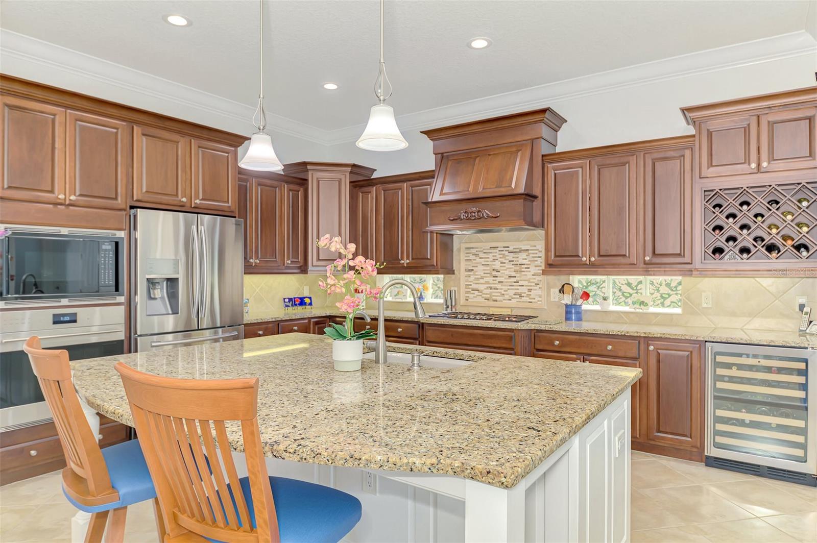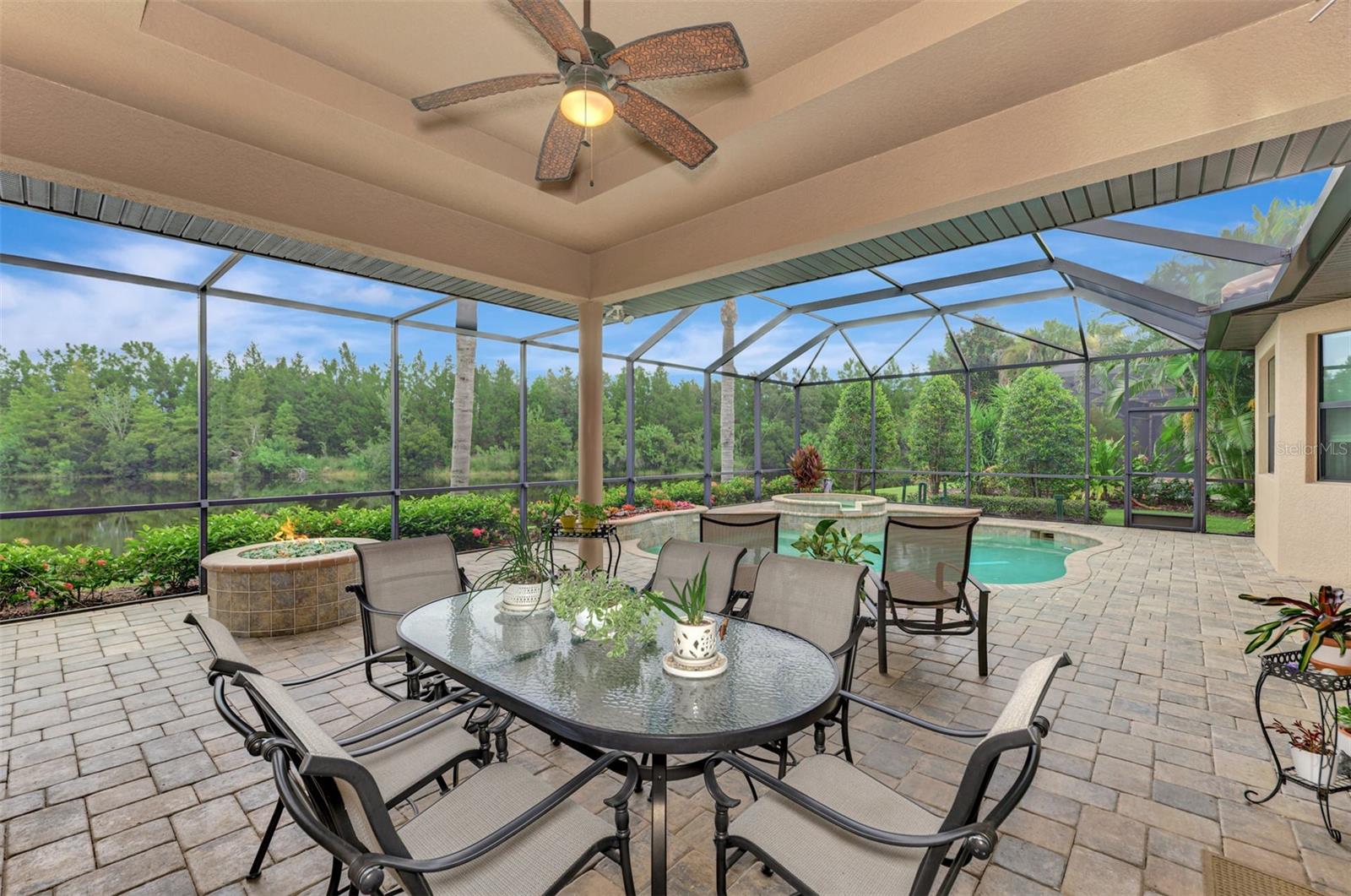Welcome to luxury living in the exclusive gated community of Country Club East! This impeccably maintained 2,934 sq ft custom Lee Wetherington home is nestled on a serene and private homesite with breathtaking water views, offering 3 bedrooms, an office, a separate workout room/flex space and 2.5 baths. Perfectly blending refined indoor living with a true resort-style outdoor experience, this home is ideal for entertaining or relaxing in total privacy. Designed with quality and comfort in mind, the home features HIGH IMPACT DOORS & WINDOWS, a whole-house generator, tankless hot water heater (2023), and a Trane AC system (2023), whole house water refining system and Reverse Osmosis. DeHart Security Camera System monitors the entire perimeter, complete with a command center and video monitor to be used with Zuum app that is discreetly located in the hall closet. The heart of the home is the gourmet chef's kitchen, boasting custom cabinetry and top-tier appliances: Wolf oven and microwave, Thermador gas cooktop, Bosch dishwasher, and Uline dual-zone wine chiller. Solid wood shelving in the pantry & wood shelving in all closets elevates organization with a clean, luxurious aesthetic.The spacious primary suite is filled with natural light and offers serene views, custom closet systems & Duette double view blinds with custom coordinating window treatments. The secondary bedrooms features a Jack & Jill bathroom with double sinks. The large den is perfect as a home office or additional flex space for all of today's lifestyle needs. The grand great room showcases a stunning coffered ceiling with accent lighting. All lighting in the home has been upgraded to LED. Natural light floods in from the double set of triple sliding doors leading to the lanai. Step outside to your own private retreat featuring a sparkling saltwater pool and spa, raised irrigated planters, natural gas fire pit and color changing pool lighting. The lanai is an entertainer's dream, complete with a fully equipped outdoor kitchen featuring a Lynx grill and Proline hood and convenient dedicated pool bath.The 3rd-car garage space has been thoughtfully converted into a home gym with its own EcoBee/Thermostat Energy Saver system. The bonus space can be converted back into garage space. The garage has a separate ductless mini-split system (2023) to keep you and your garage items cool, NewAge garage cabinet system, ceiling-mounted storage, and a chainless LiftMaster door opener (2022) along with a dedicated breaker and switch for the garage refrigerator. The impressive laundry room has an abundance of additional cabinets, and a huge walk in closet along with an additional storage closet. Luxury finishes extend throughout the home with lit tray ceilings, detailed crown molding, surround sound in the great room, and thoughtfully curated designer touches.This home has been maintained with pristine care and is an opportunity to own a turnkey, high-end home in the heart of Lakewood Ranch.Country Club East offers the perfect blend of luxury and lifestyle, with resort-style community pools including The Retreat--featuring a spa, fitness center, outdoor kitchen, and scenic nature trails all in a beautiful and pristine community. This private, gated community provides an unparalleled experience with nearby top-rated schools, world-class dining, shopping, medical facilities, and easy access to I-75. Close to the #1 beaches in the country, Sarasota, St. Pete and Tampa!