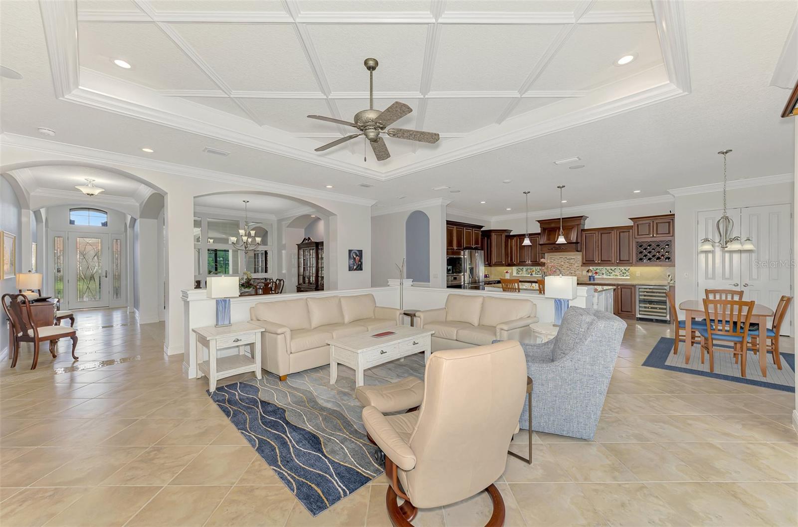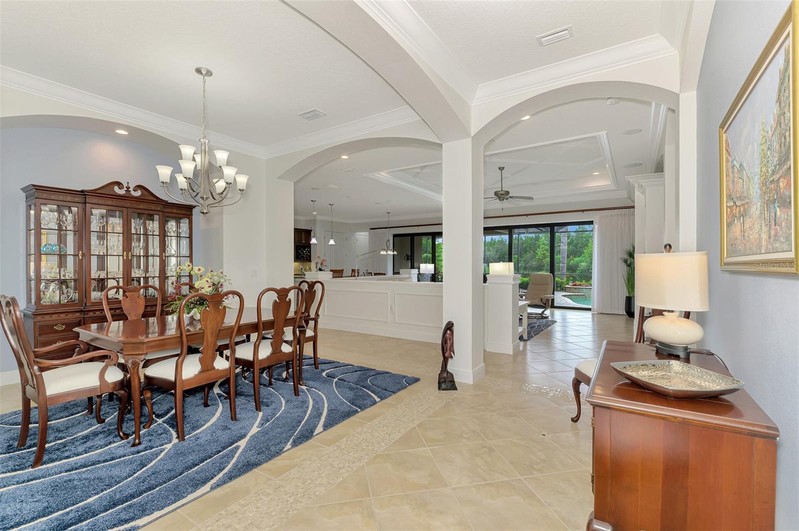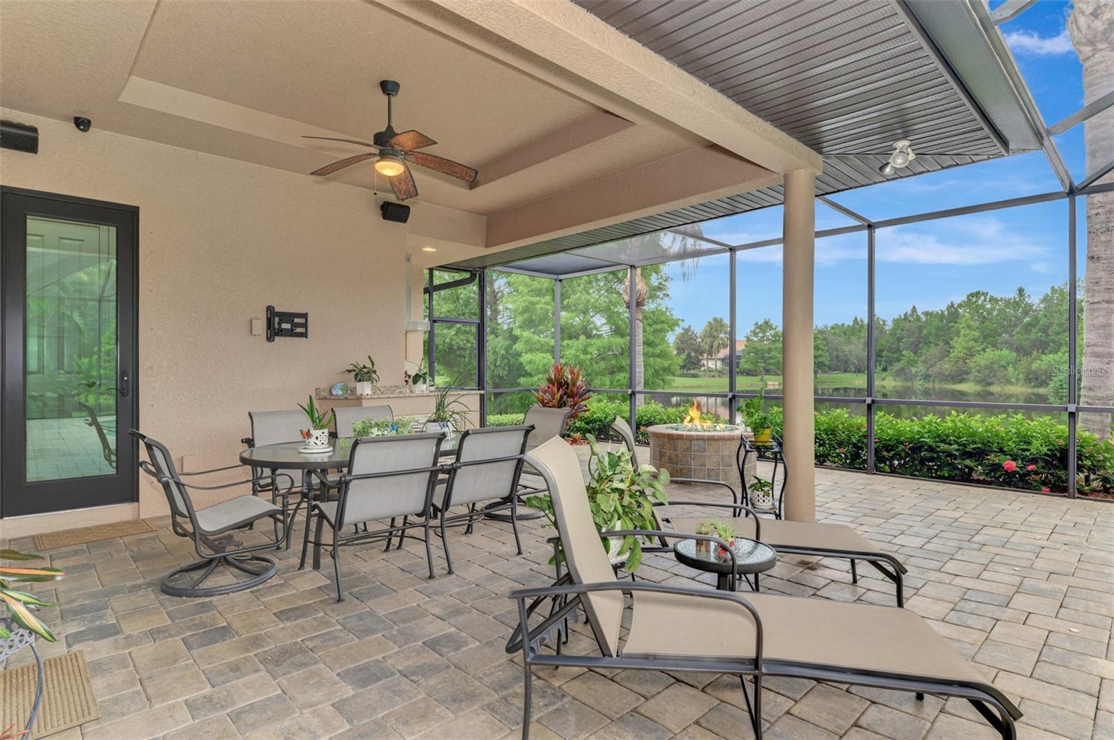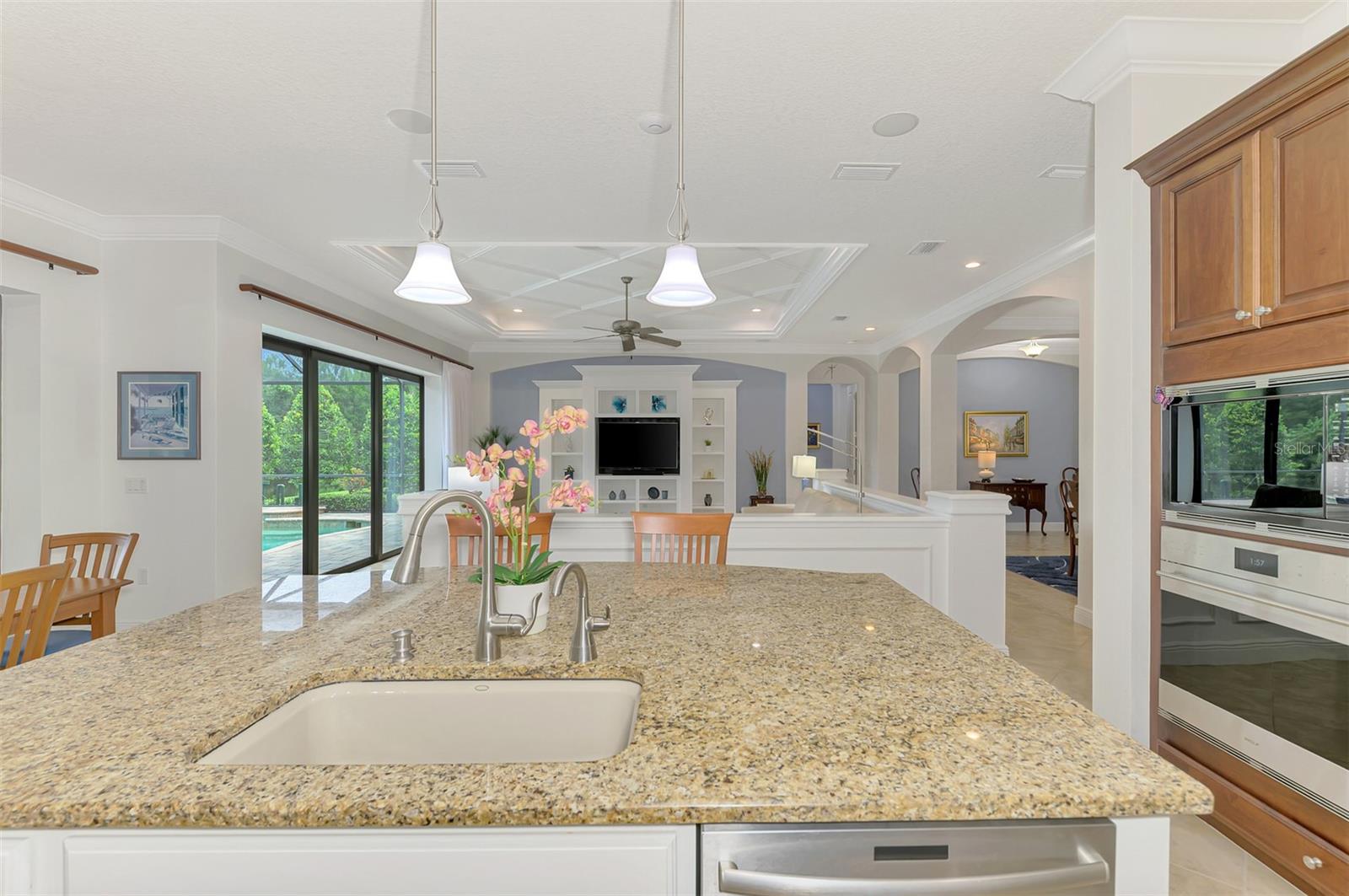 Welcome to luxury living in the exclusive gated community of Country Club East! This impeccably maintained 2,934 sq ft custom Lee Wetherington home is nestled on a serene and private homesite with breathtaking water views, offering 3 bedrooms, an office, a separate workout room/flex space and 2.5 baths. Perfectly blending refined indoor living with a true resort-style outdoor experience, this home is ideal for entertaining or relaxing in total privacy. Designed with quality and comfort in mind, the home features HIGH IMPACT DOORS & WINDOWS, a whole-house generator, tankless hot water heater (2023), and a Trane AC system (2023), whole house water refining system and Reverse Osmosis. DeHart Security Camera System monitors the entire perimeter, complete with a command center and video monitor to be used with Zuum app that is discreetly located in the hall closet. The heart of the home is the gourmet chef's kitchen, boasting custom cabinetry and top-tier appliances: Wolf oven and microwave, Thermador gas cooktop, Bosch dishwasher, and Uline dual-zone wine chiller. Solid wood shelving in the pantry & wood shelving in all closets elevates organization with a clean, luxurious aesthetic.The spacious primary suite is filled with natural light and offers serene views, custom closet systems & Duette double view blinds with custom coordinating window treatments. The secondary bedrooms features a Jack & Jill bathroom with double sinks. The large den is perfect as a home office or additional flex space for all of today's lifestyle needs. The grand great room showcases a stunning coffered ceiling with accent lighting. All lighting in the home has been upgraded to LED. Natural light floods in from the double set of triple sliding doors leading to the lanai. Step outside to your own private retreat featuring a sparkling saltwater pool and spa, raised irrigated planters, natural gas fire pit and color changing pool lighting. The lanai is an entertainer's dream, complete with a fully equipped outdoor kitchen featuring a Lynx grill and Proline hood and convenient dedicated pool bath.The 3rd-car garage space has been thoughtfully converted into a home gym with its own EcoBee/Thermostat Energy Saver system. The bonus space can be converted back into garage space. The garage has a separate ductless mini-split system (2023) to keep you and your garage items cool, NewAge garage cabinet system, ceiling-mounted storage, and a chainless LiftMaster door opener (2022) along with a dedicated breaker and switch for the garage refrigerator. The impressive laundry room has an abundance of additional cabinets, and a huge walk in closet along with an additional storage closet. Luxury finishes extend throughout the home with lit tray ceilings, detailed crown molding, surround sound in the great room, and thoughtfully curated designer touches.This home has been maintained with pristine care and is an opportunity to own a turnkey, high-end home in the heart of Lakewood Ranch.Country Club East offers the perfect blend of luxury and lifestyle, with resort-style community pools including The Retreat--featuring a spa, fitness center, outdoor kitchen, and scenic nature trails all in a beautiful and pristine community. This private, gated community provides an unparalleled experience with nearby top-rated schools, world-class dining, shopping, medical facilities, and easy access to I-75. Close to the #1 beaches in the country, Sarasota, St. Pete and Tampa!