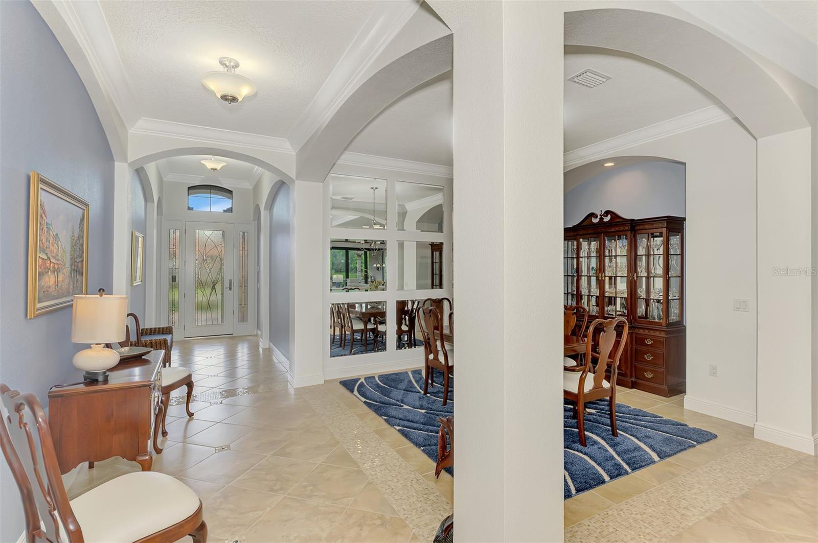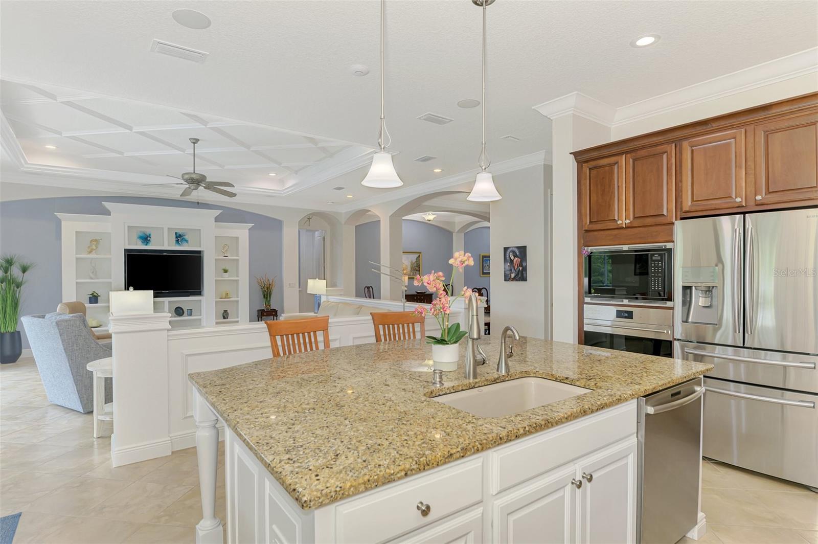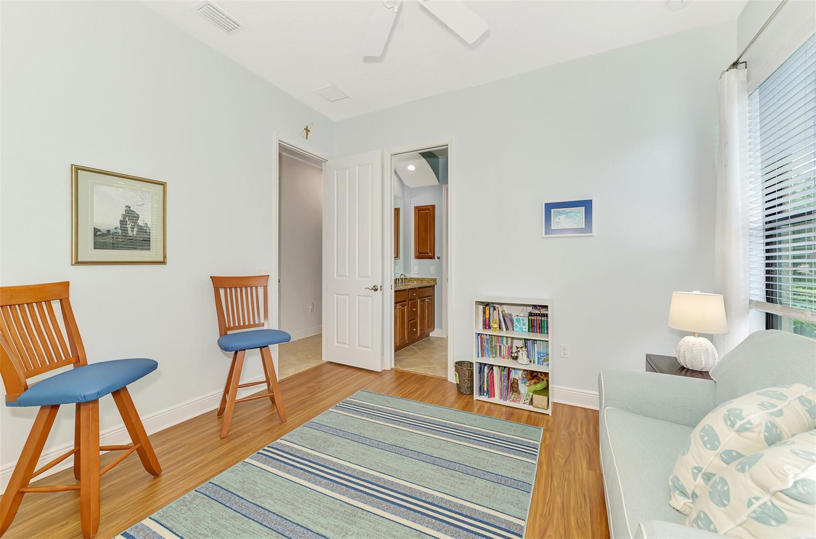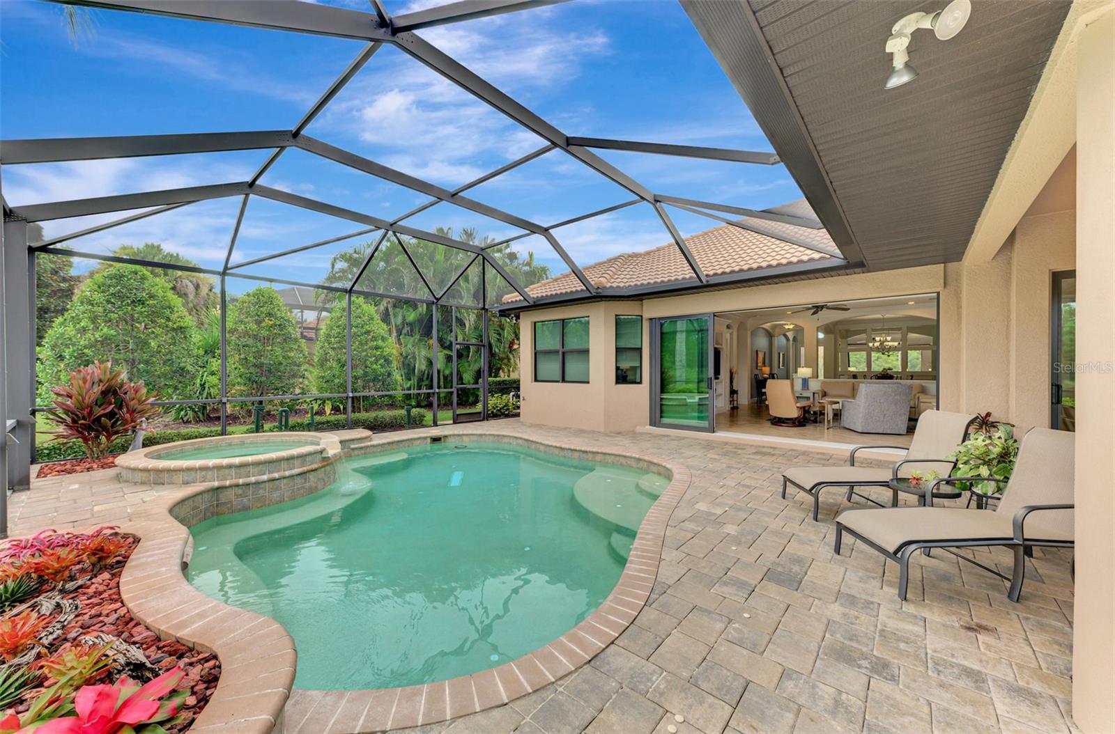 Welcome to luxury living in the exclusive gated community of Country Club East! This impeccably maintained 2,934 sq ft custom Lee Wetherington home is nestled on a serene and private homesite with breathtaking water views, offering 3 bedrooms, an office, a separate workout room/flex space and 2.5 baths. Perfectly blending refined indoor living with a true resort-style outdoor experience, this home is ideal for entertaining or relaxing in total privacy. Designed with quality and comfort in mind, the home features HIGH IMPACT DOORS & WINDOWS, a whole-house generator, tankless hot water heater (2023), and a Trane AC system (2023), whole house water refining system and Reverse Osmosis. DeHart Security Camera System monitors the entire perimeter, complete with a command center and video monitor to be used with Zuum app that is discreetly located in the hall closet. The heart of the home is the gourmet chef's kitchen, boasting custom cabinetry and top-tier appliances: Wolf oven and microwave, Thermador gas cooktop, Bosch dishwasher, and Uline dual-zone wine chiller. Solid wood shelving in the pantry & wood shelving in all closets elevates organization with a clean, luxurious aesthetic.The spacious primary suite is filled with natural light and offers serene views, custom closet systems & Duette double view blinds with custom coordinating window treatments. The secondary bedrooms features a Jack & Jill bathroom with double sinks. The large den is perfect as a home office or additional flex space for all of today's lifestyle needs. The grand great room showcases a stunning coffered ceiling with accent lighting. All lighting in the home has been upgraded to LED. Natural light floods in from the double set of triple sliding doors leading to the lanai. Step outside to your own private retreat featuring a sparkling saltwater pool and spa, raised irrigated planters, natural gas fire pit and color changing pool lighting. The lanai is an entertainer's dream, complete with a fully equipped outdoor kitchen featuring a Lynx grill and Proline hood and convenient dedicated pool bath.The 3rd-car garage space has been thoughtfully converted into a home gym with its own EcoBee/Thermostat Energy Saver system. The bonus space can be converted back into garage space. The garage has a separate ductless mini-split system (2023) to keep you and your garage items cool, NewAge garage cabinet system, ceiling-mounted storage, and a chainless LiftMaster door opener (2022) along with a dedicated breaker and switch for the garage refrigerator. The impressive laundry room has an abundance of additional cabinets, and a huge walk in closet along with an additional storage closet. Luxury finishes extend throughout the home with lit tray ceilings, detailed crown molding, surround sound in the great room, and thoughtfully curated designer touches.This home has been maintained with pristine care and is an opportunity to own a turnkey, high-end home in the heart of Lakewood Ranch.Country Club East offers the perfect blend of luxury and lifestyle, with resort-style community pools including The Retreat--featuring a spa, fitness center, outdoor kitchen, and scenic nature trails all in a beautiful and pristine community. This private, gated community provides an unparalleled experience with nearby top-rated schools, world-class dining, shopping, medical facilities, and easy access to I-75. Close to the #1 beaches in the country, Sarasota, St. Pete and Tampa!