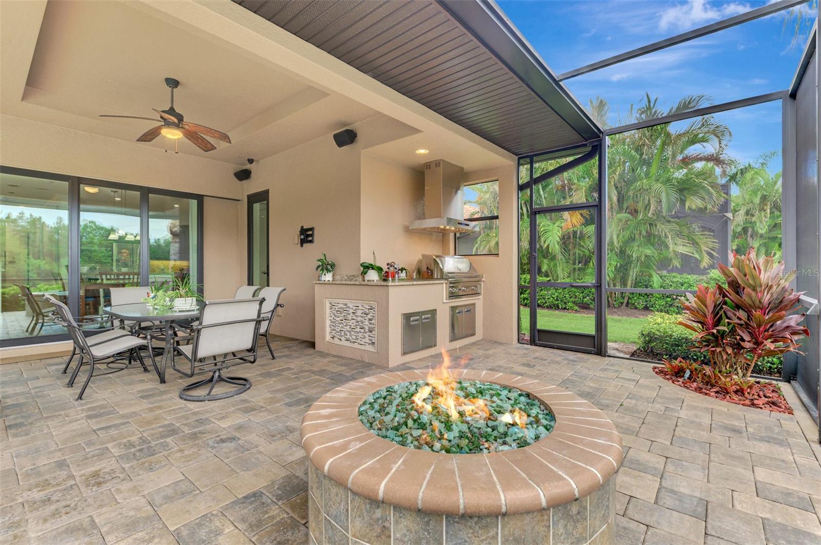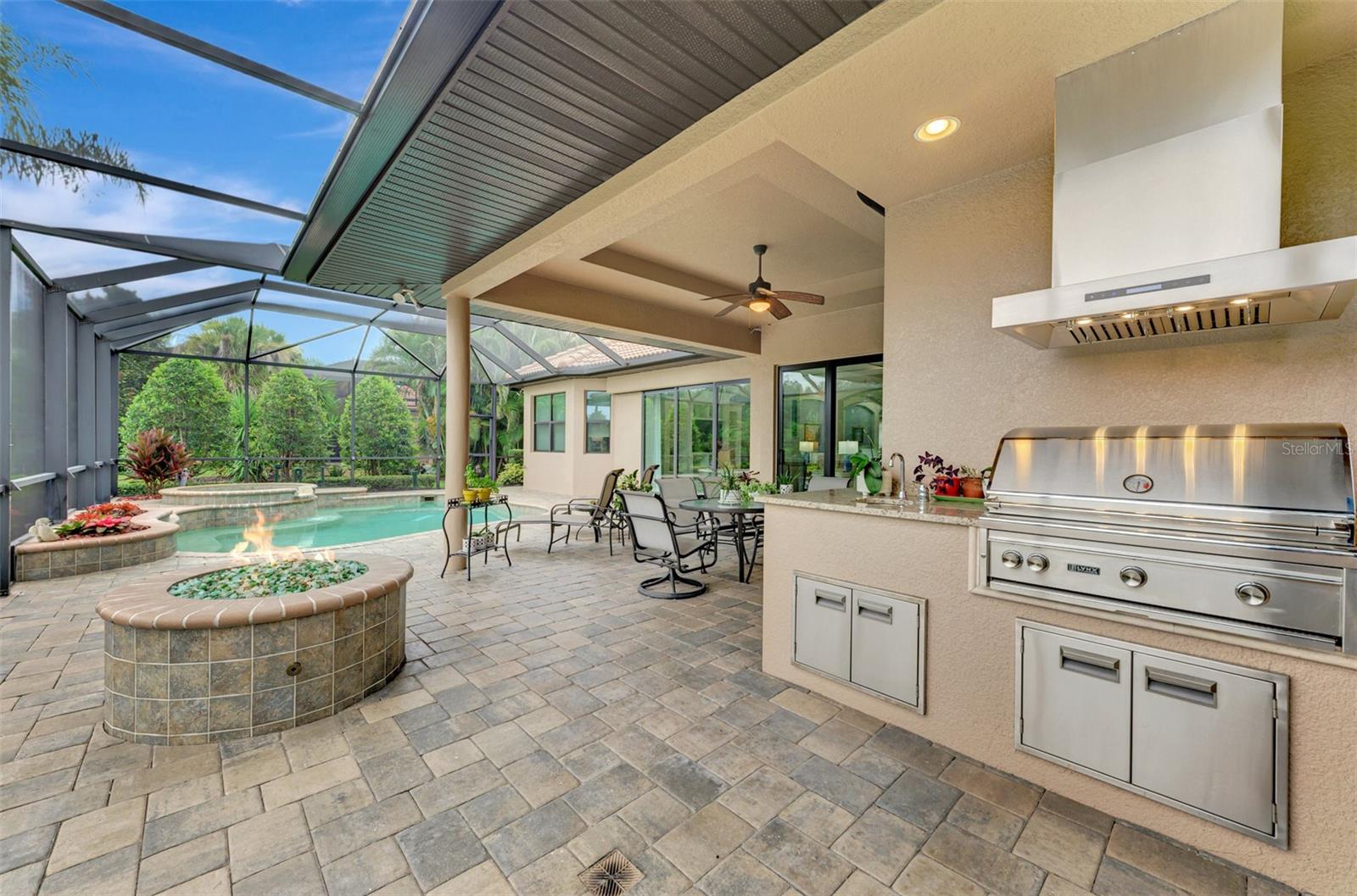 Exterior: Lighting, Outdoor Grill, Outdoor Kitchen, Rain Gutters, Sliding Doors