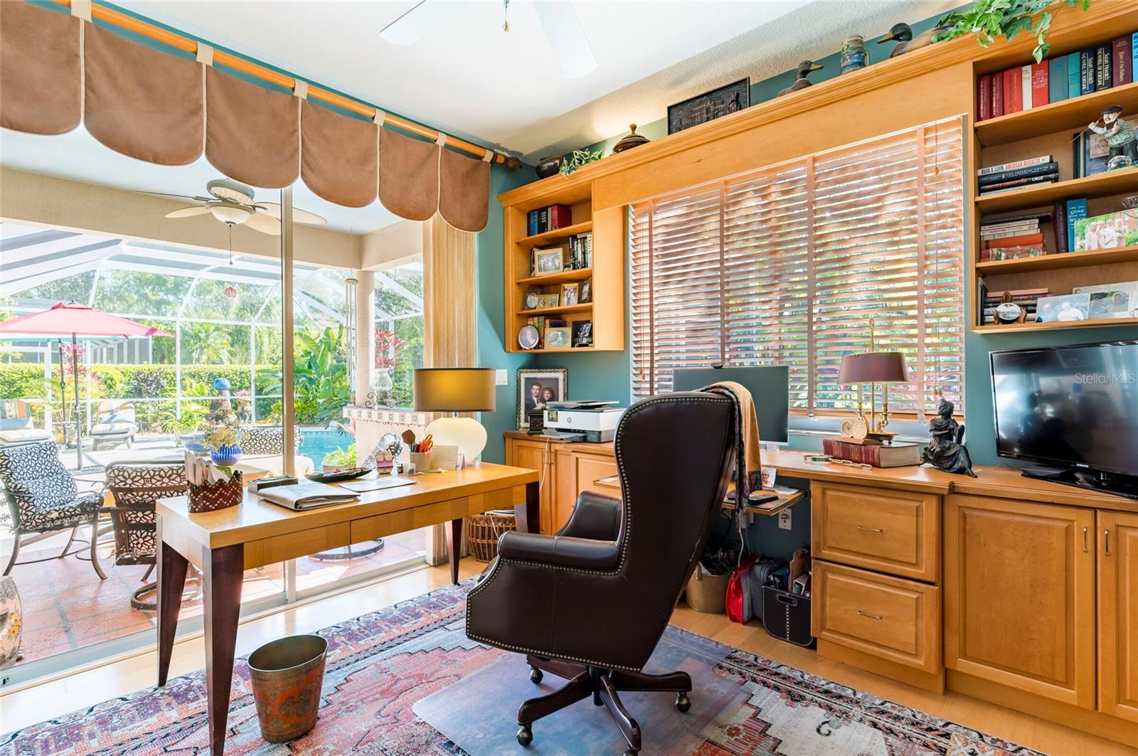 Custom built, three bedroom and three bath home with den/study on exceptional very private beautifully landscaped lot in Treymore a gated subdivision in the Villages of Palm Aire. Spacious three car garage. Built-in entertainment center in family room. Built-ins in den/study plus wet bar, Stainless steel appliances, red wine and white wine coolers new water heater 2024; new air conditioner 2025 with a ten-year transferable warranty new pool skimmer 2024; new pool filter 2021; pool was resurfaced in 2015 pool heater 2020; Trey ceilings with stained glass front door, crown moldings. New wood kitchen cabinets, with self-close feature. Granite counter-tops marble flooring in guest baths new granite counter-tops and new sinks and faucets in all bath rooms. Roman shower in master walk in shower in guest bath. Aquarium windows in dining room and breakfast area. Convenient to UTC mall Sarasota/Bradenton International Airport. Tons of excellent restaurants with ample shopping and just 15-20 minutes from some of the best beaches in the USA. A short commute by car or golf cart to Palm Aire Country Club. A member owned Country Club. With two excellent golf courses, eight tennis courts plus Pickle Ball and a PADEL court. Fitness facility at the tennis Pro shop staffed by an excellent Tennis Pro. Palm Aire Country Club offers a variety optional memberships; social, family Golf, family tennis. Excellent Pro shop staffed by PGA Golf Pros and a great selection of name brand clothing. Reasonable HOA fee and no CDD fee.