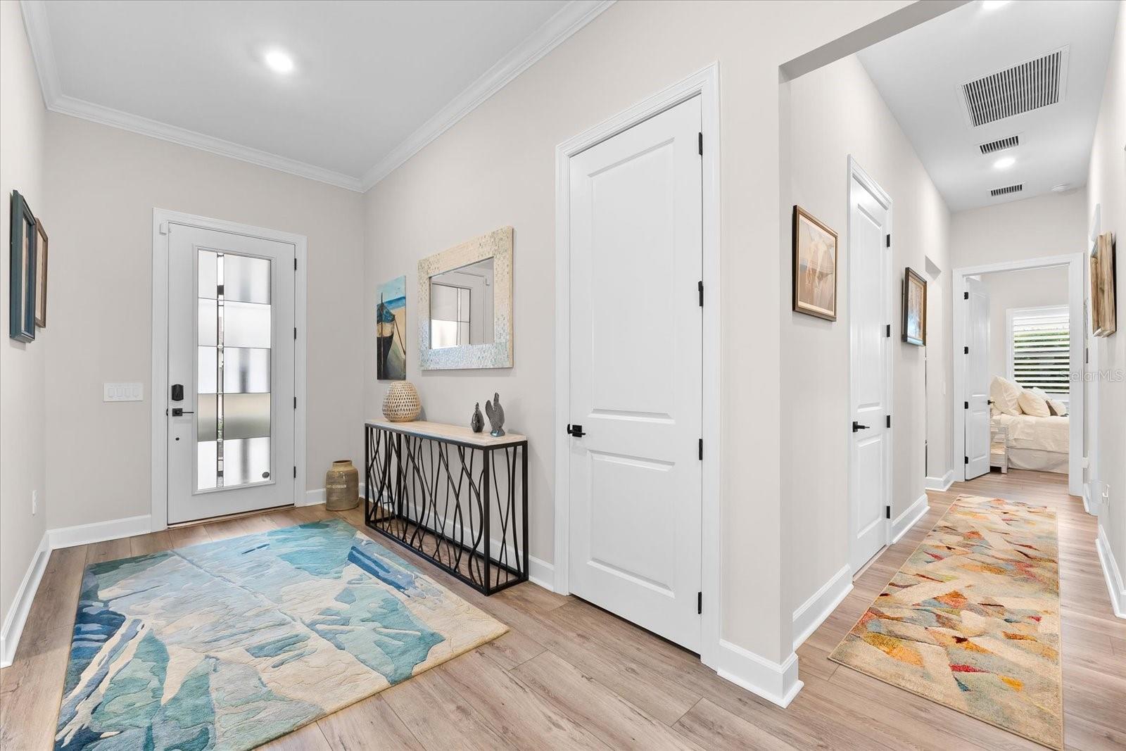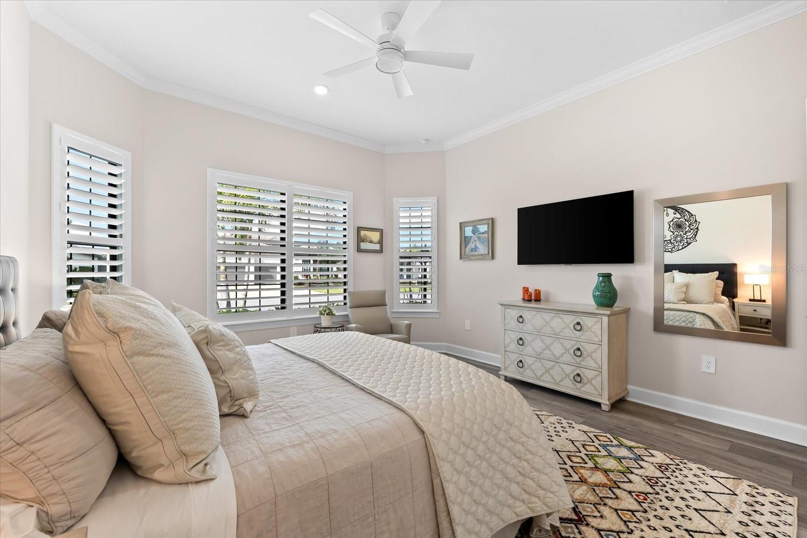 WHOLE HOUSE GENERATOR* IMPACT DOORS AND WINDOWS* PRICED TO SELL*Modern Comfort Meets Resort-Style Living in Del Webb Lakewood Ranch. Welcome to easy, elegant living in the heart of Del Webb Lakewood Ranch--one of the area's most desirable 55+ communities. Set on a premium south-facing waterfront lot, this beautifully upgraded Renown floor plan offers everything you need for comfort, style, and low-maintenance Florida living. Step inside to discover an open, airy layout with 3 spacious bedrooms, 3.5 bathrooms, and a flexible bonus room--perfect for a home office, hobby space, or additional living area. Thoughtful upgrades shine throughout the home, from tray ceilings and crown molding to plantation shutters and impact-resistant windows and doors. The gourmet kitchen is a standout feature, complete with Bosch induction cooktop, built-in double ovens, stainless steel range hood, 2-zone wine fridge, wine rack, reverse osmosis system, touchless faucet, custom cabinetry, and a perfectly organized walk-in pantry. The oversized island is the heart of the home--ideal for casual dining, entertaining, or prepping meals in style. The owner's suite is your personal retreat, featuring a luxurious bath with dual vanities, an oversized walk-in shower, private water closet, and two custom walk-in closets. Two additional guest suites, each with their own private bath and walk-in closet, offer comfort and privacy for visitors. Enjoy peace of mind with a whole-house 24kW generator, water softener system, and an extended 3-car garage with built-in storage and epoxy floors. A separate powder room, drop zone, and large laundry room add to the home's smart and functional design. Love the outdoors? You'll appreciate the custom-designed heated saltwater pool and spa, extended brick-paver lanai, automatic sunshades, awning, and panoramic water views--perfect for relaxing or entertaining year-round. Large pocket sliding doors open wide to blend indoor and outdoor living effortlessly. Living in Del Webb Lakewood Ranch means more than just a beautiful home--it's a lifestyle. Enjoy access to top-tier amenities including 6 tennis courts, 8 pickleball courts, bocce ball, a fitness center with group classes, a resort-style and lap pool, on-site restaurant and bar, and endless social opportunities organized by a full-time Lifestyle Director. With close proximity to Gulf Coast beaches, airports, shopping, dining, and culture, this home truly has it all. Move-in ready and meticulously maintained--don't miss the opportunity to make it yours.