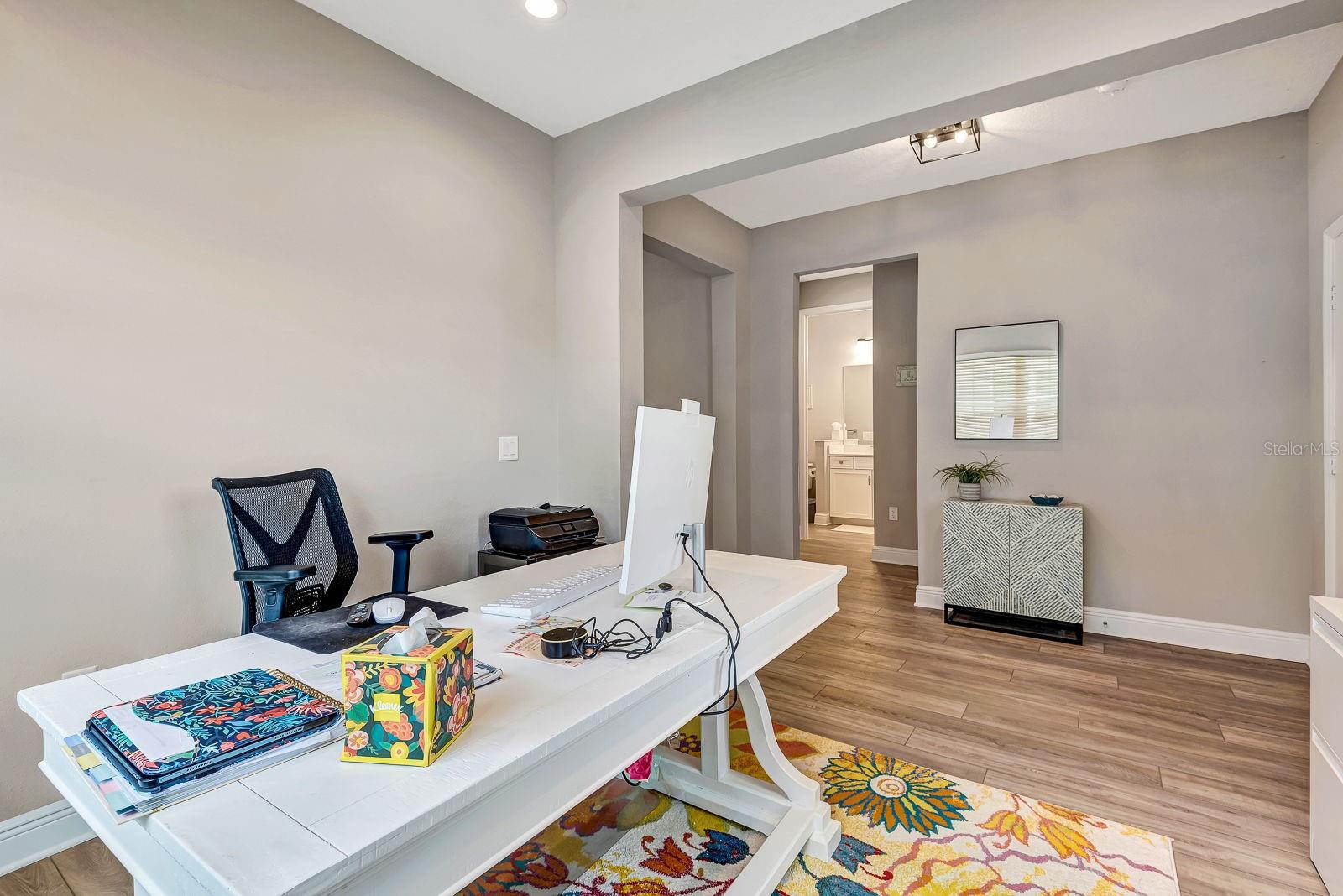 Welcome to one of the most desirable villa models in the sought-after Canoe Creek community. This 2-bedroom + den home is only two years old and showcases premium upgrades throughout, including luxury vinyl plank flooring, soaring ceilings, quartz countertops, an oversized kitchen island, and an epoxy-coated garage floor. Designed with both style and function, this villa also features smart home technology and carefully selected finishes that make it truly move-in ready. As a Canoe Creek resident, you'll enjoy resort-style amenities such as a private villa pool and spa, clubhouse with outdoor kitchen, state-of-the-art fitness center, year-round social events, and more. The community is beautifully maintained, offering the perfect balance of comfort and luxury. Located in the rapidly growing Parrish area near Lakewood Ranch, this home provides easy access to St. Petersburg, Sarasota, and Tampa - all within a short drive. If you're searching for a modern villa in a vibrant, amenity-rich community, this is the one to see.