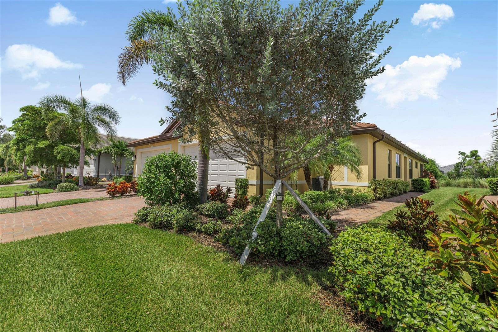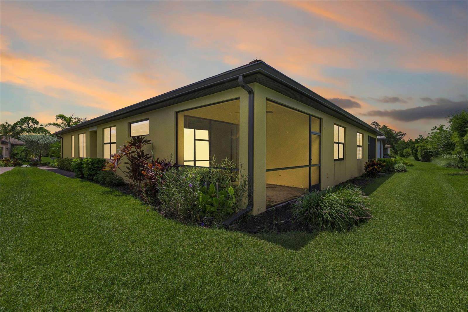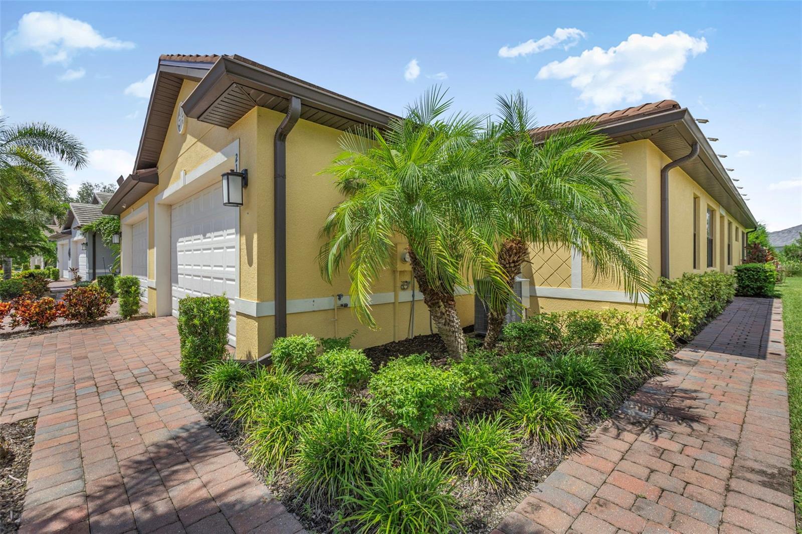 Exterior: Hurricane Shutters, Lighting, Rain Gutters, Sidewalk, Sliding Doors
