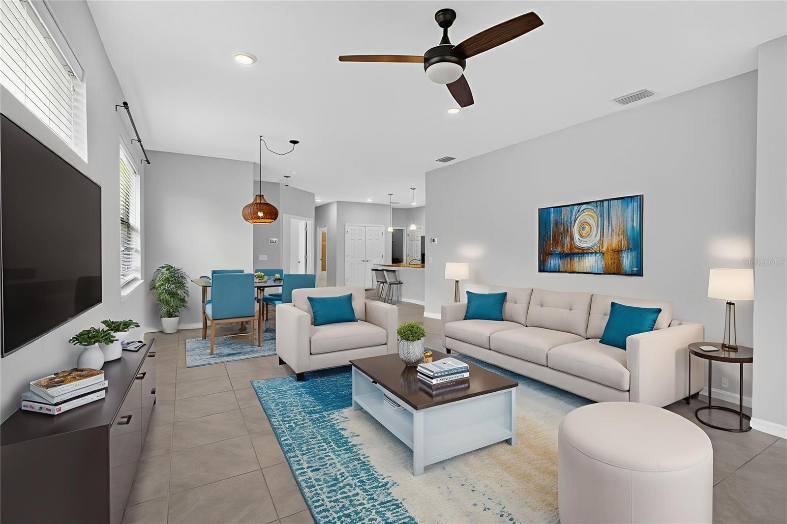 Welcome to this move-in ready 2 bedroom, 2 bathroom villa with a flexible bonus room in the gated community of The Preserve at West Villages in Wellen Park. Built in 2020 and gently used seasonally, this home offers peace of mind with a concrete tile roof, hurricane shutters, a landscaped privacy buffer, and its location in the X flood zone. The open-concept design highlights a granite kitchen with crown-molded cabinets, Whirlpool appliances, double pantry closets, and a spacious island that flows into bright living areas with triple sliding doors leading to the screened patio. The primary suite features dual walk-in closets, a private water closet, and extra storage, while the guest bedroom also has a walk-in closet. Smart home features including keypad entry and an IQPanel system provide modern convenience.The Preserve offers resort-style amenities with pickleball courts, a pool, and a fitness center, and the HOA covers lawn care, irrigation, and exterior maintenance for a worry-free lifestyle. Just outside the gates, enjoy all that Wellen Park has to offer with Downtown Wellen's dining, shopping, splash pad, trails, kayak launches, and Grand Lake. CoolToday Park, the spring training home of the Atlanta Braves, is nearby, along with kayaking on the Myakka River, Warm Mineral Springs, and the sandy shores of Manasota Beach. This villa combines comfort, community, and location for the ultimate Florida lifestyle. **THIS PROPERTY QUALIFIES FOR A 1% LENDER INCENTIVE IF USING PREFERRED LENDER. INQUIRE FOR MORE DETAILS.**