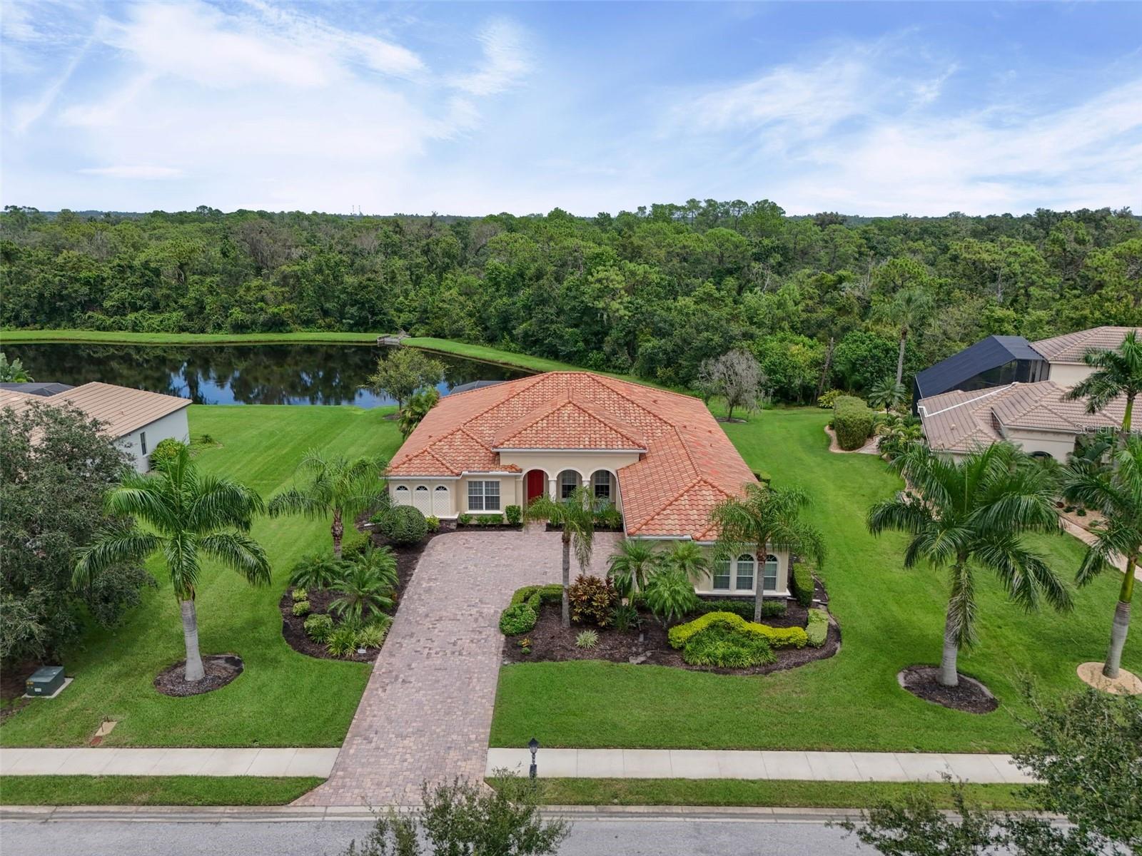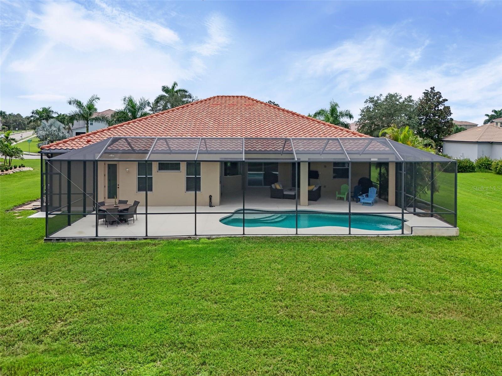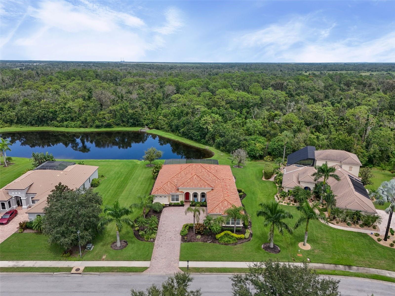 Welcome to this exceptional estate home in the highly sought-after community of Rye Wilderness, where luxury living meets the tranquility of nature. Perfectly situated on a private half-acre homesite with serene pond and preserve views, this 4-bedroom plus den, 3-bath residence spans over 3,120 sq. ft. and combines thoughtful design, modern comfort, and inviting spaces both indoors and out.From the moment you arrive, the home makes a statement with its stately presence, extended driveway, and 3-car garage--providing ample room for parking and storage. Inside, you're greeted by soaring ceilings, abundant natural light, and a Florida-inspired split floor plan that offers ultimate privacy for family and guests alike.The heart of the home is the expansive open-concept living area, where a large family room flows seamlessly into the gourmet kitchen. Designed for both everyday living and entertaining, the kitchen features high-end cabinetry, granite countertops, stainless steel appliances, a center island with seating, and a spacious pantry. Whether preparing a quiet meal at home or hosting a gathering, this space is sure to impress.The owner's suite is a true retreat, complete with peaceful views of the pool and preserve, two walk-in closets, and a spa-like bathroom featuring dual vanities, a soaking tub, and a walk-in shower. The additional bedrooms are generously sized, with two bathrooms providing convenience, including direct pool access for outdoor entertaining. A versatile den offers flexibility for a home office, media room, or playroom.Step outside to your private Florida oasis. The oversized lanai and extended pool cage create multiple areas for lounging, dining, and enjoying the outdoors. The sparkling pool is the centerpiece, with tranquil pond and preserve views as your backdrop. Here, you can watch the incredible wildlife that Rye Wilderness is known for while relaxing in total privacy.Move-in ready and meticulously maintained, this home offers the perfect blend of elegance, function, and natural beauty--all just minutes from shopping, dining, top-rated schools, and the Gulf beaches. This is more than a home; it's the lifestyle you've been waiting for.