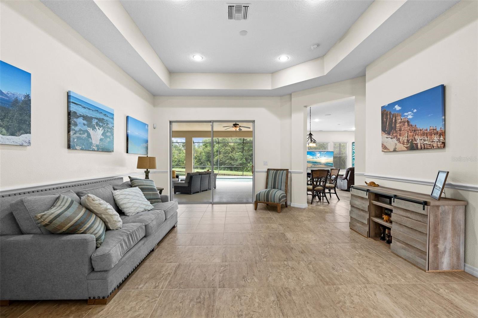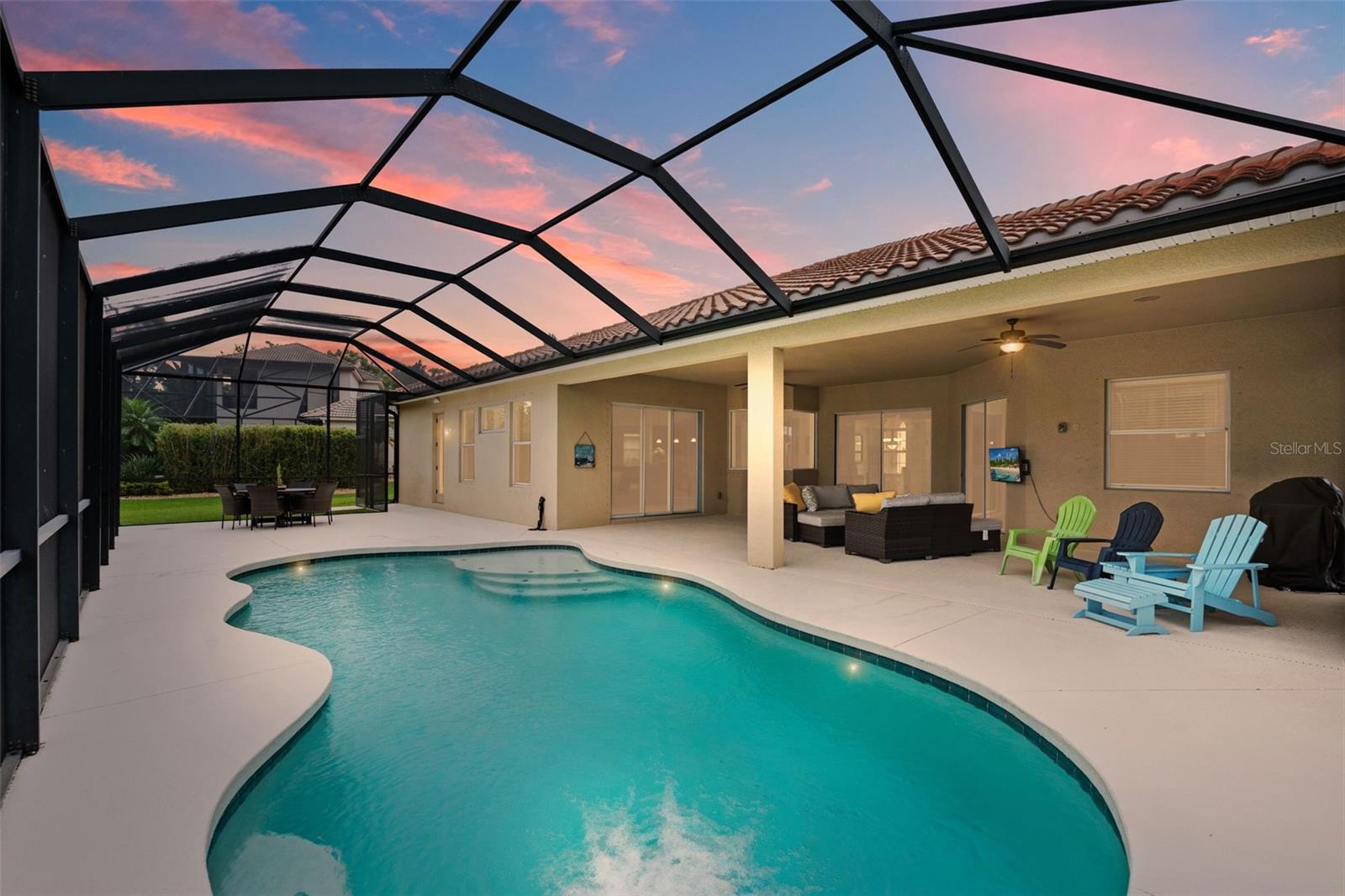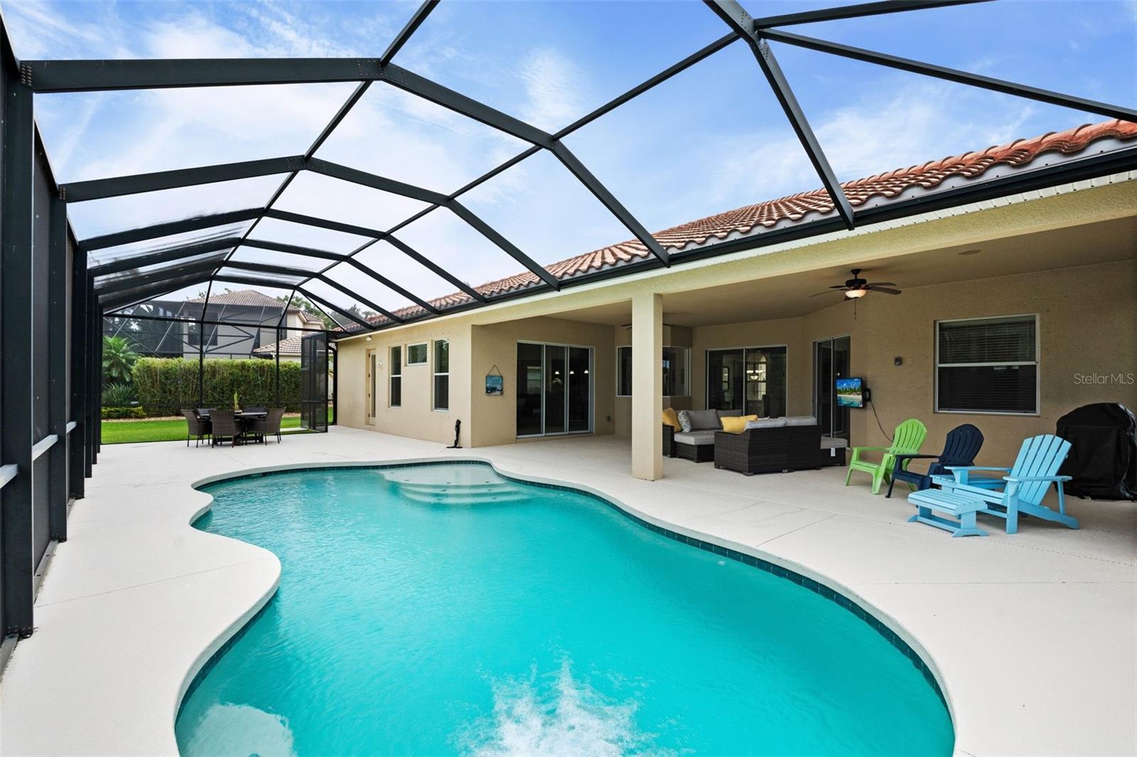 Welcome to this exceptional estate home in the highly sought-after community of Rye Wilderness, where luxury living meets the tranquility of nature. Perfectly situated on a private half-acre homesite with serene pond and preserve views, this 4-bedroom plus den, 3-bath residence spans over 3,120 sq. ft. and combines thoughtful design, modern comfort, and inviting spaces both indoors and out.From the moment you arrive, the home makes a statement with its stately presence, extended driveway, and 3-car garage--providing ample room for parking and storage. Inside, you're greeted by soaring ceilings, abundant natural light, and a Florida-inspired split floor plan that offers ultimate privacy for family and guests alike.The heart of the home is the expansive open-concept living area, where a large family room flows seamlessly into the gourmet kitchen. Designed for both everyday living and entertaining, the kitchen features high-end cabinetry, granite countertops, stainless steel appliances, a center island with seating, and a spacious pantry. Whether preparing a quiet meal at home or hosting a gathering, this space is sure to impress.The owner's suite is a true retreat, complete with peaceful views of the pool and preserve, two walk-in closets, and a spa-like bathroom featuring dual vanities, a soaking tub, and a walk-in shower. The additional bedrooms are generously sized, with two bathrooms providing convenience, including direct pool access for outdoor entertaining. A versatile den offers flexibility for a home office, media room, or playroom.Step outside to your private Florida oasis. The oversized lanai and extended pool cage create multiple areas for lounging, dining, and enjoying the outdoors. The sparkling pool is the centerpiece, with tranquil pond and preserve views as your backdrop. Here, you can watch the incredible wildlife that Rye Wilderness is known for while relaxing in total privacy.Move-in ready and meticulously maintained, this home offers the perfect blend of elegance, function, and natural beauty--all just minutes from shopping, dining, top-rated schools, and the Gulf beaches. This is more than a home; it's the lifestyle you've been waiting for.