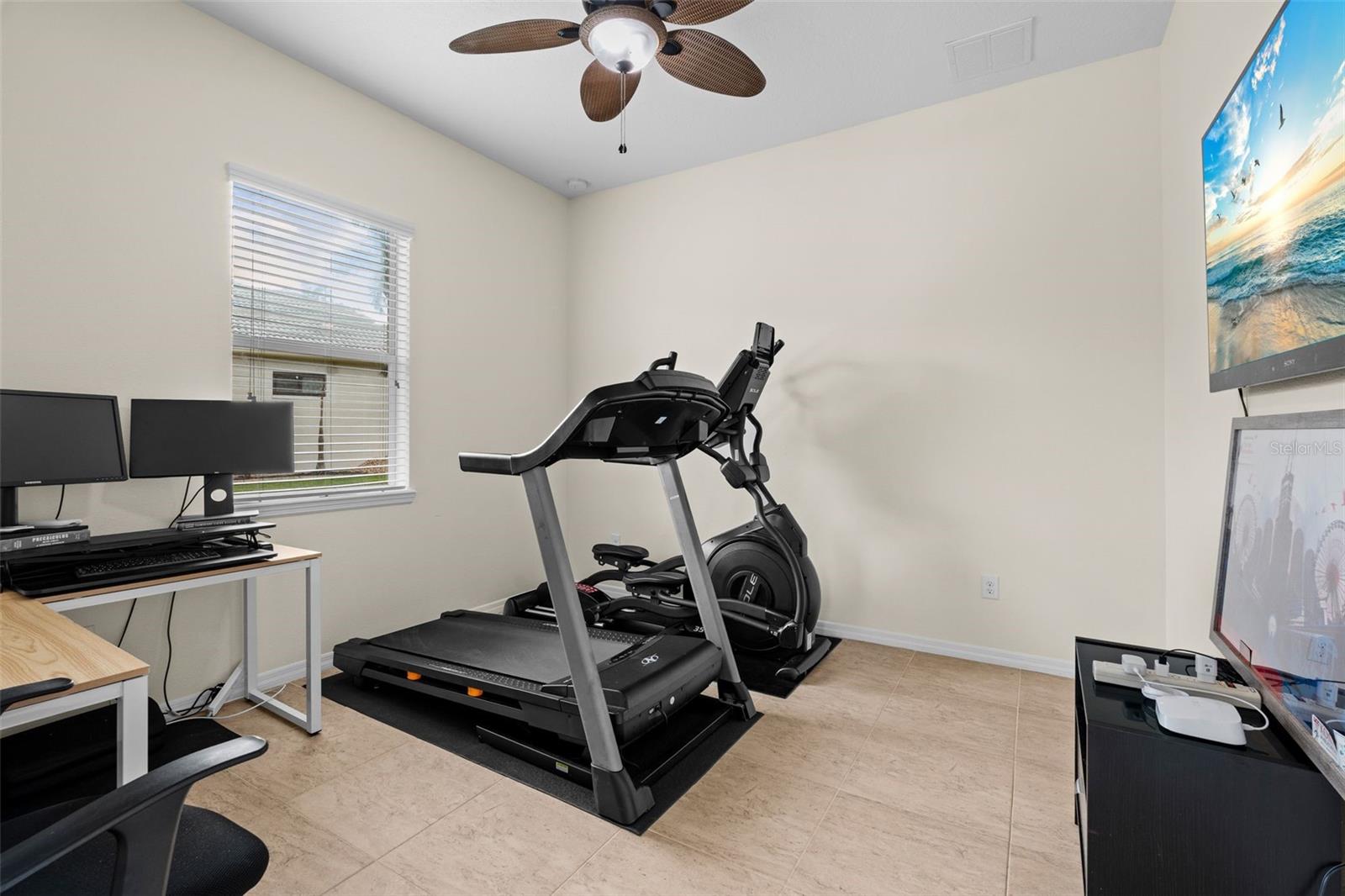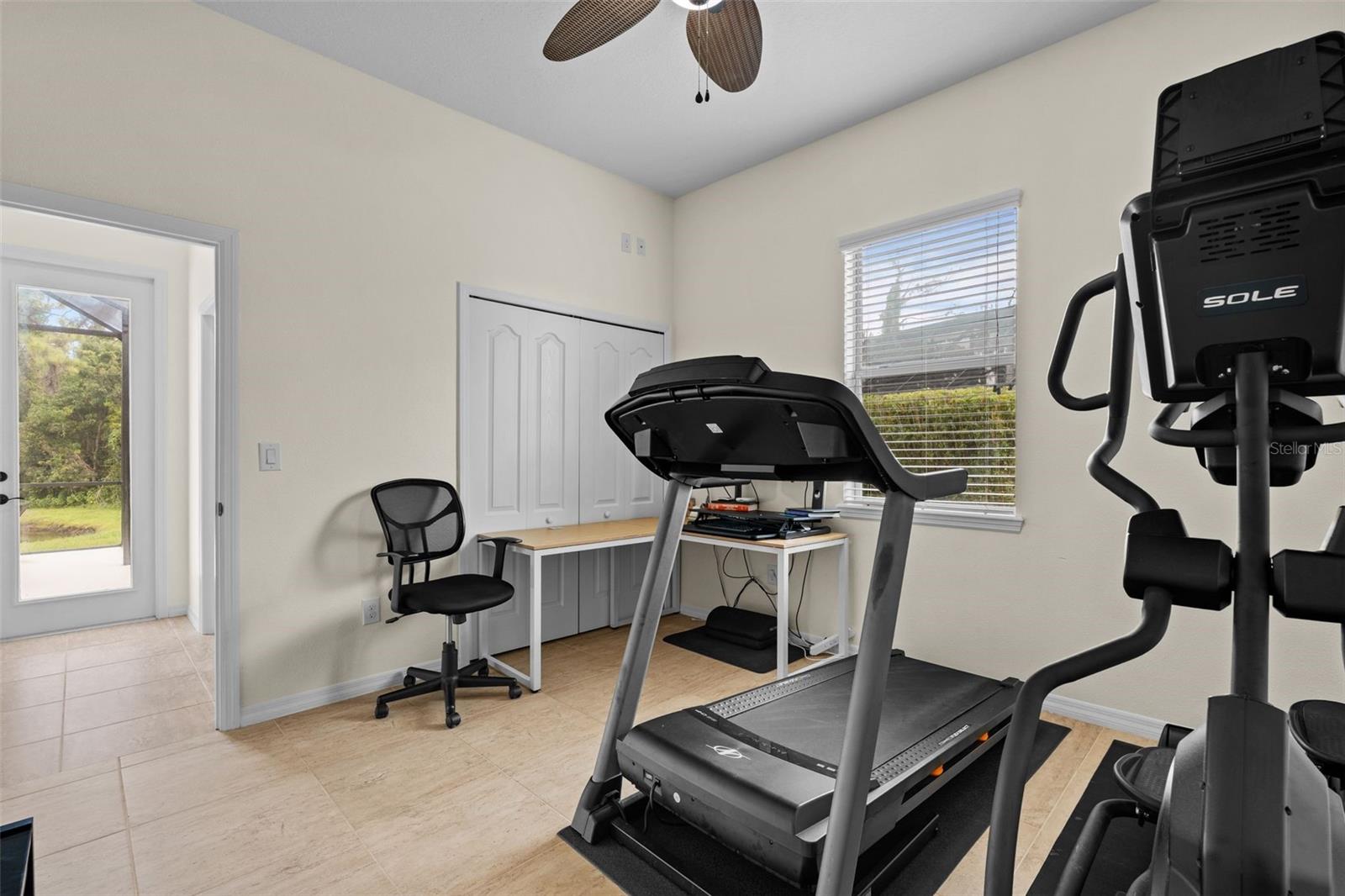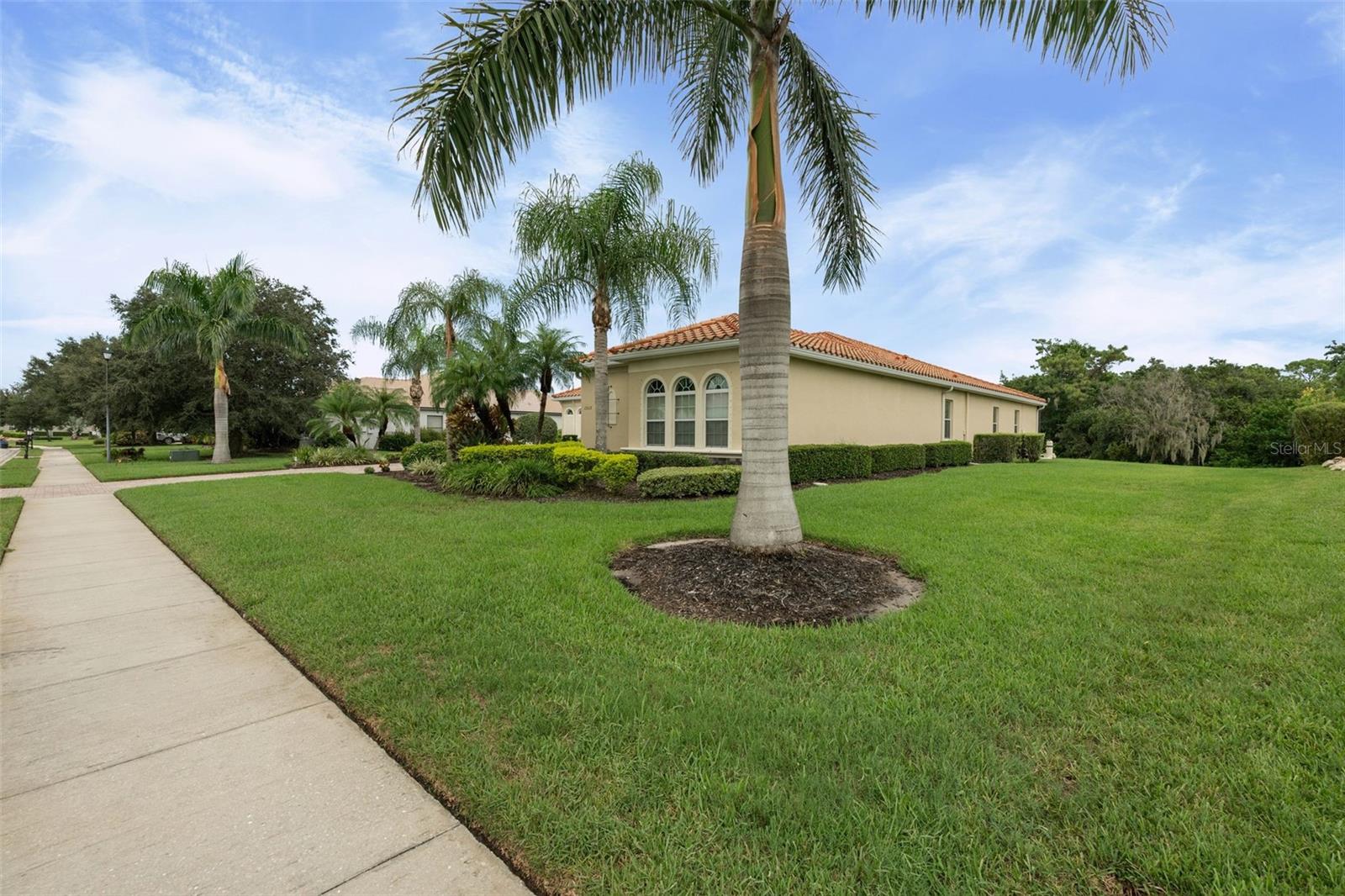 Exterior: Hurricane Shutters, Rain Gutters, Sidewalk, Sliding Doors