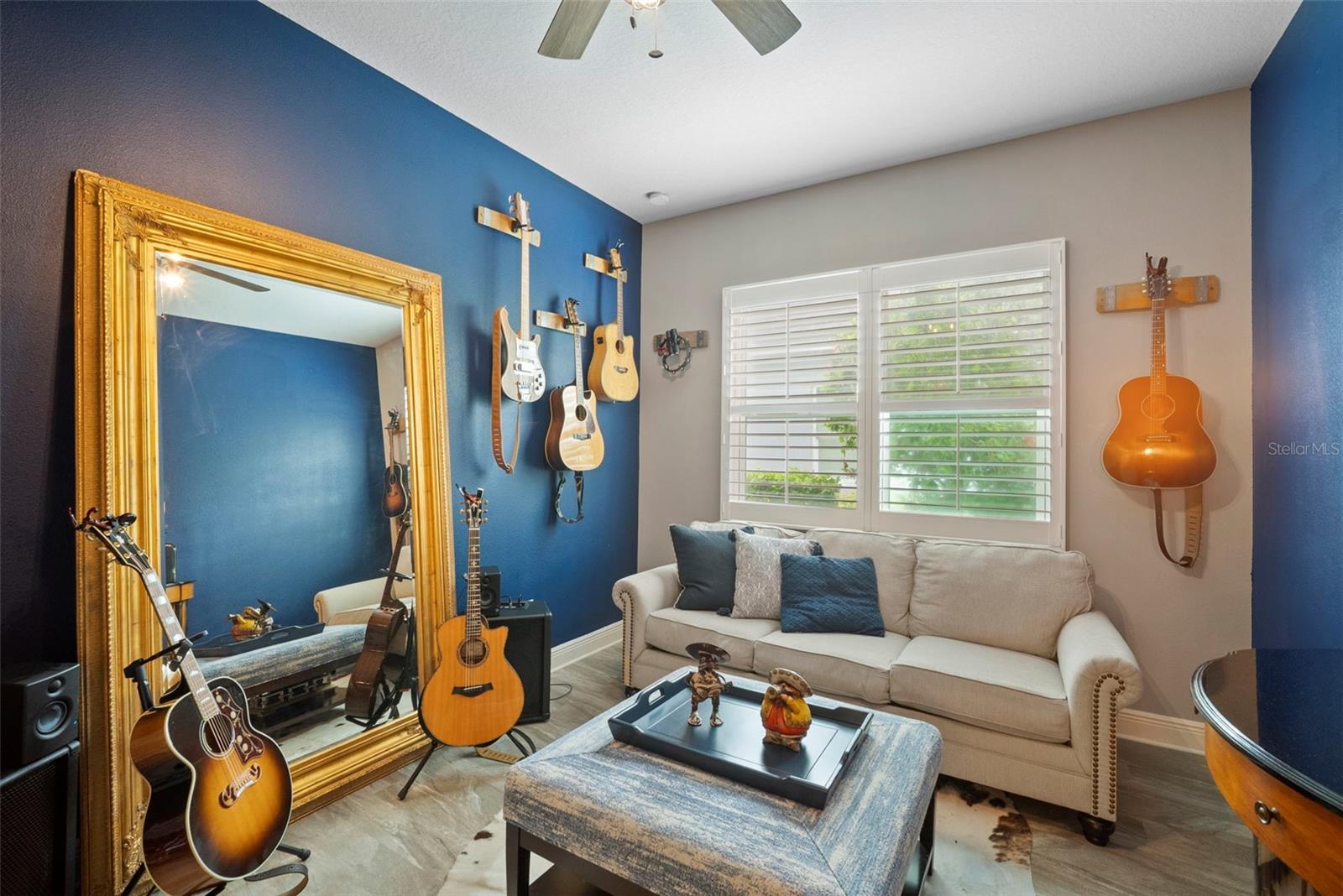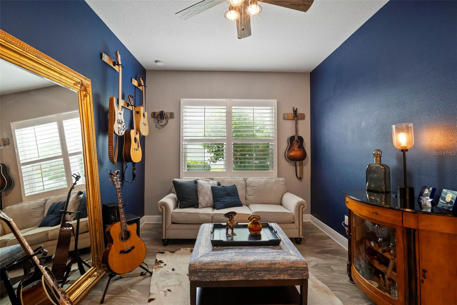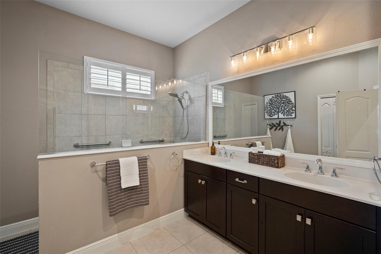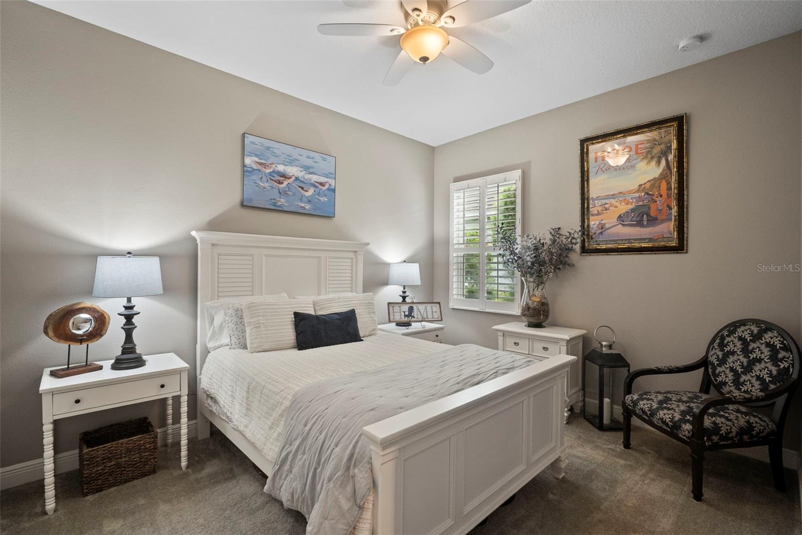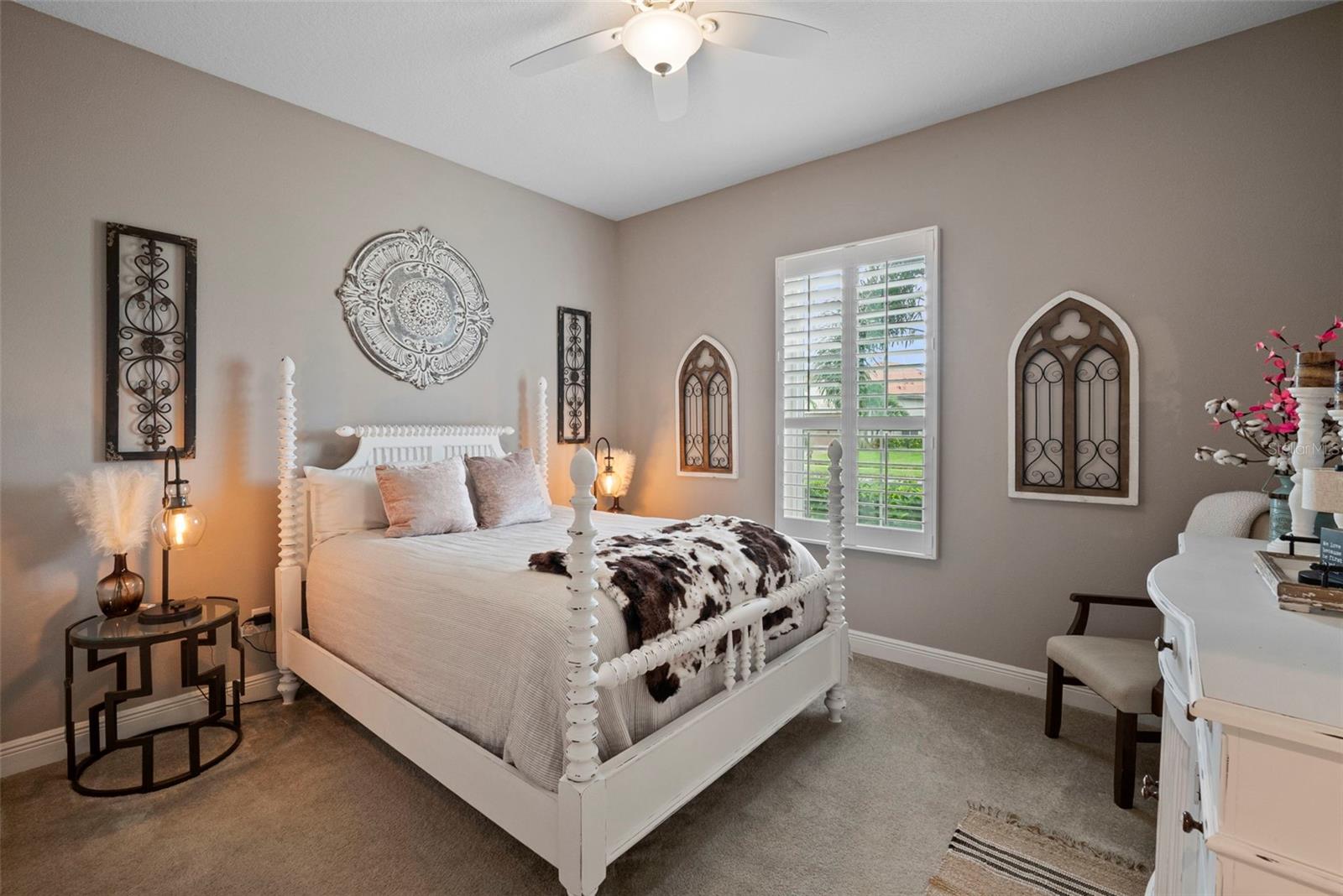 Exterior: Hurricane Shutters, Rain Gutters, Sidewalk, Sliding Doors