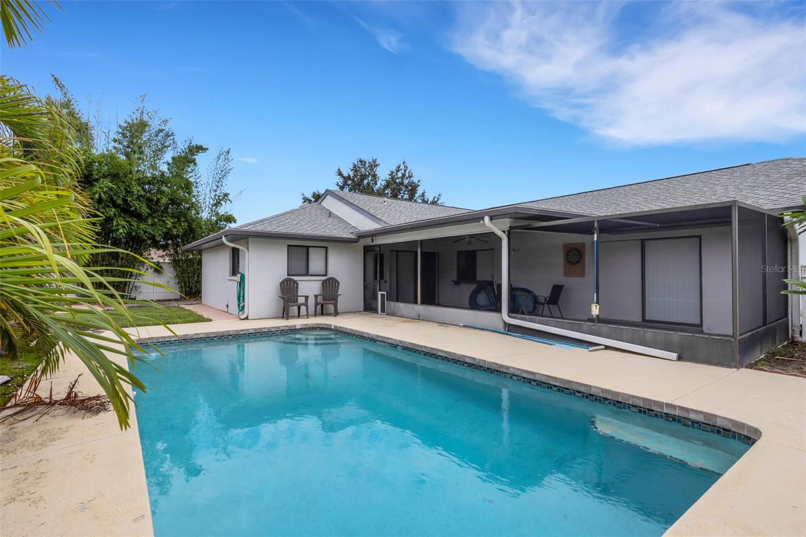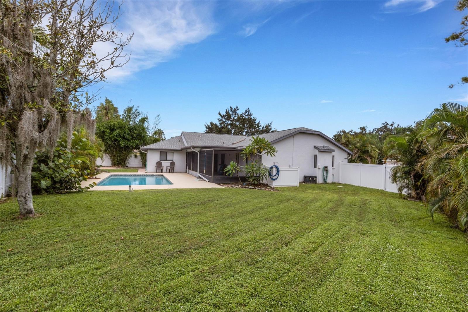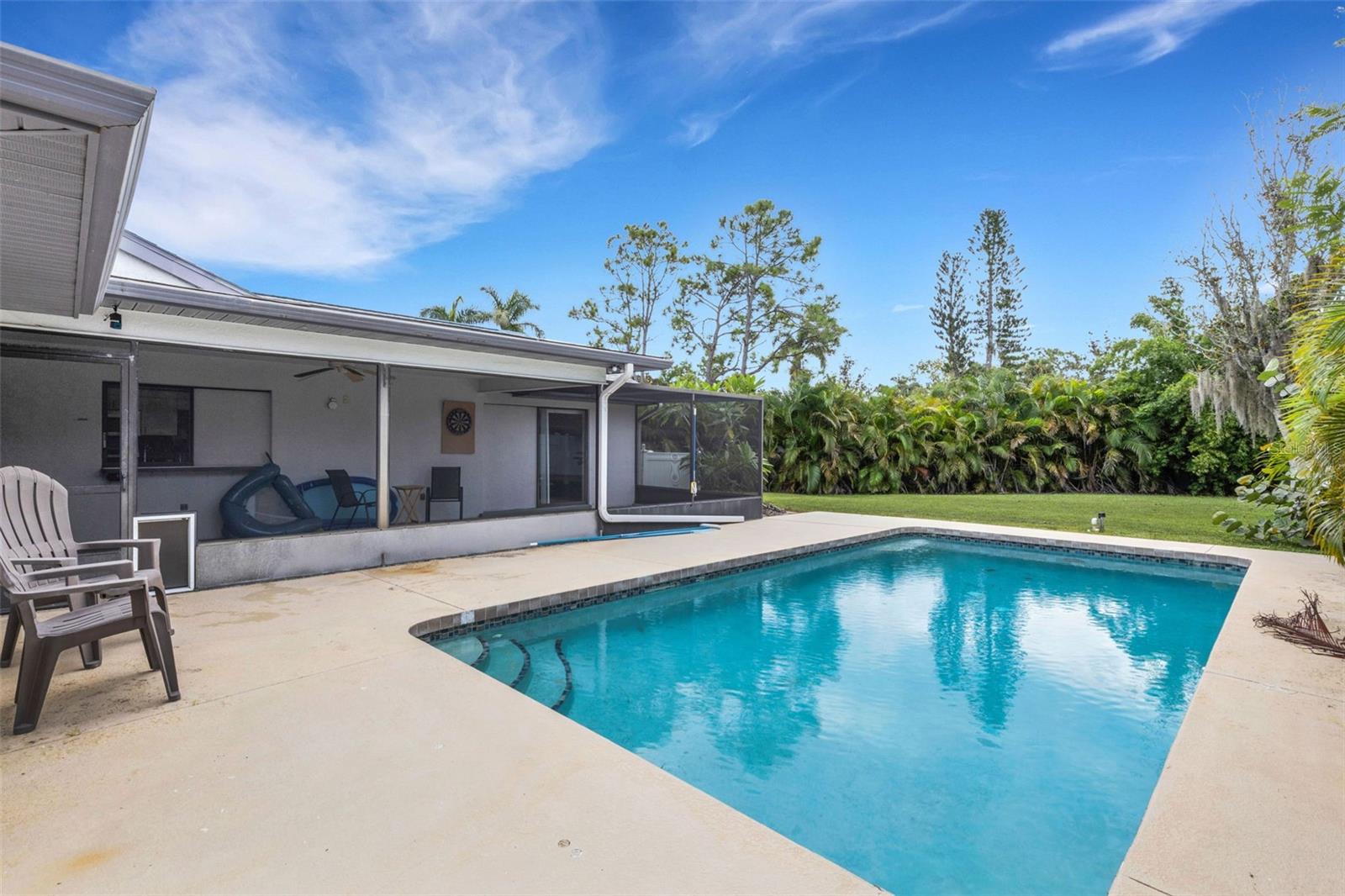 Amazing price! Perfect location! Incredible sparkling pool home with a fully fenced oversized lot! This rare yard features a 14x24ft pool and paver fire pit for unlimited fun. The side lawn area is big enough for boat or trailor storage (have to be hidden by fence or vegetation). 1669 sq ft, 3 bedrooms, walk-in closets, 2 full baths (one doubles as pool bath), desirable split floor plan, some vaulted ceilings, tile floors throughout, sunny skylight in the kitchen, large living room/dining room as well as a spacious family room with natural fireplace. Sweet lanai, kitchen pass through window for maximum entertaining ease. Impressive home or seasonal retreat. 2017 Roof. 2018 HVAC. 2 car attached garage. Zone x! Close to 301, 41 and 275. Easy Tampa or St Pete commute. Schools and golf courses nearby. Low HOA fee. Relaxed rental rules too. Must see!