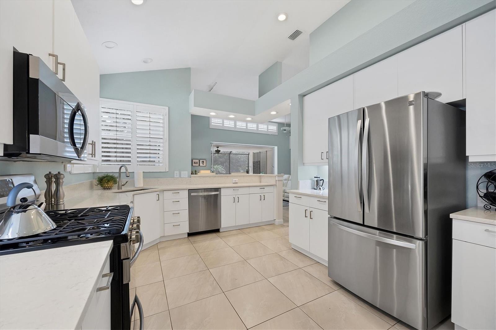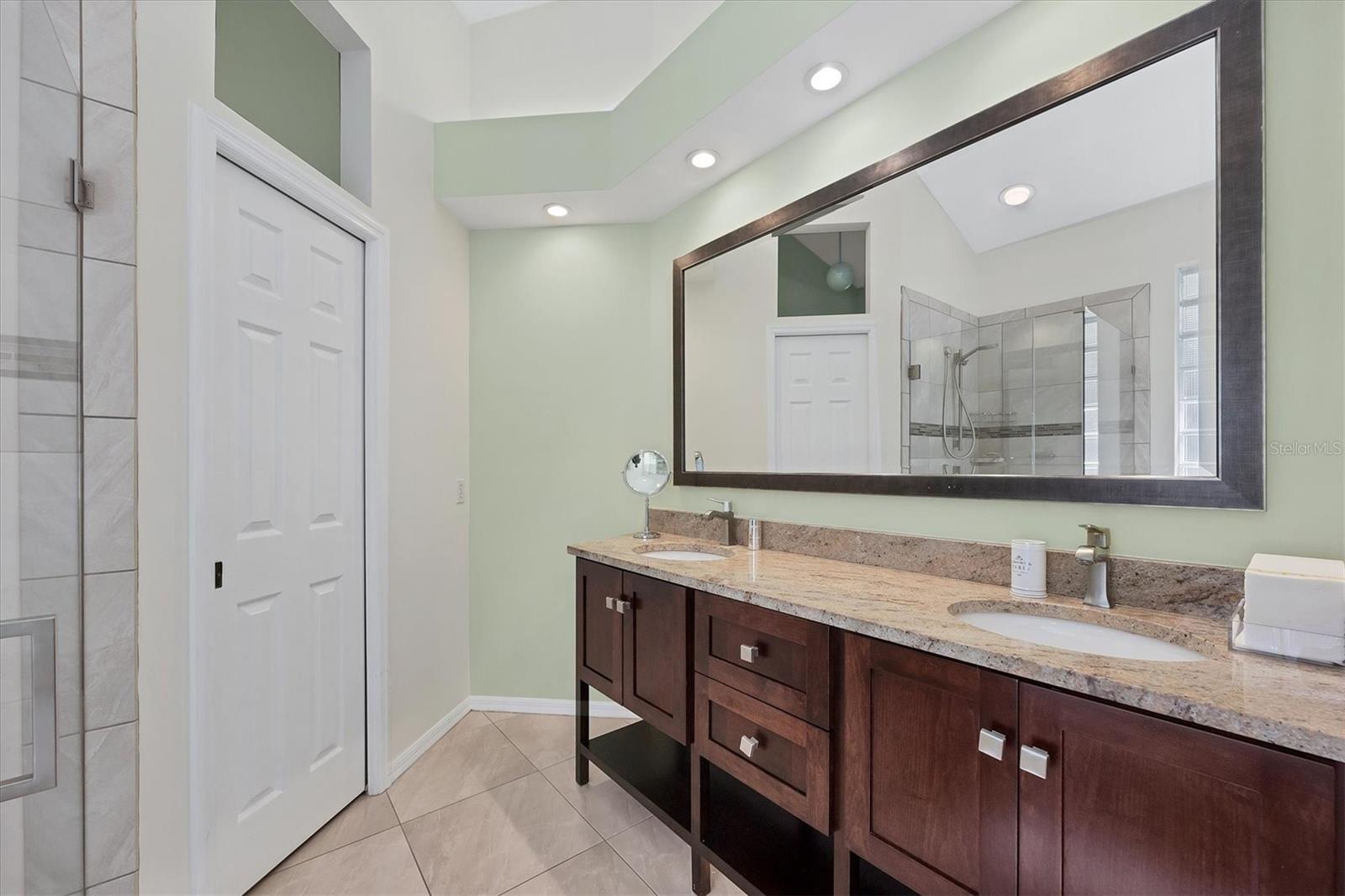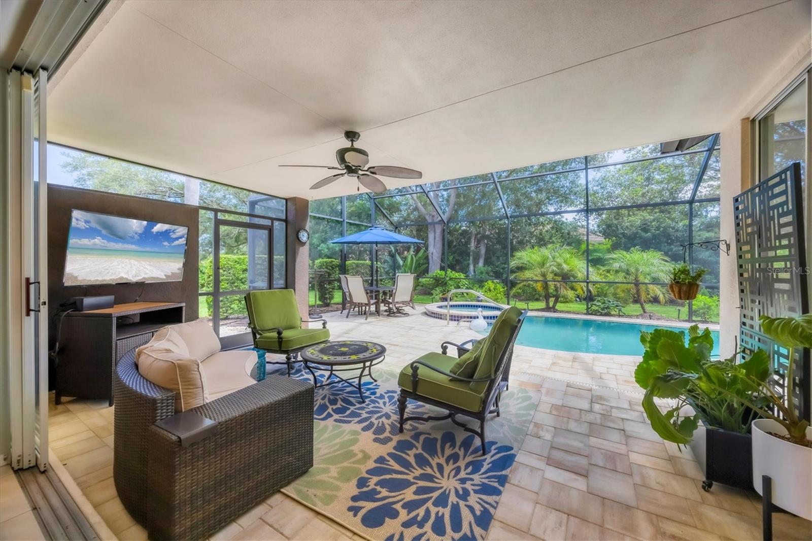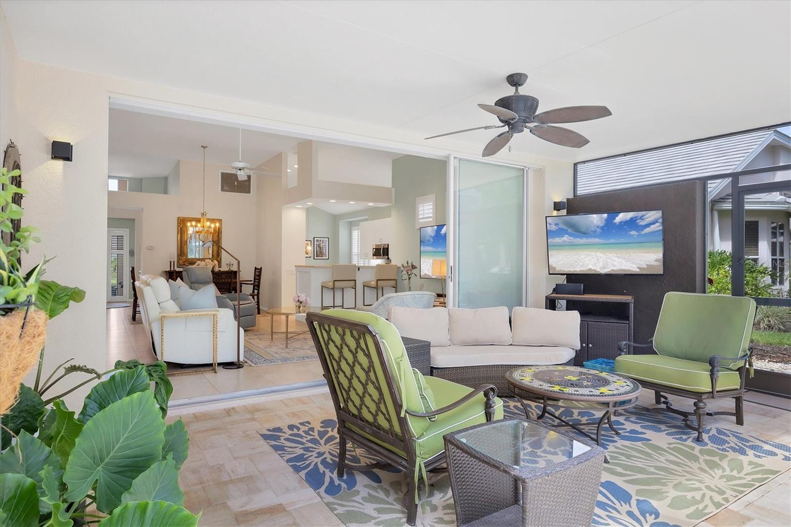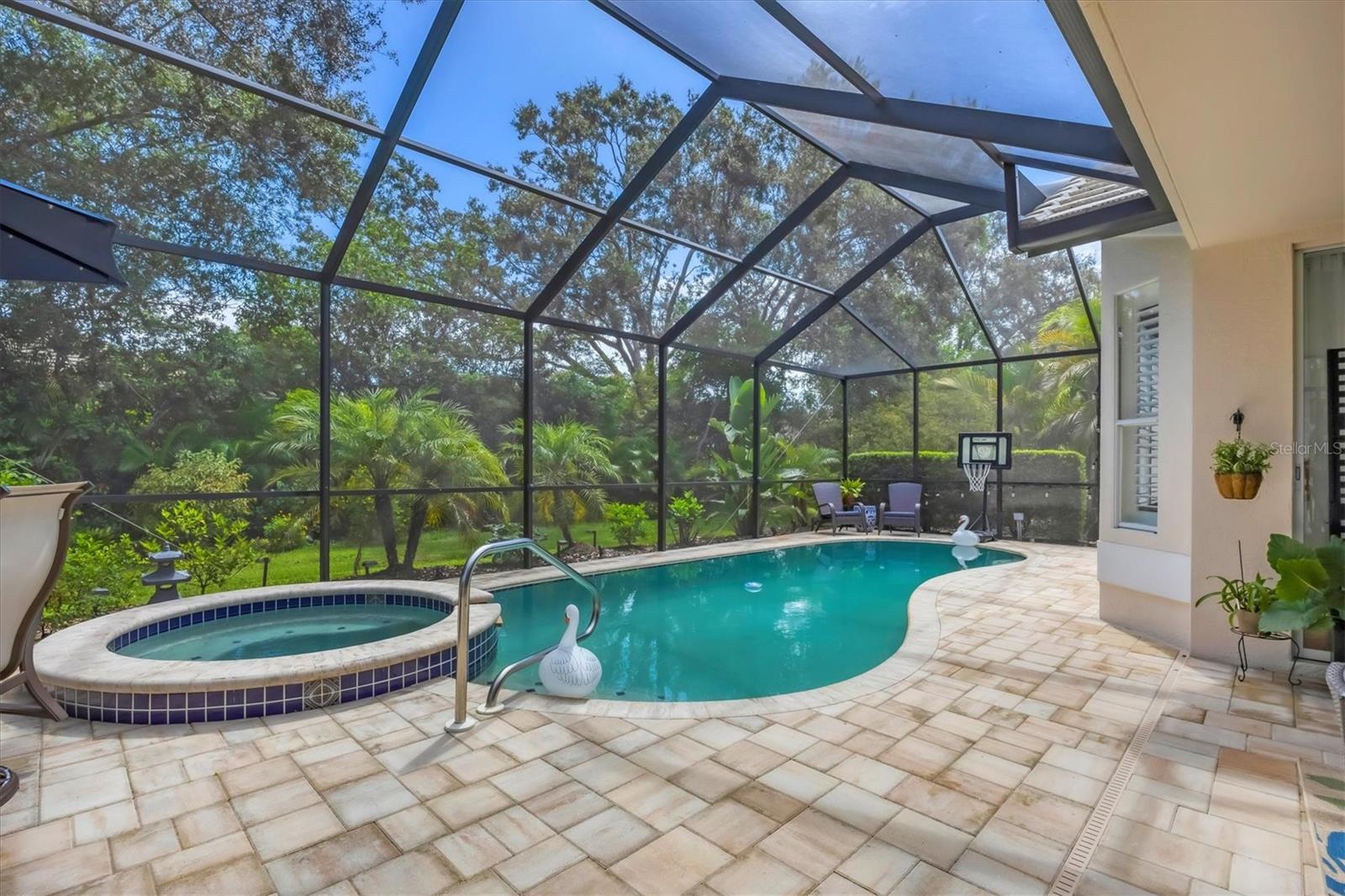 NEW AC (2021) Welcome to this exquisite residence, perfectly nestled on a quiet cul-de-sac in the prestigious University Park. Designed for the buyer seeking a private, resort-style retreat, this home offers a seamless blend of sophistication, comfort, and maintenance-free living. This beautifully maintained home features an open-concept floor plan with a desirable split-bedroom layout that ensures privacy and spacious living. The grand open great room flows effortlessly onto the expansive screened lanai, creating an ideal space for both entertaining and peaceful outdoor relaxation. Step outside to your private caged, heated pool and spa, beautifully finished with Pebble Tec, offering a serene, resort-inspired experience. The outdoor retreat provides ample space for lounging, dining, and enjoying the Florida lifestyle. The chef's kitchen is thoughtfully designed with granite countertops, under-cabinet LED lighting, and a bright breakfast nook surrounded by garden views. Recent updates include a new stove, refrigerator, and dishwasher, combining style and modern convenience. The owner's suite is a true sanctuary, featuring oak flooring, a large custom walk-in closet, and a fully renovated bath with a new soaking tub, glass-enclosed shower, dual vanities, and tasteful designer finishes. The second bedroom, accented by French doors, is currently used as a light-filled office with two generous closets, offering versatility for a variety of needs. The additional guest suites are equally welcoming, with a renovated bath that features modern vanities and soft under-cabinet lighting. A dedicated utility room with a built-in sink and an adjacent oversized storage area provides excellent functionality and organization. Surrounded by lush, maintenance-free landscaping, this home offers a truly effortless lifestyle. A short walk leads to the exclusive Hampton Green community pool, where residents can relax or socialize in a tranquil setting. This exceptional property offers a rare opportunity to enjoy timeless elegance, complete privacy, and a relaxed, resort-inspired lifestyle. Location: University Park Country Club With its mature landscape and sprawling natural beauty, University Park is the premier master-planned community in the Sarasota area. Behind the secured, staffed entrance is an award-winning, resident-owned community featuring 27 holes of four-star rated golf, eleven lighted Har-Tru tennis courts, four pickleball courts, a fitness center, croquet, miles of tree-lined streets for walking or biking, and first-class dining. The community also offers numerous social activities and clubs designed to fit a variety of interests. Located just four miles from downtown Sarasota and its vibrant arts scene, museums, shopping, dining, and first-class healthcare, University Park provides an oasis from the city while keeping all its amenities within easy reach. A short 15-minute drive to the international airport and a 30-minute drive to some of America's finest beaches, superb outdoor recreation areas--including the internationally renowned Nathan Benderson Park--the famed Ringling Museum, various boating options, and the acclaimed St. Armands Circle. Less than five minutes away from UTC luxury shopping and dining, University Park's breathtaking beauty is unmatched by any other, offering a rare opportunity to own a home in one of Sarasota's most coveted communities