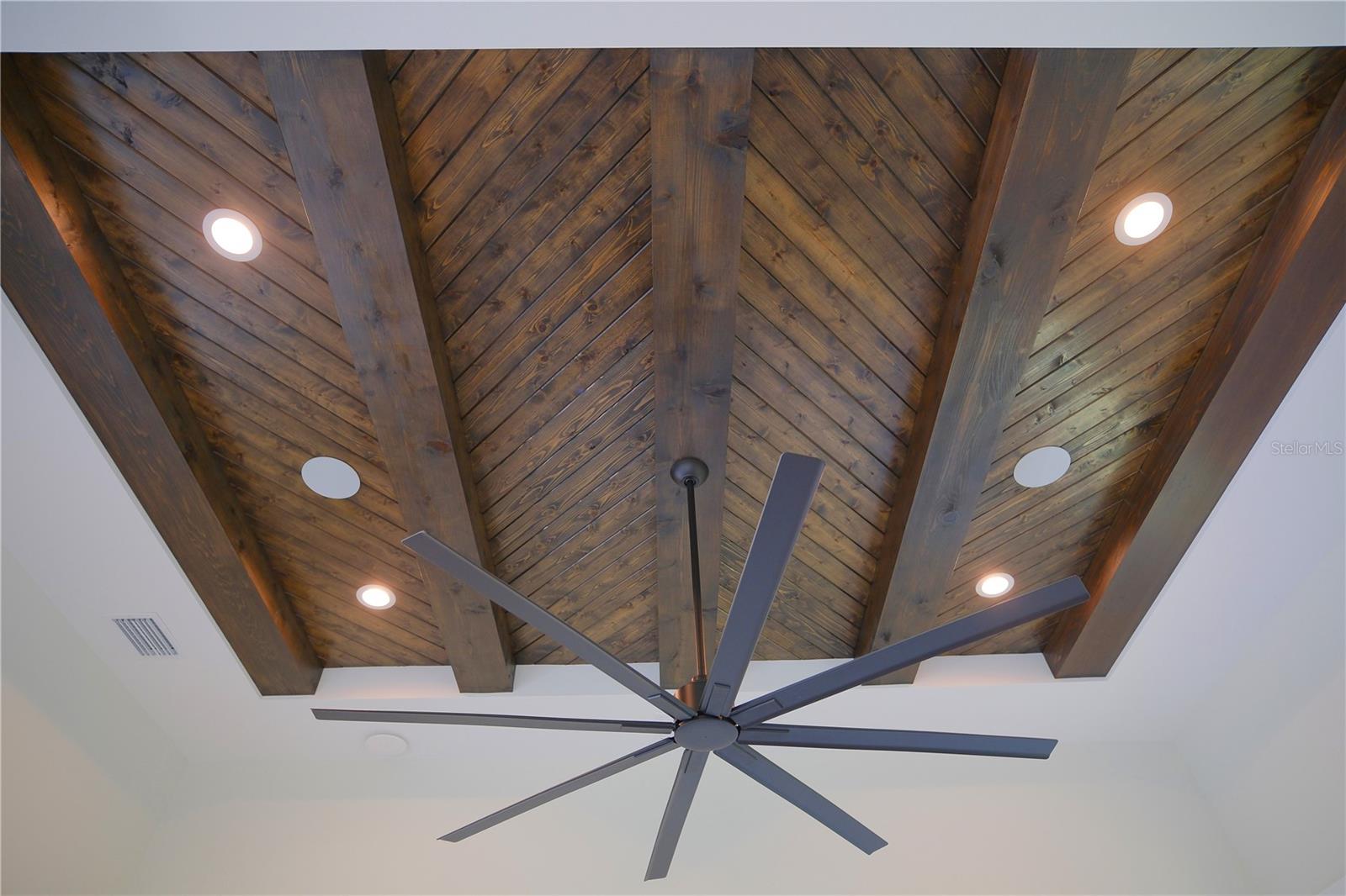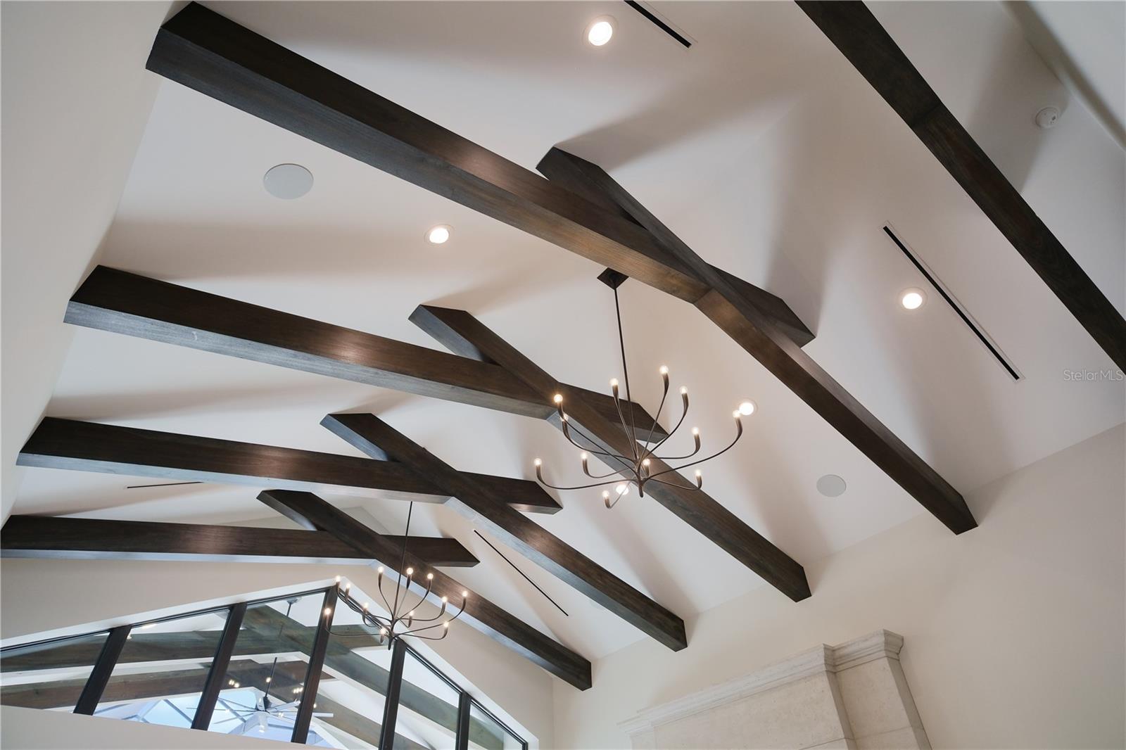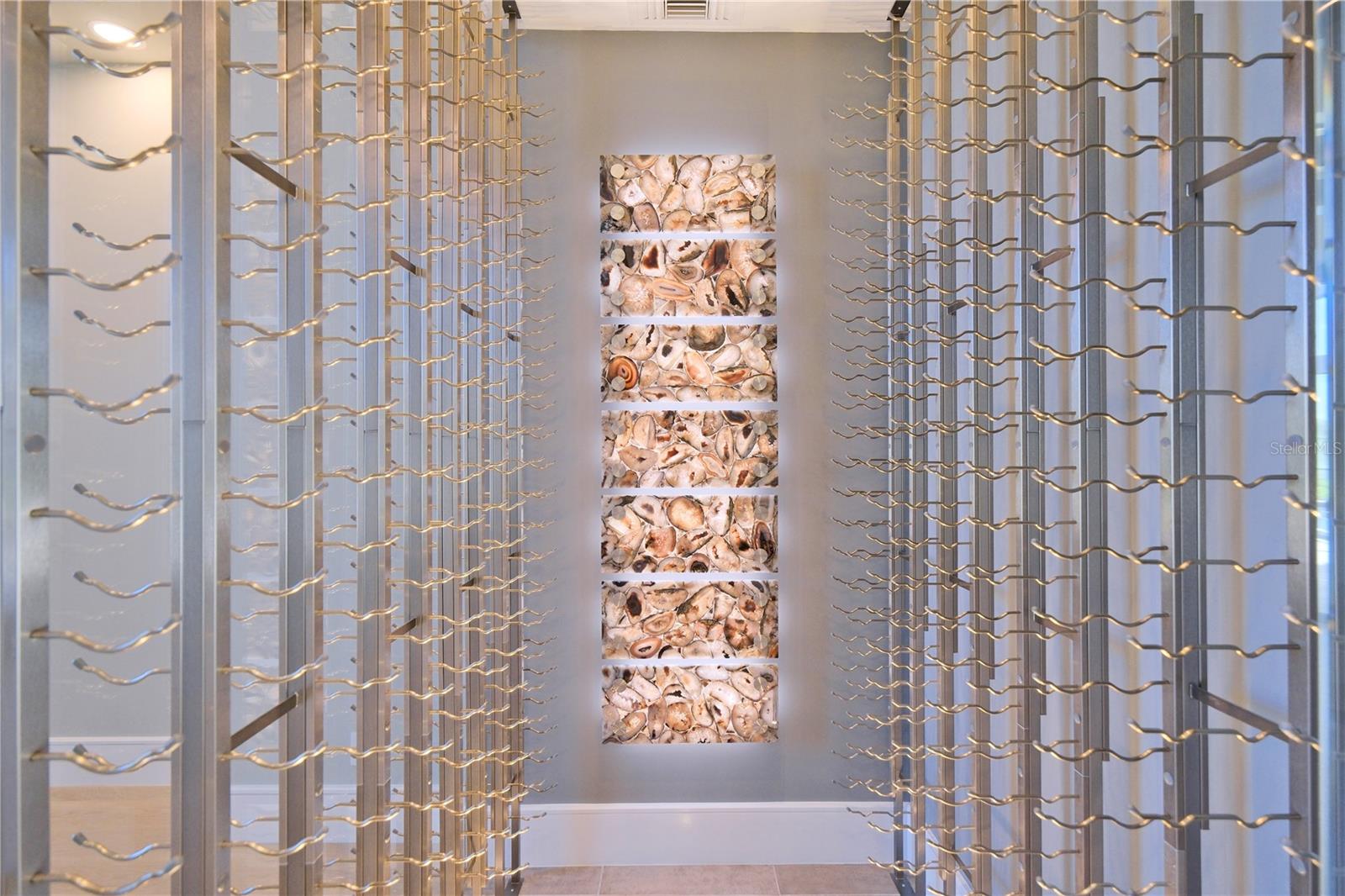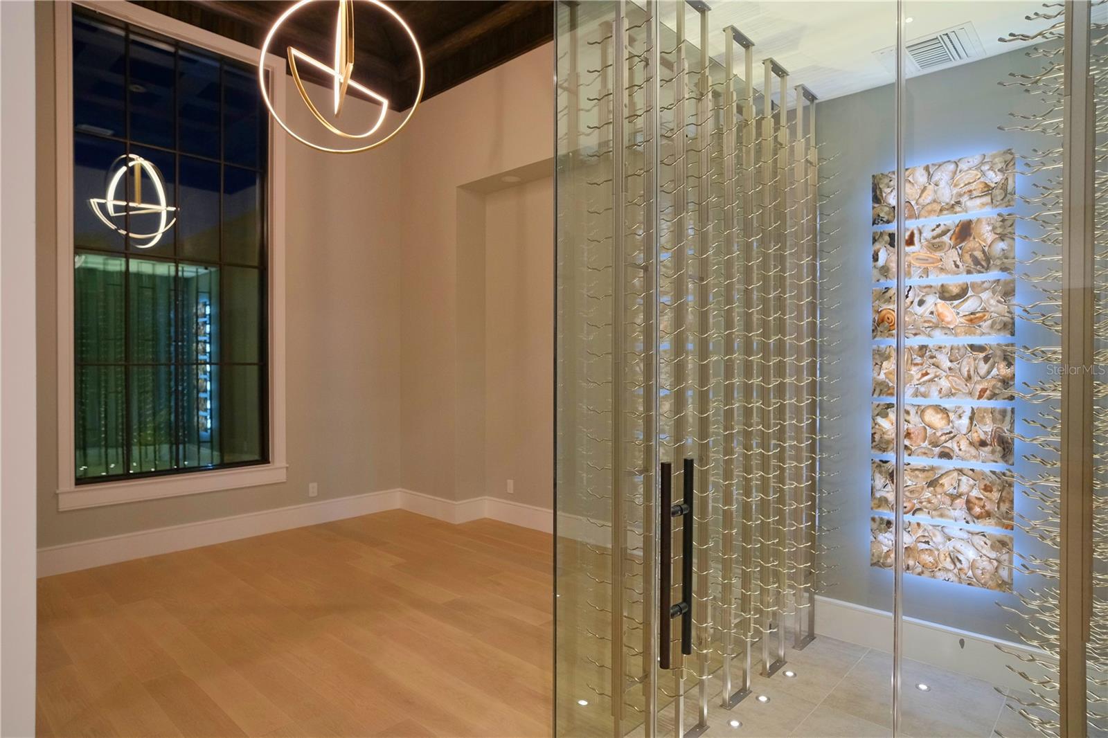 Transitional West Indies Custom Home by John Cannon Homes.Experience the perfect blend of West Indies architecture with contemporary influences in this brand-new, never occupied custom residence. From the moment you arrive, huge tandem windows, a striking 10-foot custom iron entry door and a symmetrical faade draw your eyes straight through to the breathtaking rear views. Inside, the cathedral ceilings with scissor beams in the great room flow seamlessly to the main lanai and through the expansive pool enclosure. 10-foot accordion stacking doors topped with transom windows open the home to true indoor-outdoor living. A gas fireplace with cultured stone surround and mantle creates a warm focal point, while a climate-controlled wine room with illuminated agate stone panels adds an element of artistry. The home offers both a primary kitchen and a chef's prep kitchen, each outfitted with high-end appliances. Natural light floods the space through an interior/exterior window and skylights. Two secondary bedrooms each feature en suite baths and walk-in closets. A versatile bonus room includes a disappearing corner door to extend entertaining space to the outdoors. In the owner's wing, you'll find dual owner's baths and closets--each closet with LED pin lighting and custom built-in cabinetry. A private owner's courtyard with outdoor shower and composite decking creates a resort-like retreat.The rear lanai is fully equipped with an outdoor kitchen and island, overlooking the stunning pool area enclosed by a clear-view screen and colonnade. The pool features shellock pavers, a large sun shelf with cascade bubbler, in-pool lounge chairs, and a floating fire pit with mirrored granite edges. The negative-edge spa with glass waterline tile completes the scene. This smart home comes pre-wired for electric window treatments, and includes an integrated camera system, home music, and more--delivering luxury, comfort, and technology in one extraordinary package.