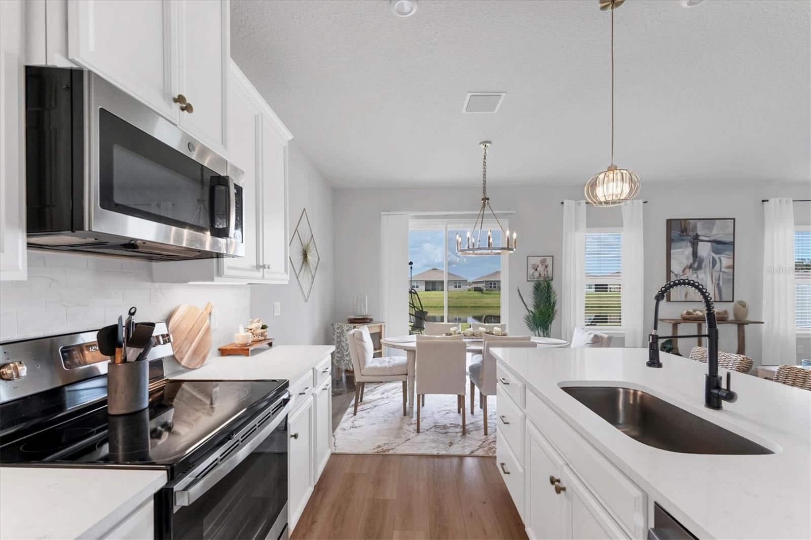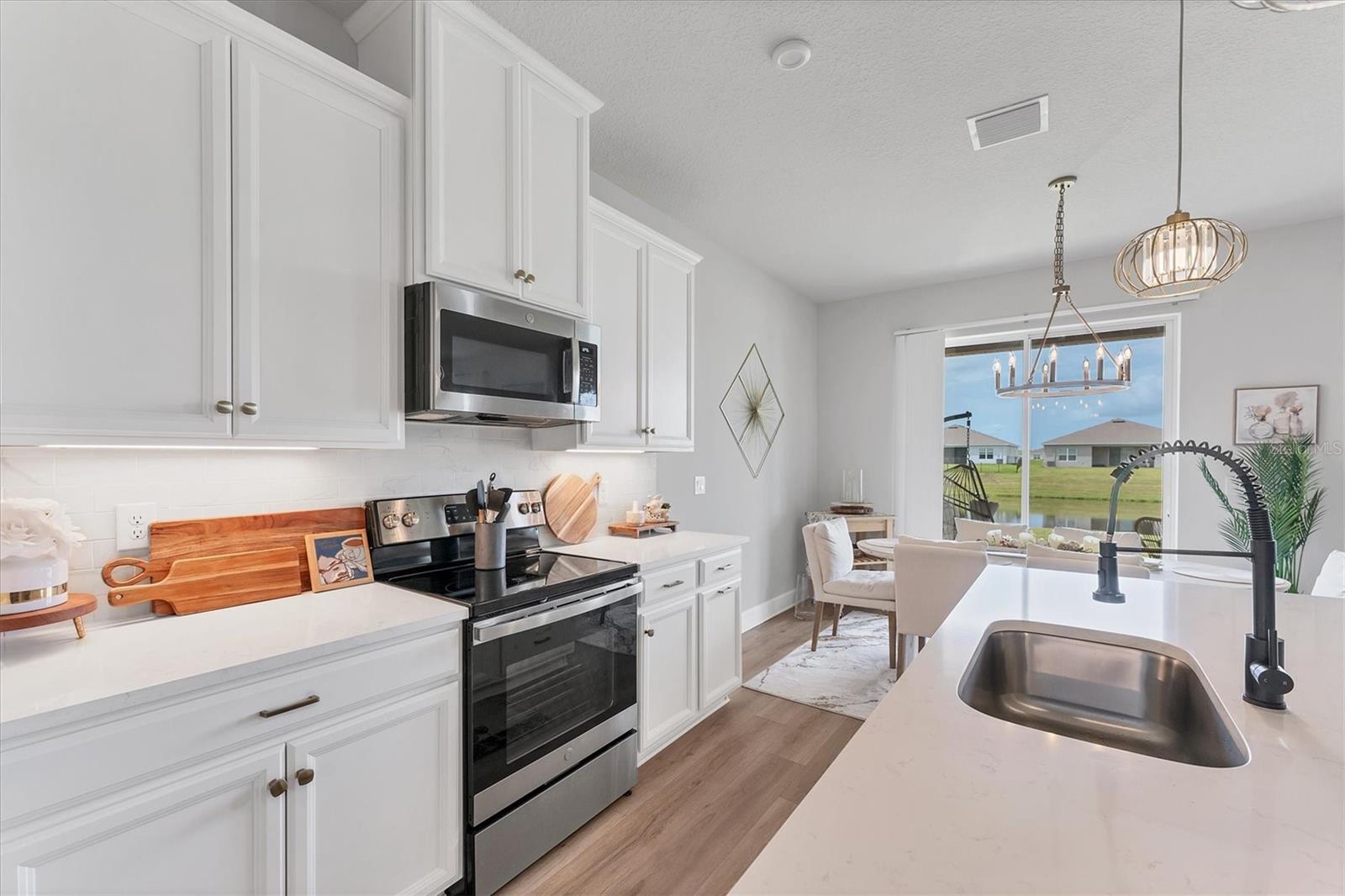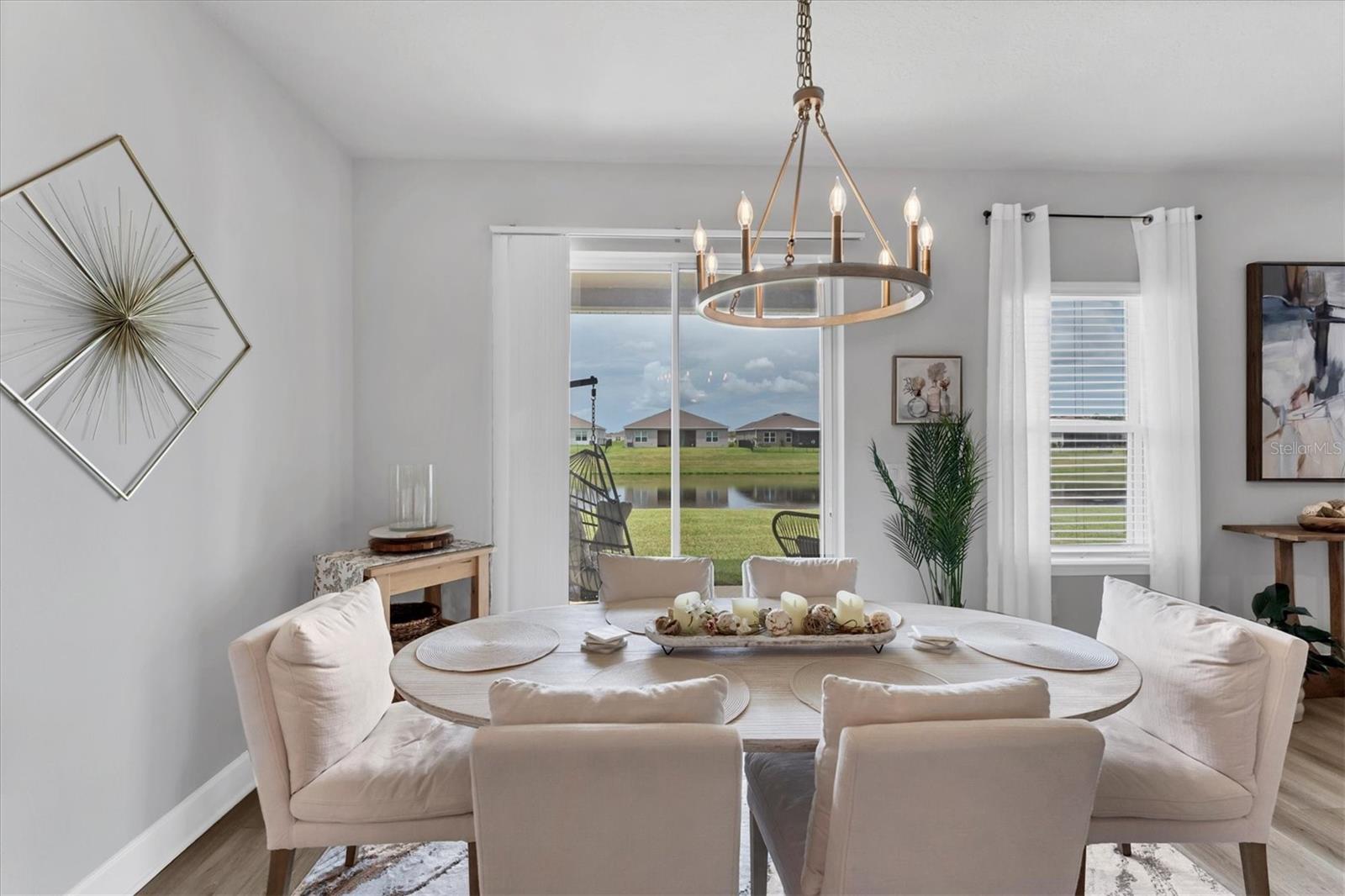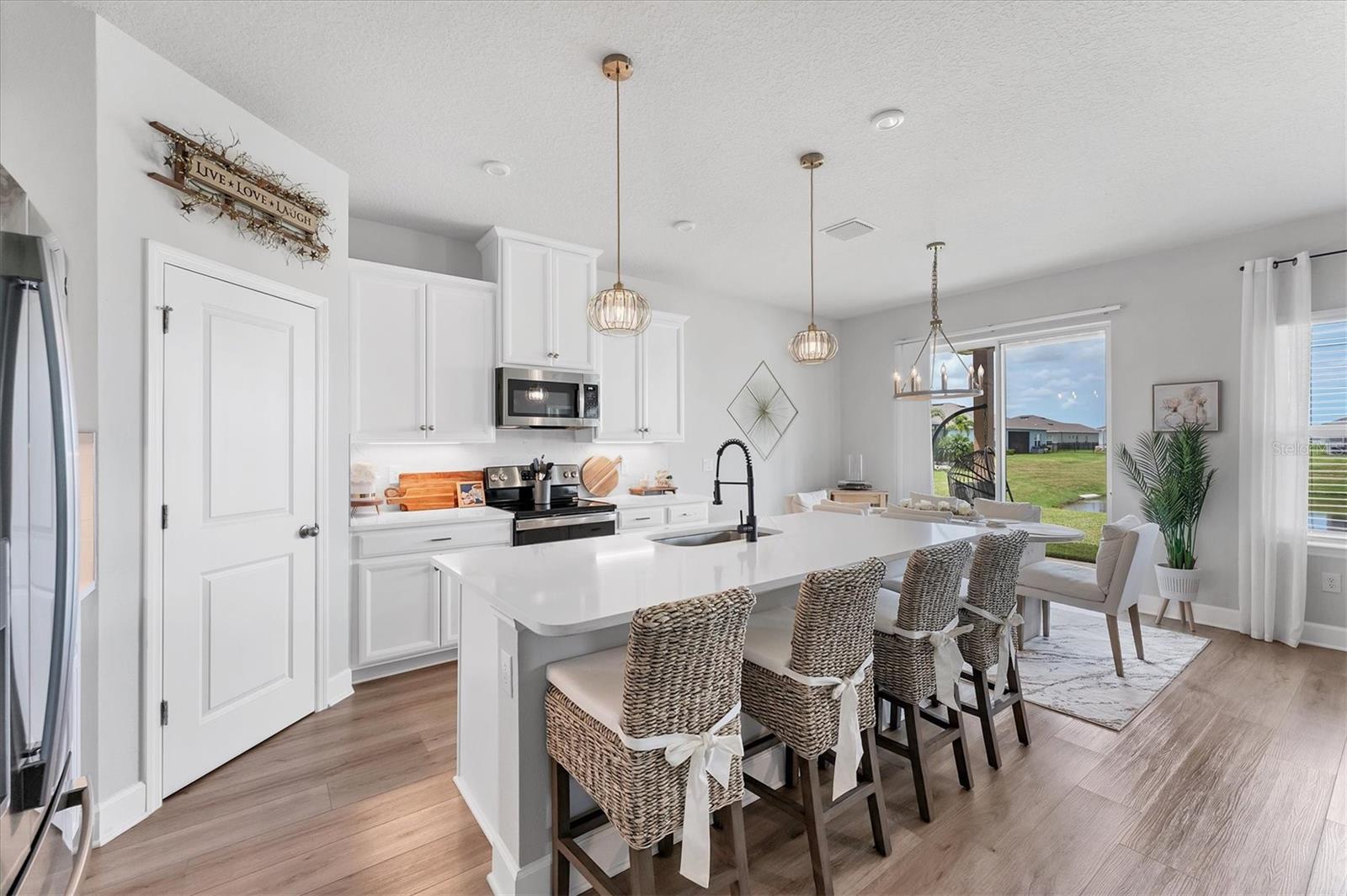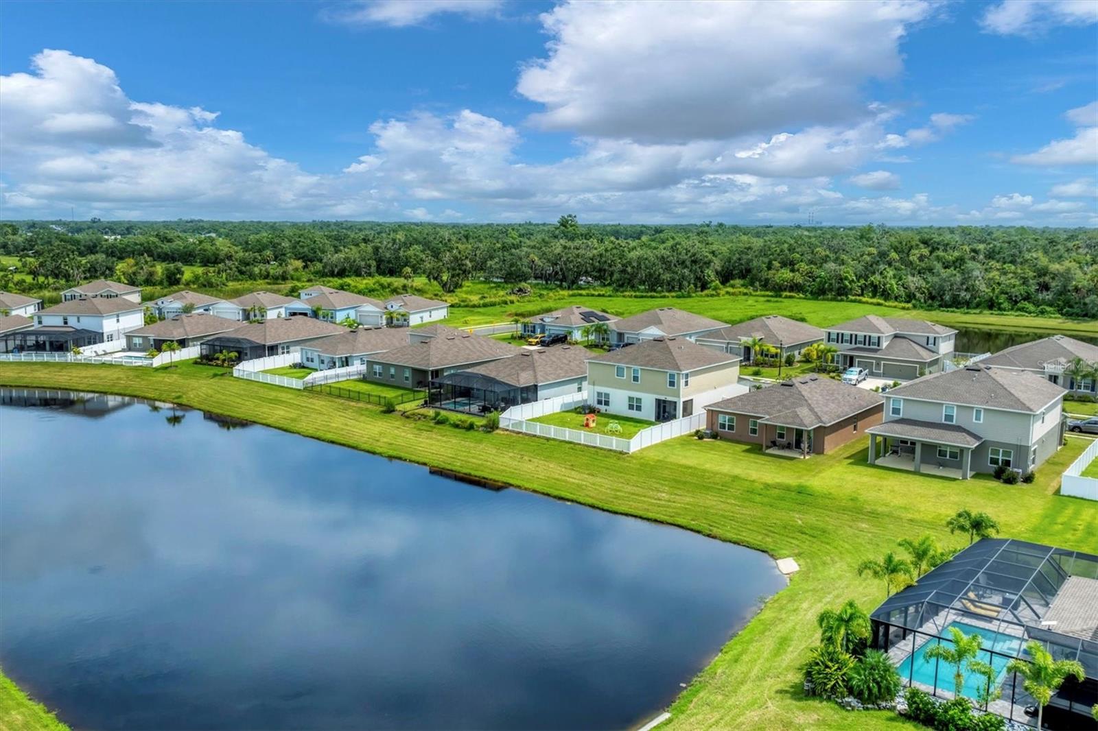 Nestled way back in the rear of the "Reserve" neighborhood of Willowbend, this Baymont floorplan boasts stunning finishes chosen from the builder's top-tier selections. You'll welcome the peaceful, low traffic neighborhood but love how convenient everything is! Here's what stands out--OUTSIDE: the low-maintenance landscaping features curbing and stone. INSIDE: luxury vinyl plank flooring covers high-traffic areas for easy upkeep, with top-tier quartz countertops and durable wood cabinets. Plus, there are NO CDD fees and LOW HOA fees! Additional perks include a community pool, playground, and calming water views from the great room, dining area, and primary bedroom. Split bedrooms provide privacy for all and the owner is even open to selling some furniture outside of the contract. Conveniently located in Parrish near Publix, Aldi, Lowe's, and Home Goods, with easy access to I-75 and 275 for hassle-free travel.