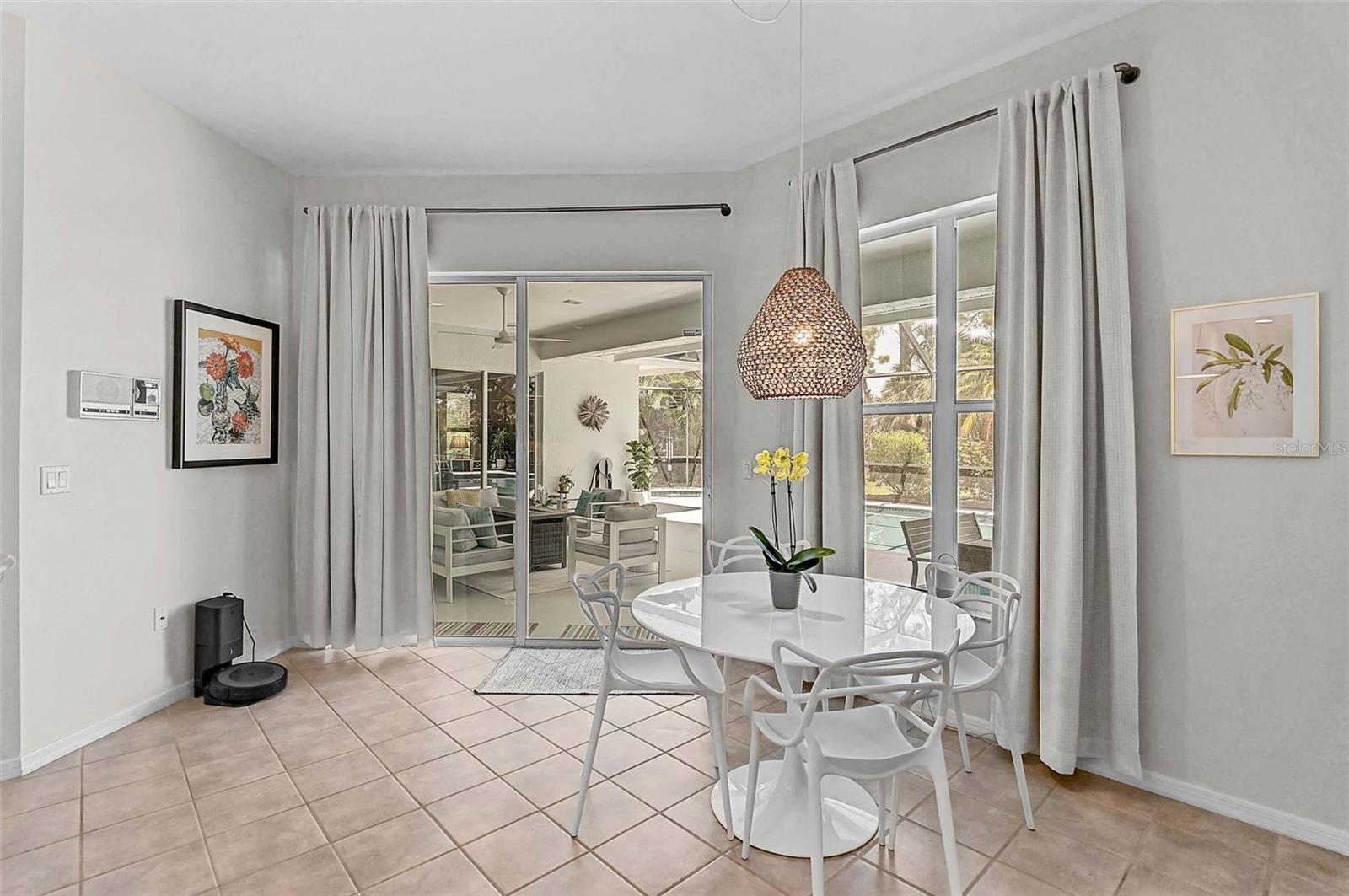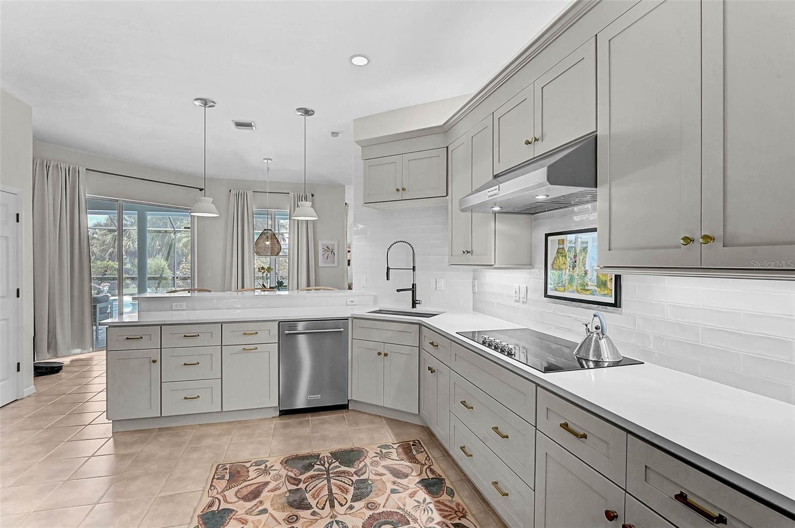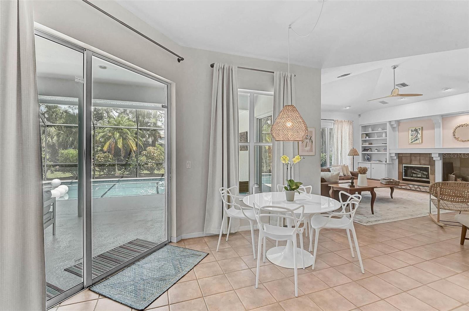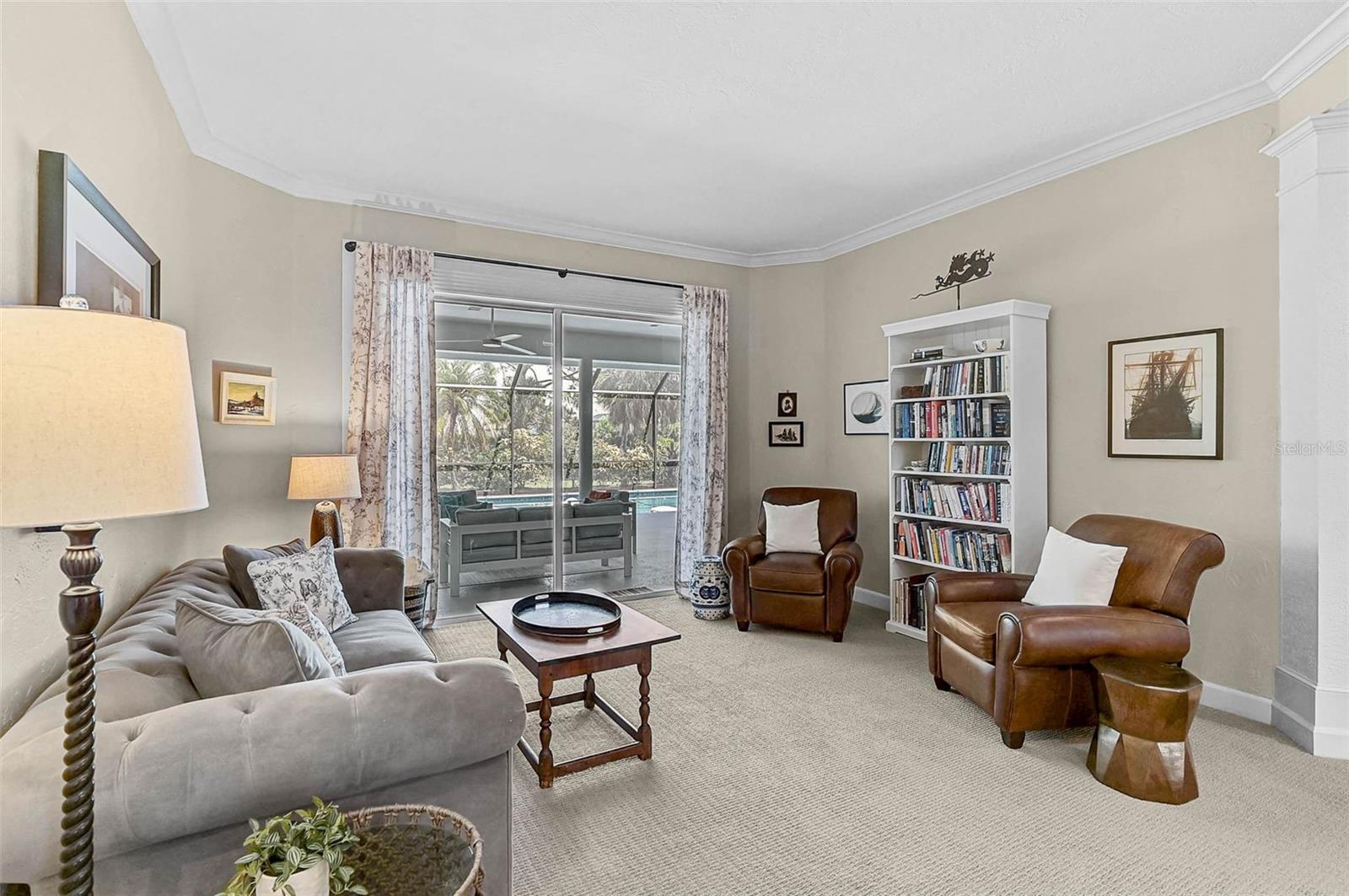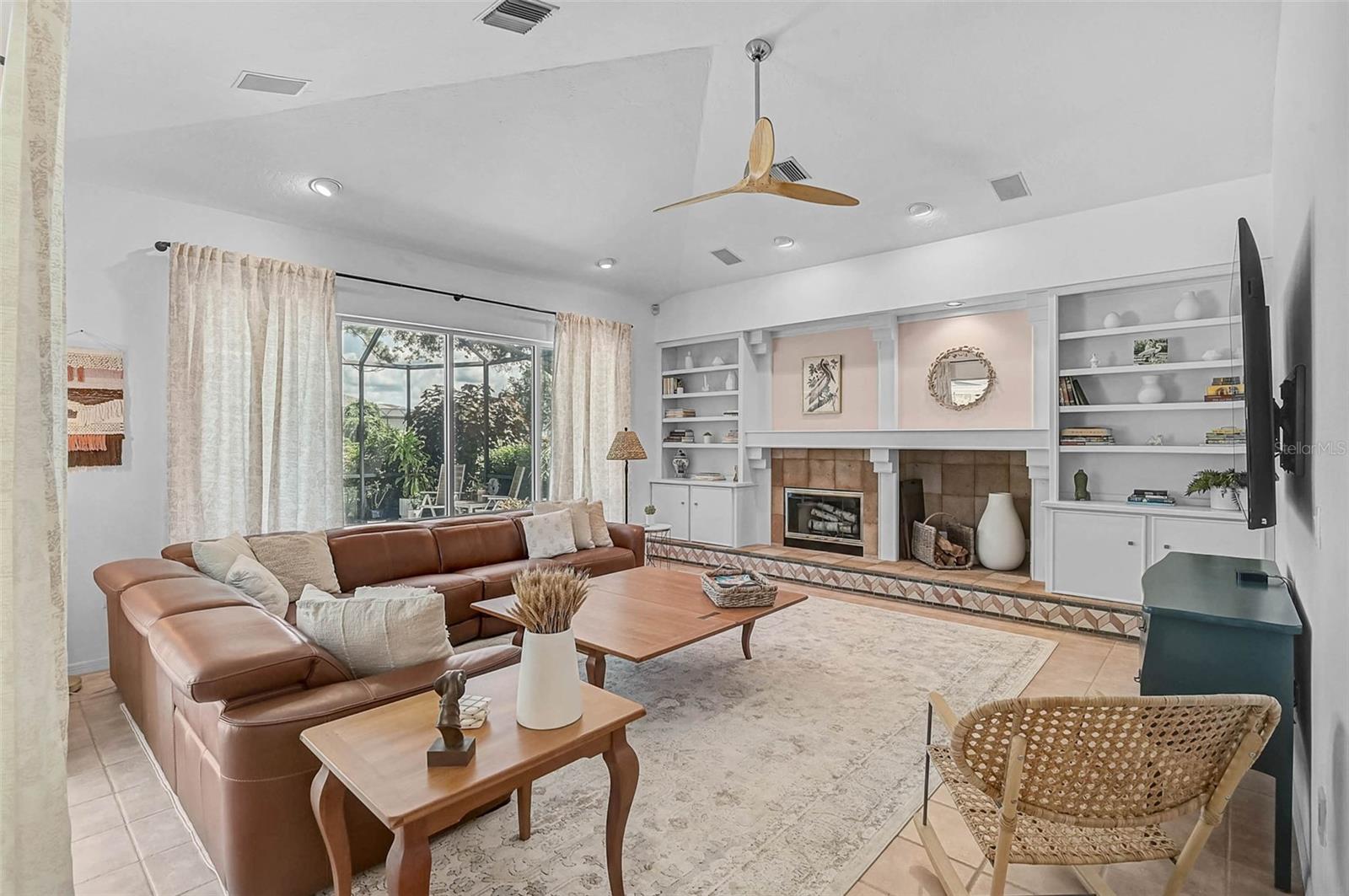 Step into Florida living with this exquisite home, offering over 3,000 square feet of beautifully appointed space, including three spacious bedrooms, three full baths and a dedicated office. Nestled within a serene, gated community, this sophisticated residence was enhanced with a BRAND NEW ROOF in 2024 and has been thoughtfully updated to balance modern luxury with everyday comfort. The heart of the home is a stunning, fully remodeled chef's kitchen featuring gleaming quartz countertops, bright custom cabinetry, stainless steel appliances including a wine refrigerator, built-in microwave, and wall oven. Seamlessly flowing into the grand family room, the space is elevated by soaring cathedral ceilings, elegant built-in cabinetry, and a classic wood-burning fireplace--perfect for both intimate evenings and lively gatherings. Entertain effortlessly in the open dining area or host guests in the separate formal living room, both designed for timeless celebrations. The expansive primary suite, privately situated on its own wing, offers a tranquil retreat with a large walk-in closet and spa-inspired en-suite bath. Step outside to a resort-style backyard sanctuary, where a resurfaced Pebble-Sheen, heated (2019 pool heater), oversized 20' x 43' pool and separate spa await, all enclosed within a newly updated screened lanai featuring fresh paint, new bolts, and screens for peace of mind and year-round enjoyment. Additional premium features include two newer (2019) air conditioning units, two hot water heaters, hurricane fabric protection, new gutters and soffits, and garage storage solutions in the extra deep, oversized garage. Oversized lot could possibly support an additional expansion. Golf membership in not mandatory coupled with NO CDD fee and a low $327 quarterly HOA fee, makes this the ideal community. With exclusive back-gate access for residents only, you're minutes from the new Sarasota Memorial Hospital, major highways, upscale shopping, fine dining, and world-renowned Gulf Coast beaches. This is the hidden gem where luxury, comfort, and convenience come together--offering a lifestyle beyond compare.
