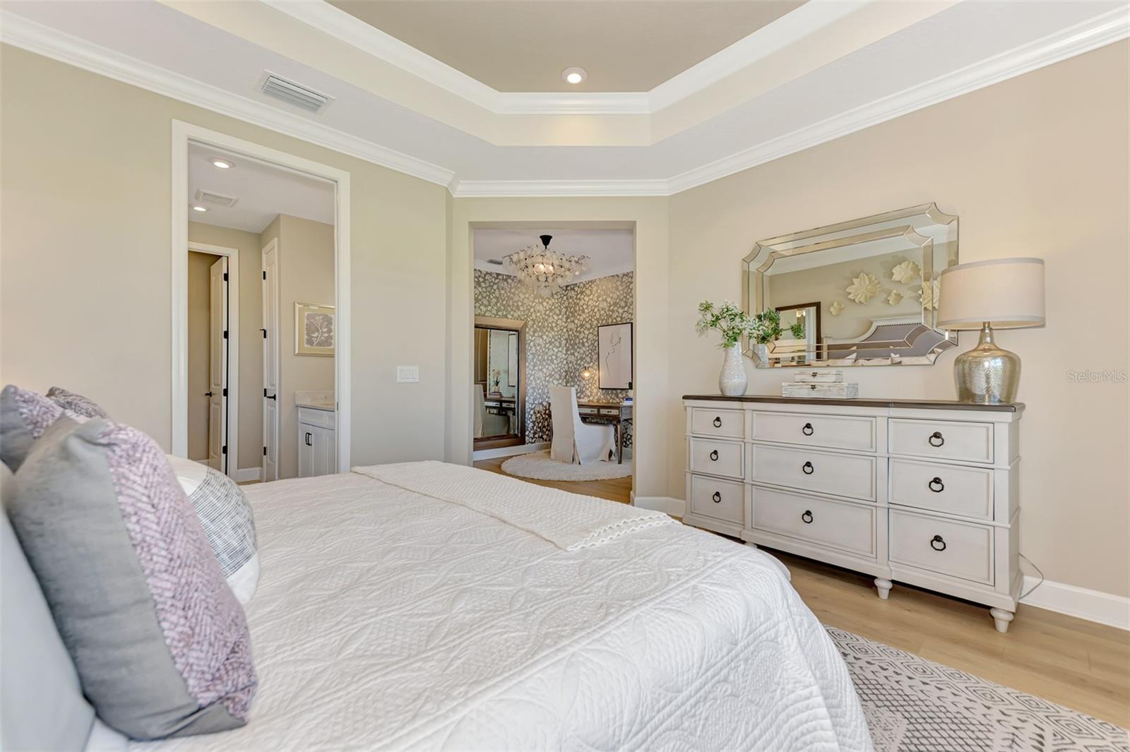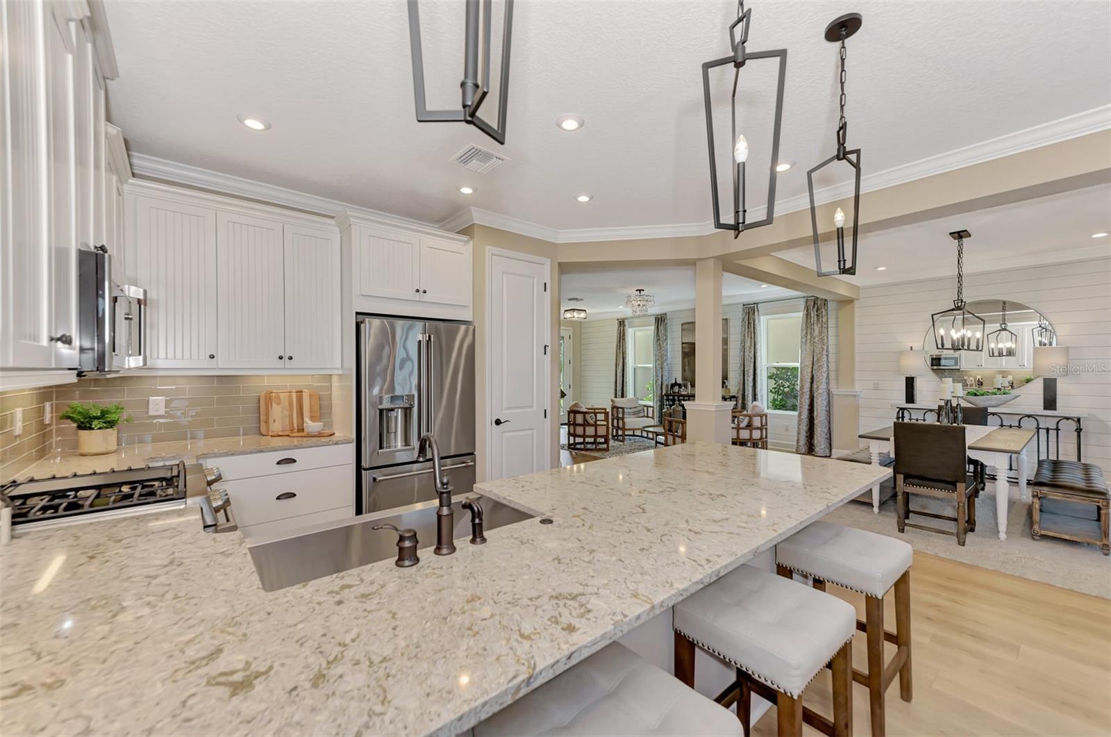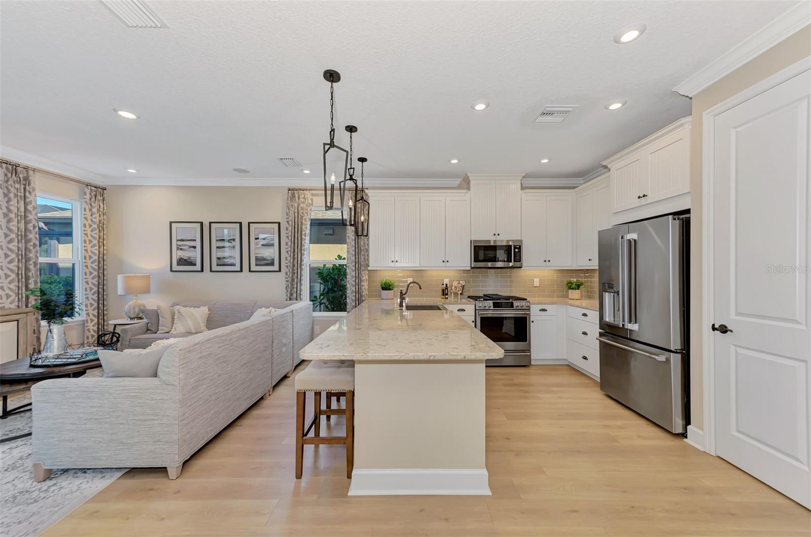 Welcome to an extraordinary opportunity to own a magnificent model home located in the exclusive Skye Ranch community of Sarasota, FL. This stunning residence spans an impressive 3,207 square feet and boasts a thoughtfully designed layout featuring four generously sized bedrooms and two and a half elegant bathrooms. Every corner of this home is adorned with exquisite high-end finishes, epitomizing luxury and sophistication.Upon entering, you are greeted by a gourmet kitchen that serves as the heart of the home. It is equipped with sleek quartz countertops and a striking glass backsplash that adds a touch of modern elegance. The kitchen's functional design is perfect for both everyday cooking and hosting lavish dinner parties. Complementing this space is the meticulously planned lighting scheme, which includes recessed lights that enhance the ambiance and highlight the architectural details, such as the beautifully crafted wood crown molding found throughout the home.The open-concept layout seamlessly connects the indoor and outdoor living spaces, creating an ideal environment for entertaining guests or enjoying tranquil family moments. Step outside into a personal oasis where a private pool awaits, surrounded by a screened lanai that offers shade and comfort. Adjacent to the pool, a charming brick fire pit area provides a perfect setting for cozy gatherings under the starlit Florida sky.Adding to the home's convenience is an attached garage, providing ample storage and protection for vehicles, as well as laundry facilities that enhance daily living. The Skye Ranch community itself offers a wealth of amenities, ensuring a lifestyle of comfort and leisure. Residents have access to a state-of-the-art fitness gym, beautifully landscaped common outdoor spaces, a well-equipped playground, tennis courts, and a community pool, providing endless opportunities for recreation and relaxation.The home is equipped with impact glass windows and doors, providing peace of mind with enhanced security and energy efficiency. Strategically located, this property offers easy access to I-75, making travel convenient, and places you within proximity to the stunning Siesta Key Beach, renowned for its pristine sands and clear waters. An array of shopping and dining options are also nearby, allowing for an enriched lifestyle filled with convenience and choice.This exceptional home is more than just a place to live; it is an invitation to experience unparalleled luxury and comfort. Don't let this opportunity pass you by. Schedule a showing today and step into a world of elegance and distinction.