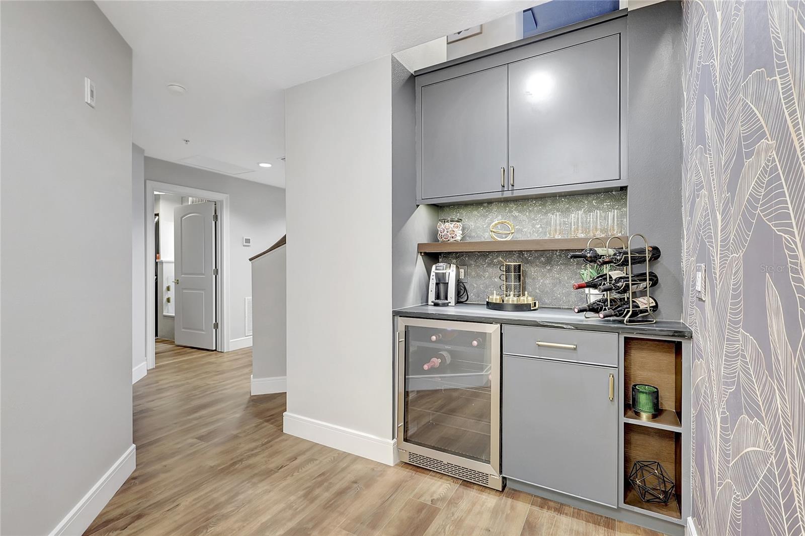 Appliances: Bar Fridge, Built-In Oven, Convection Oven, Cooktop, Dishwasher, Disposal, Dryer, Electric Water Heater, Exhaust Fan, Ice Maker, Microwave, Range Hood, Refrigerator, Wine Refrigerator