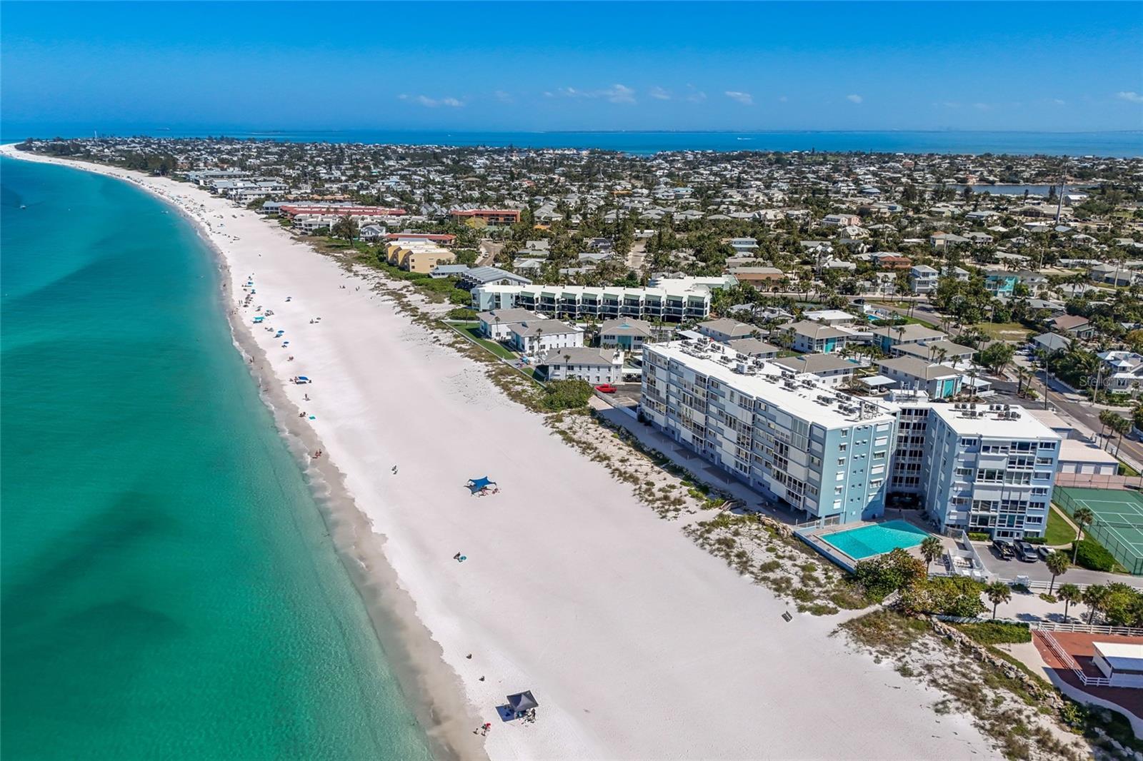 Sweeping Gulf sunsets, sugar-white sand, and the unmistakable charm of Anna Maria Island -- now offered at a refreshed price. Perched on the 5th floor of the Martinique, this rarely available beachfront residence puts the entire horizon at your feet, where turquoise water stretches as far as the eye can see and the nightly sunset show never plays the same way twice.Floor-to-ceiling glass pulls the Gulf straight into the open living space and primary suite, with sunlight shifting from gold to rose to amber across the day. Inside, a crisp coastal palette of stone countertops, shaker cabinetry, and a generous breakfast bar makes entertaining effortless, while two spacious bedrooms and two full baths offer comfort and privacy for family and guests.Beyond your door, the Martinique delivers true resort living -- heated beachfront pool, tennis courts, and direct access to powder-soft sand and the calm, shimmering Gulf. A deeded garage and private storage keep paddleboards, bikes, and beach gear at the ready.And then there's the island itself. Anna Maria's seven-mile ribbon of old-Florida charm is yours to roam: hop the free island trolley to Pine Avenue's boutiques and cafs, cast a line off the beach, paddleboard the bayside flats, or settle in at the Sandbar for dinner with your toes in the sand. With no high-rises and a pace all its own, Anna Maria stays quietly, beautifully unchanged -- the kind of place where seasons melt into one long coastal summer. A refreshed price on one of the Gulf's most coveted addresses. This is your spring to claim it.