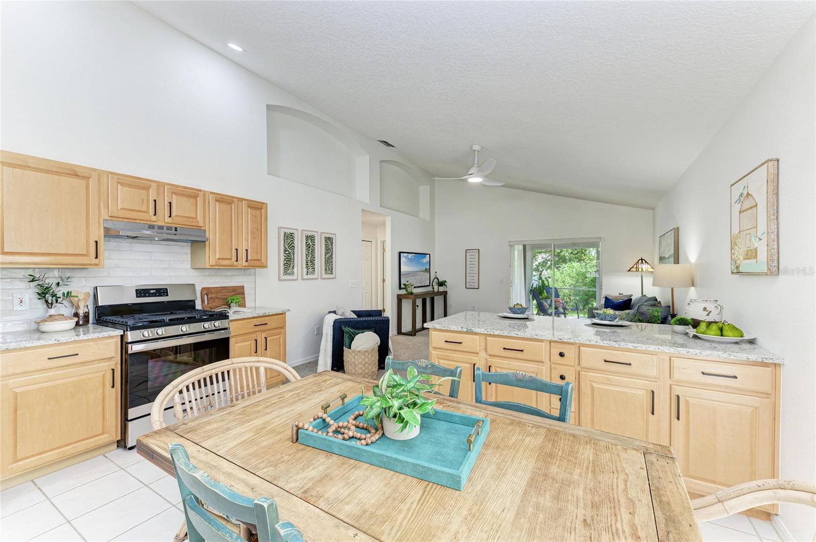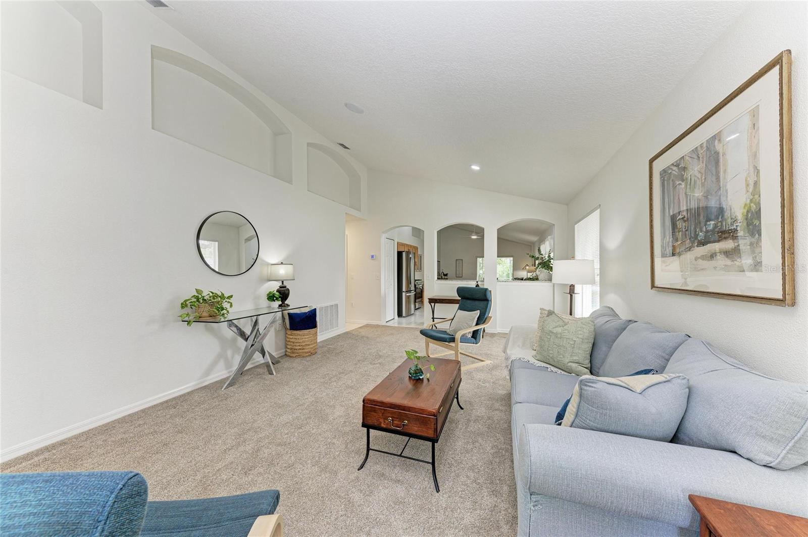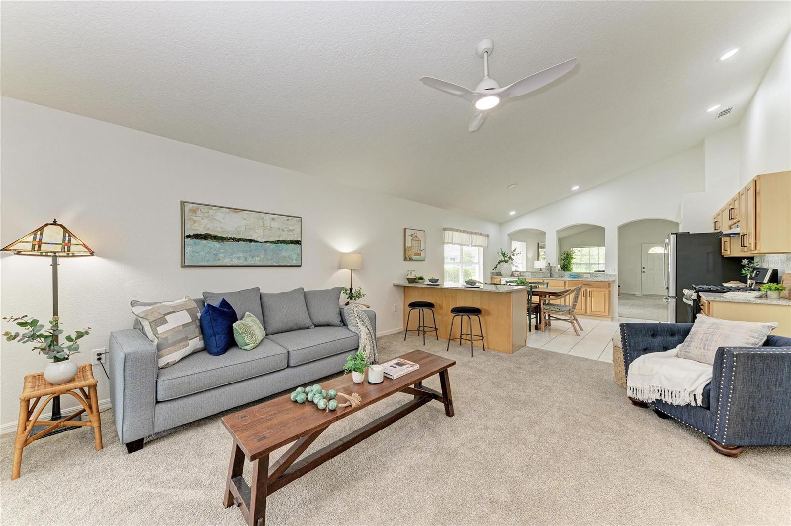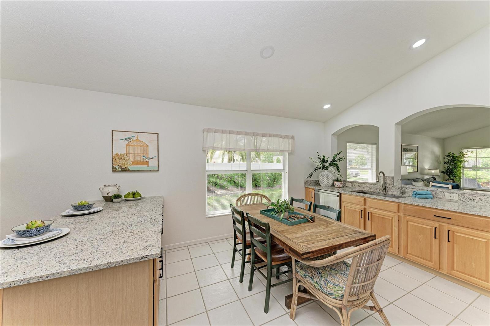 Welcome to your peaceful retreat in the heart of Summerfield Forest, one of the most desirable neighborhoods in Lakewood Ranch. Unlike other Summerfield enclaves, Summerfield Forest features its own community pool -- and with this home located right next door, you'll enjoy all the benefits of a pool lifestyle without any of the maintenance. This delightful 3-bedroom, 2-bathroom home is boasting a host of recent upgrades that make it move-in ready. Step inside to an airy open floor plan with vaulted ceilings, large windows, and fresh interior paint (2025). All ceiling lighting has been updated to sleek LED flat fixtures and fans with remotes (2025), and new smoke detectors (2025) ensure peace of mind. The spacious living and dining areas flow seamlessly into the updated kitchen, which shines with brand-new granite countertops (2025), a large peninsula with storage and room for seating, and a complete suite of all-new stainless-steel appliances (2025). Just off the kitchen, the family room features custom built-in shelving and sliding glass doors that open to the screened lanai, creating an effortless indoor-outdoor lifestyle. The primary suite that's tucked away offers a serene retreat with a walk-in closet and an en-suite bath featuring new quartz countertops (2025), updated plumbing fixtures and toilets (2025), a spa-like soaking tub, and a walk-in shower. Two comfortable guest bedrooms share a beautifully refreshed guest bath, also upgraded with quartz counters and new fixtures (2025). Beyond the interior, this home has been thoughtfully cared for inside and out. The exterior, porch, and lanai were freshly painted (2025), the garage floor has been newly refinished (2025), and the roof was replaced recently (2019). A brand-new sprinkler system (2025) keeps the landscaping lush and vibrant. Mechanically, the home is equally strong, with a new A/C unit (2021) still under a transferable maintenance contract through July 2026 and a new thermostat installed (2025). Summerfield Forest also enjoy low HOA fees. The neighborhood offers access to Lakewood Ranch's many amenities, including parks, Heron's Nest Nature Park, walking trails, and playgrounds, as well as convenient shopping and dining. With top-rated schools nearby and the Gulf Coast's stunning beaches just a short drive away, this home provides the very best of Florida living.