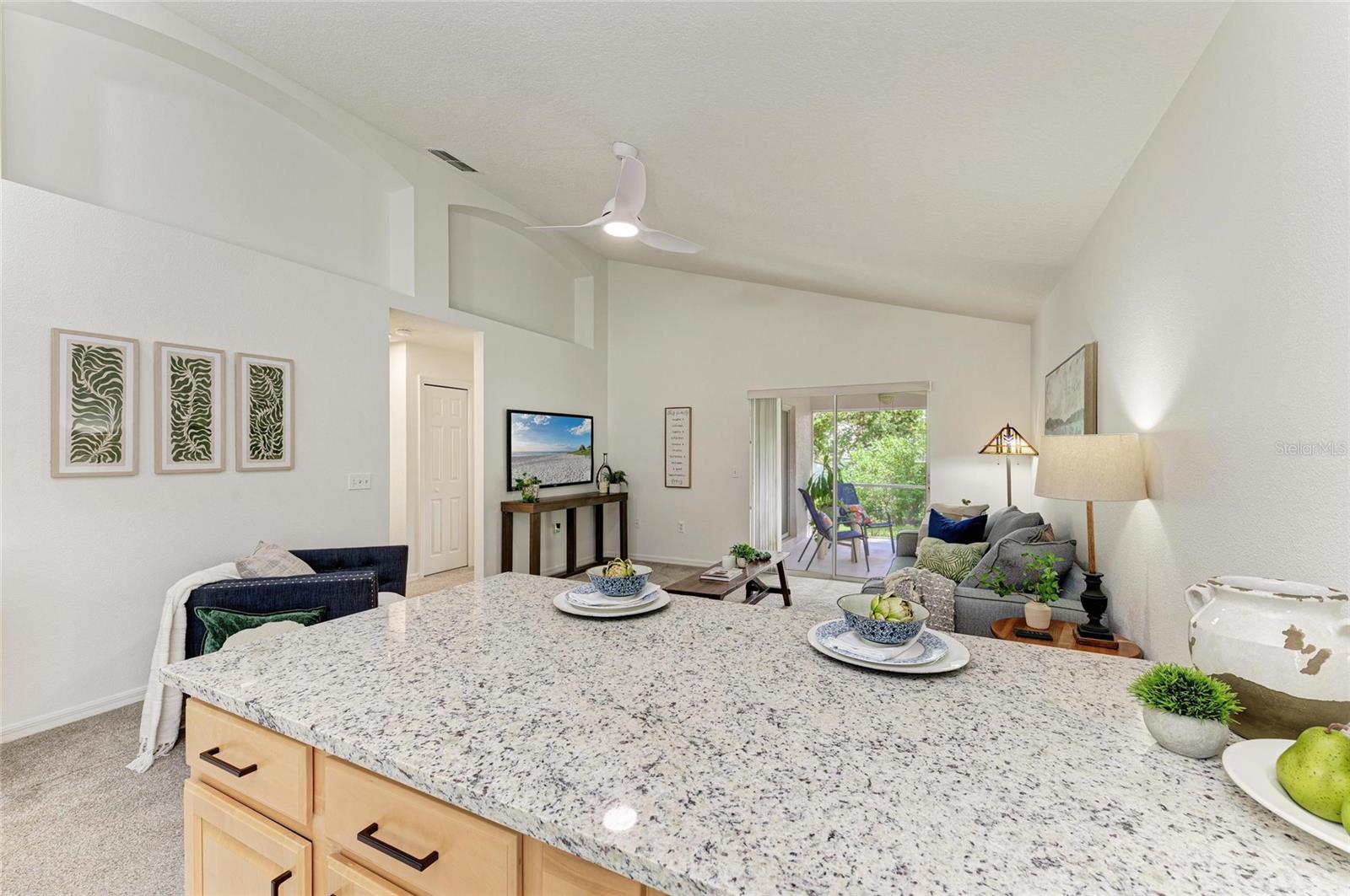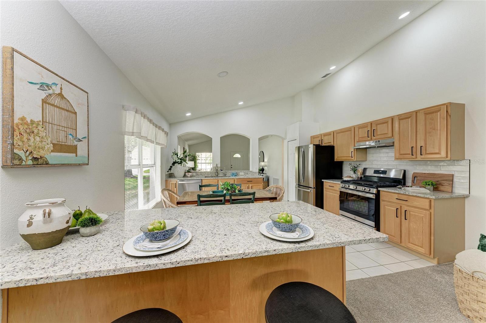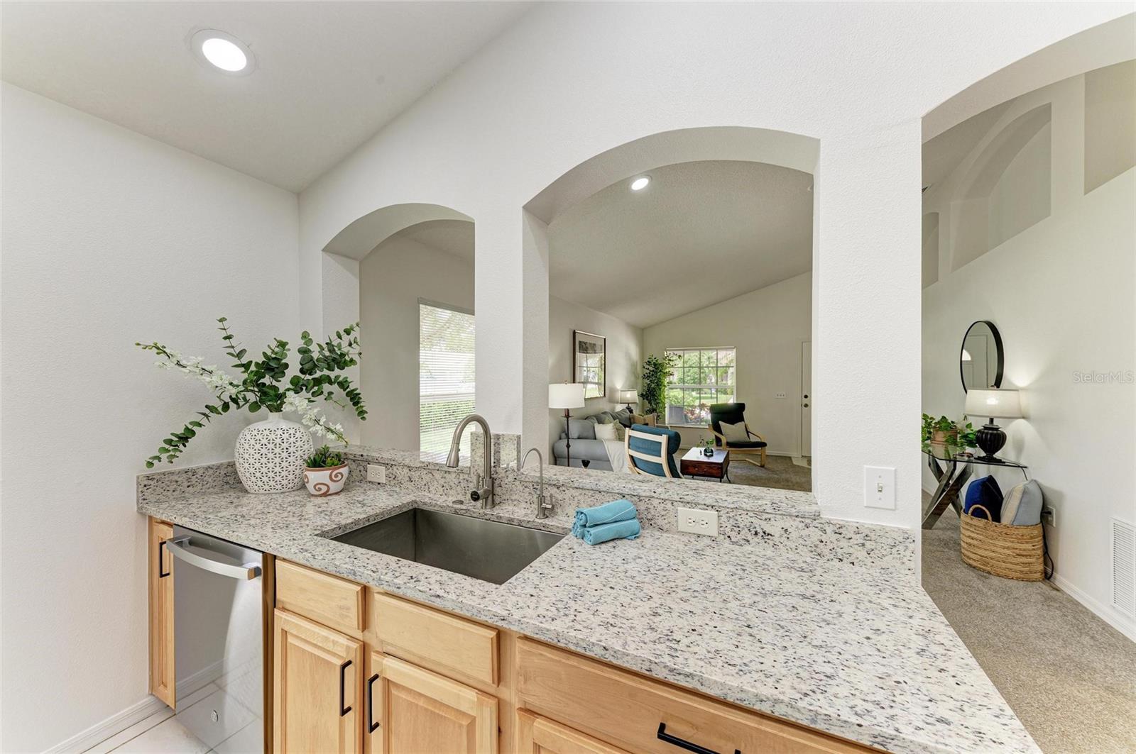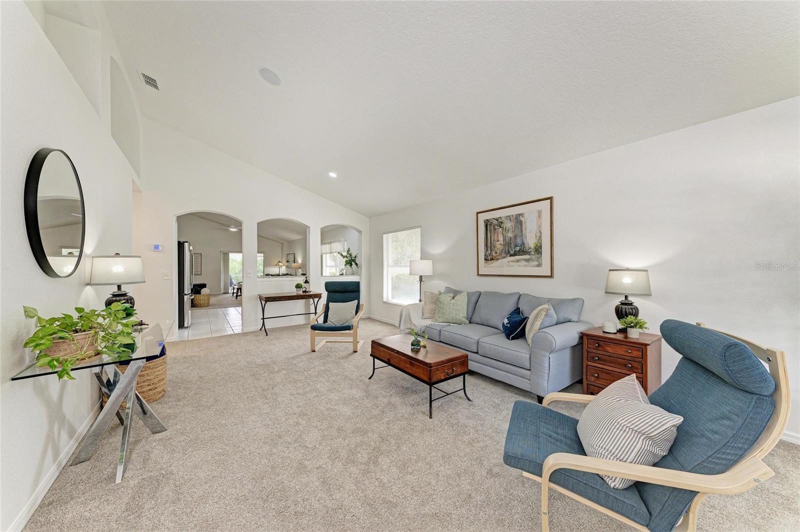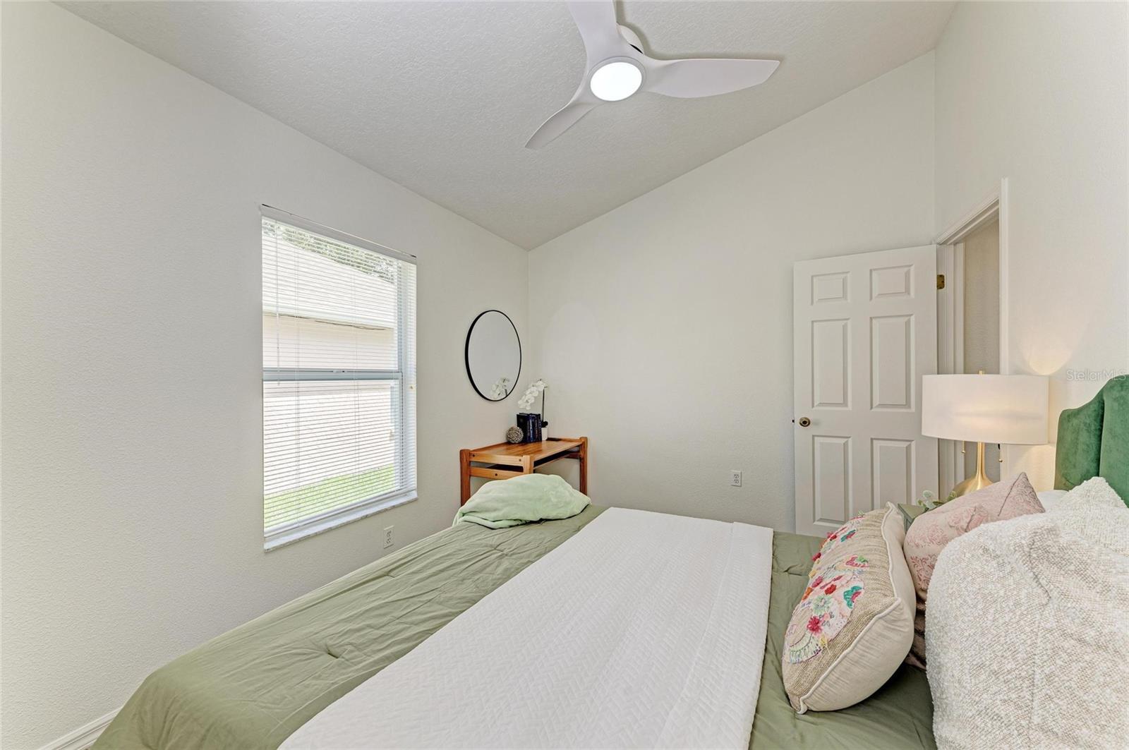 Welcome to your peaceful retreat in the heart of Summerfield Forest, one of the most desirable neighborhoods in Lakewood Ranch. Unlike other Summerfield enclaves, Summerfield Forest features its own community pool -- and with this home located right next door, you'll enjoy all the benefits of a pool lifestyle without any of the maintenance. This delightful 3-bedroom, 2-bathroom home is boasting a host of recent upgrades that make it move-in ready. Step inside to an airy open floor plan with vaulted ceilings, large windows, and fresh interior paint (2025). All ceiling lighting has been updated to sleek LED flat fixtures and fans with remotes (2025), and new smoke detectors (2025) ensure peace of mind. The spacious living and dining areas flow seamlessly into the updated kitchen, which shines with brand-new granite countertops (2025), a large peninsula with storage and room for seating, and a complete suite of all-new stainless-steel appliances (2025). Just off the kitchen, the family room features custom built-in shelving and sliding glass doors that open to the screened lanai, creating an effortless indoor-outdoor lifestyle. The primary suite that's tucked away offers a serene retreat with a walk-in closet and an en-suite bath featuring new quartz countertops (2025), updated plumbing fixtures and toilets (2025), a spa-like soaking tub, and a walk-in shower. Two comfortable guest bedrooms share a beautifully refreshed guest bath, also upgraded with quartz counters and new fixtures (2025). Beyond the interior, this home has been thoughtfully cared for inside and out. The exterior, porch, and lanai were freshly painted (2025), the garage floor has been newly refinished (2025), and the roof was replaced recently (2019). A brand-new sprinkler system (2025) keeps the landscaping lush and vibrant. Mechanically, the home is equally strong, with a new A/C unit (2021) still under a transferable maintenance contract through July 2026 and a new thermostat installed (2025). Summerfield Forest also enjoy low HOA fees. The neighborhood offers access to Lakewood Ranch's many amenities, including parks, Heron's Nest Nature Park, walking trails, and playgrounds, as well as convenient shopping and dining. With top-rated schools nearby and the Gulf Coast's stunning beaches just a short drive away, this home provides the very best of Florida living.