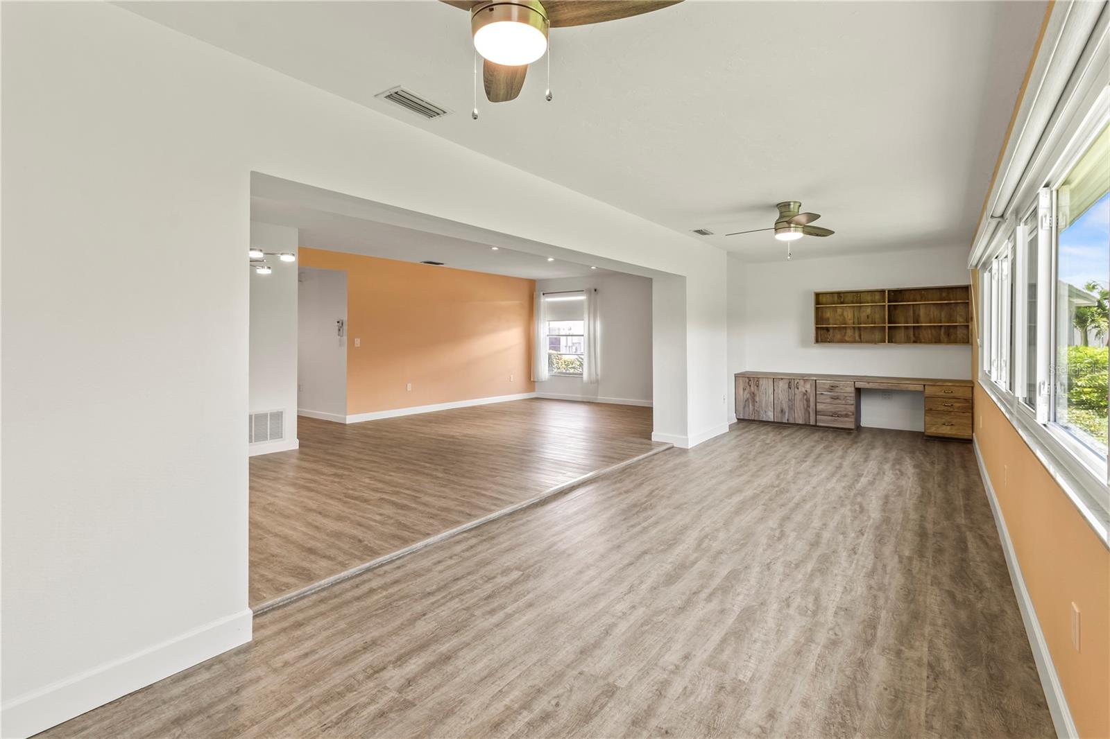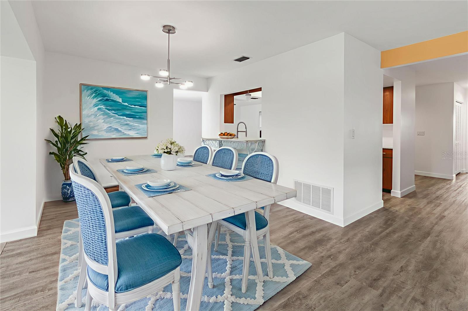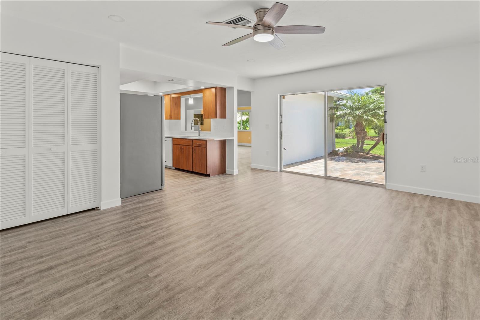 One or more photo(s) has been virtually staged. Welcome to your dream 55+ community in charming West Bradenton! This beautifully maintained condo, nestled on a quiet cul-de-sac in the sought-after Village Green community, offers the perfect blend of comfort, convenience, and peace of mind. Built in one of the most desirable high-and-safe locations. Securely located in Flood Zone X and Evacuation Zone E. With over 1900 sq. ft. of versatile living space, this home features 2 spacious bedrooms, 2 updated bathrooms, and a large galley-style kitchen with new quartz countertops, striking herringbone backsplash, and classic mid-century modern cabinetry. Expansive living areas include bright living/dining room, cozy family room, and a sun-filled Florida room. A roomy 2-car garage with built-in cabinets and shelving, perfect for storage or workspace. Recent updates make this home truly move-in ready with luxury vinyl flooring, nearly all-new windows, refreshed bathrooms, and exterior upgrades including new driveway and charming paver walkway and patio. Step outside and you're moments from the sparkling community pool, perfect for relaxing or socializing. The location can't be beat - minutes from Anna Maria Island's beaches, excellent medical facilities, shopping, dining, and outdoor escapes like Robinson Preserve, Palma Sola Botanical Park, and DeSoto Park. This home is ideal for both relaxation and entertaining, offering a lifestyle that's as practical as it is enjoyable. Don't just dream about Florida living--make it your reality!