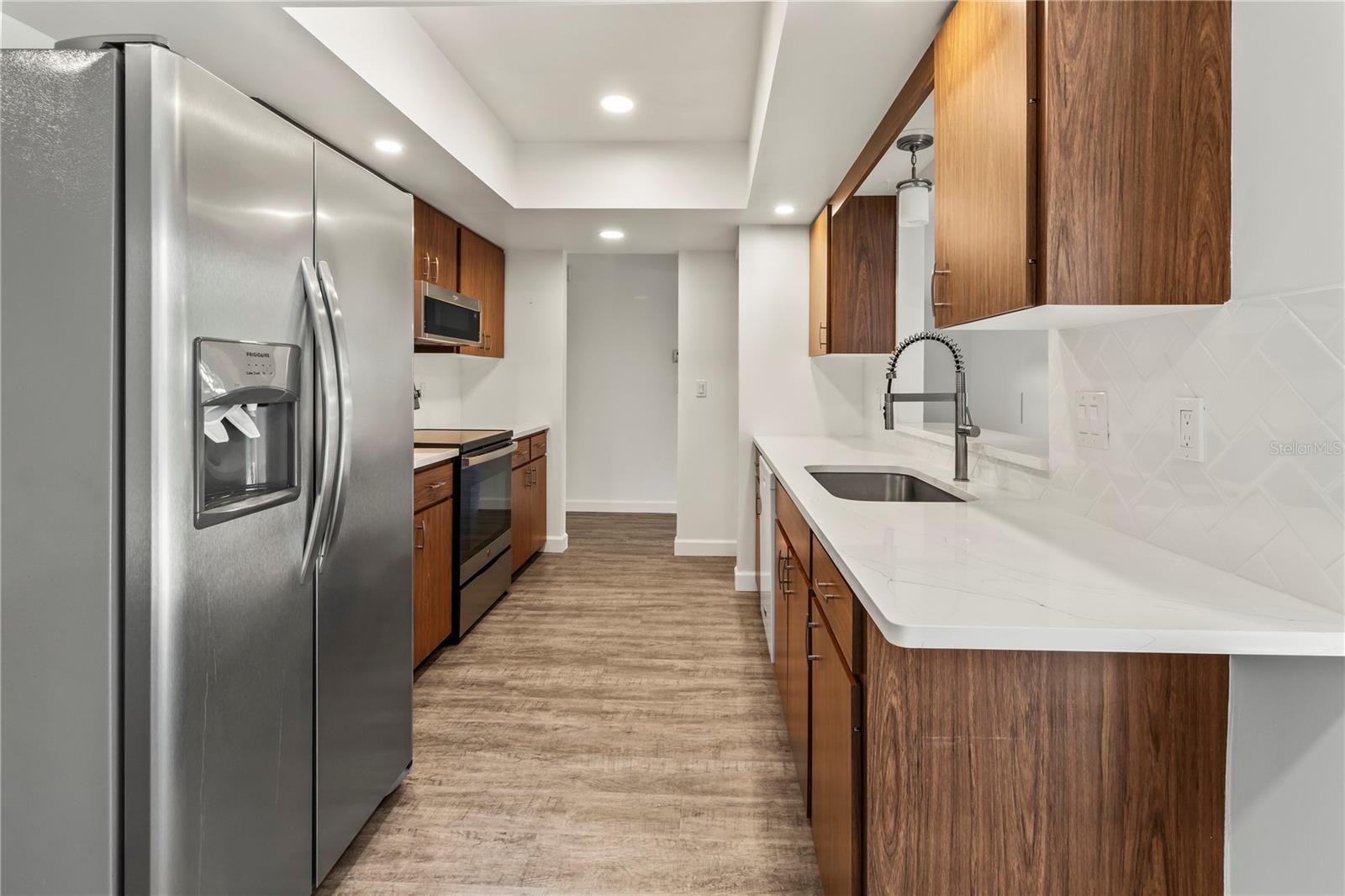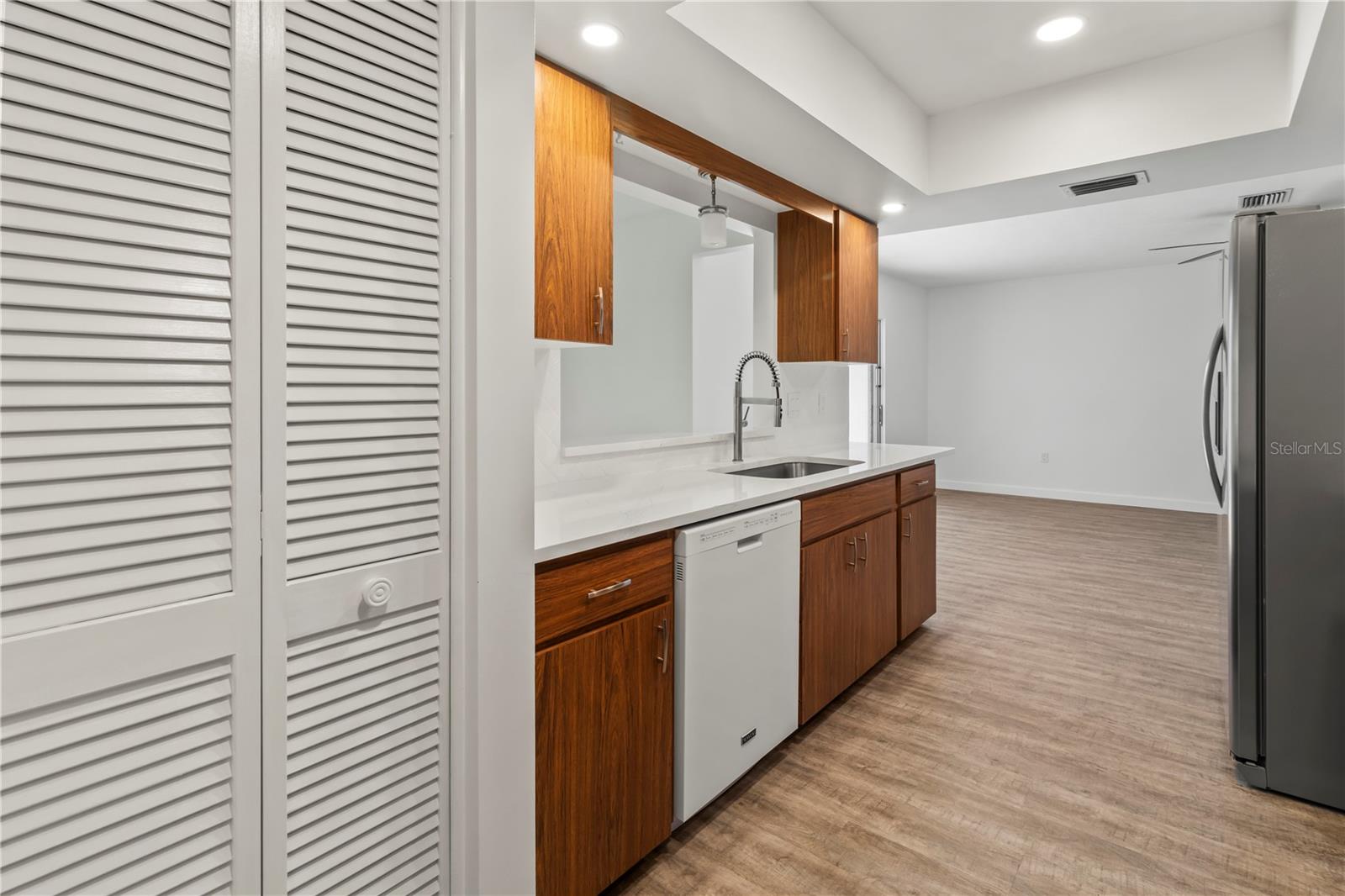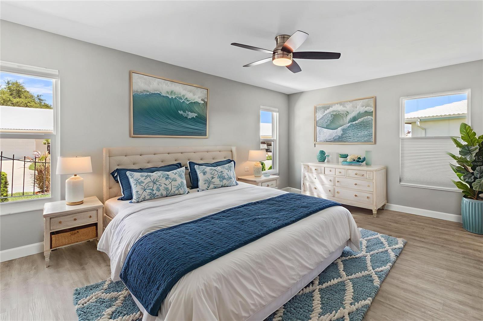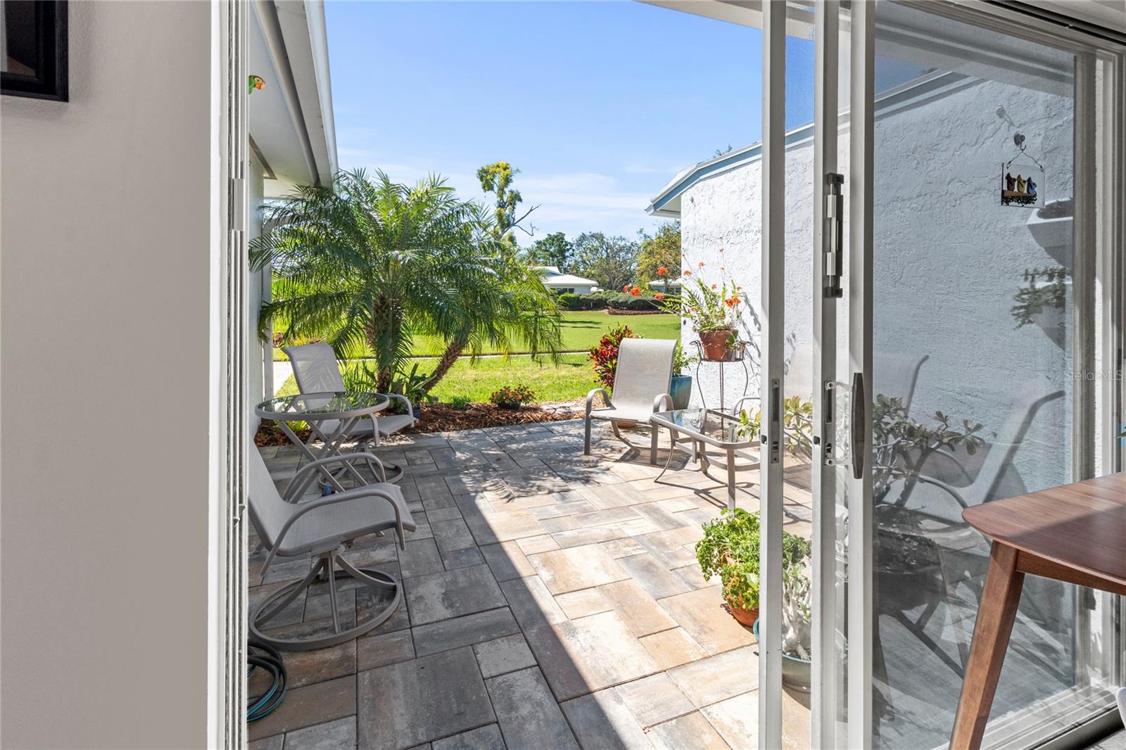 One or more photo(s) has been virtually staged. Welcome to your dream 55+ community in charming West Bradenton! This beautifully maintained condo, nestled on a quiet cul-de-sac in the sought-after Village Green community, offers the perfect blend of comfort, convenience, and peace of mind. Built in one of the most desirable high-and-safe locations. Securely located in Flood Zone X and Evacuation Zone E. With over 1900 sq. ft. of versatile living space, this home features 2 spacious bedrooms, 2 updated bathrooms, and a large galley-style kitchen with new quartz countertops, striking herringbone backsplash, and classic mid-century modern cabinetry. Expansive living areas include bright living/dining room, cozy family room, and a sun-filled Florida room. A roomy 2-car garage with built-in cabinets and shelving, perfect for storage or workspace. Recent updates make this home truly move-in ready with luxury vinyl flooring, nearly all-new windows, refreshed bathrooms, and exterior upgrades including new driveway and charming paver walkway and patio. Step outside and you're moments from the sparkling community pool, perfect for relaxing or socializing. The location can't be beat - minutes from Anna Maria Island's beaches, excellent medical facilities, shopping, dining, and outdoor escapes like Robinson Preserve, Palma Sola Botanical Park, and DeSoto Park. This home is ideal for both relaxation and entertaining, offering a lifestyle that's as practical as it is enjoyable. Don't just dream about Florida living--make it your reality!