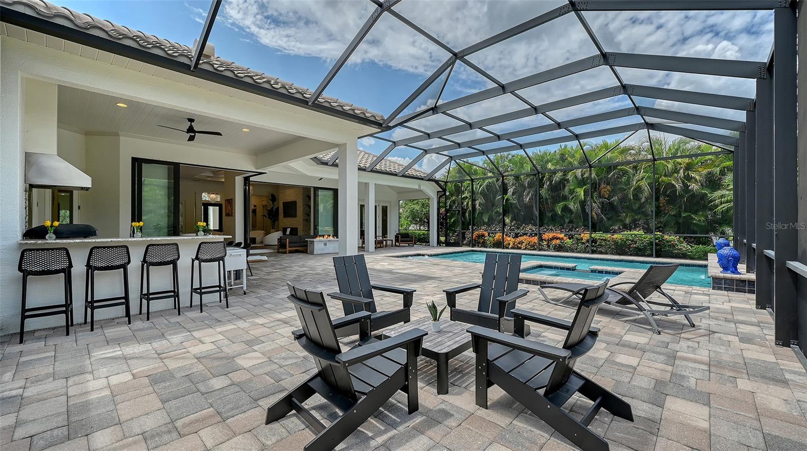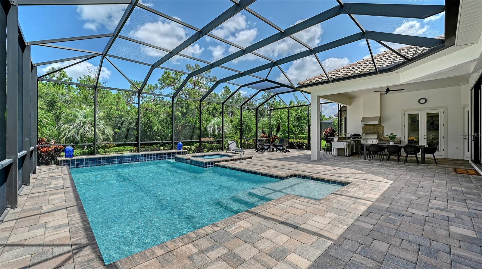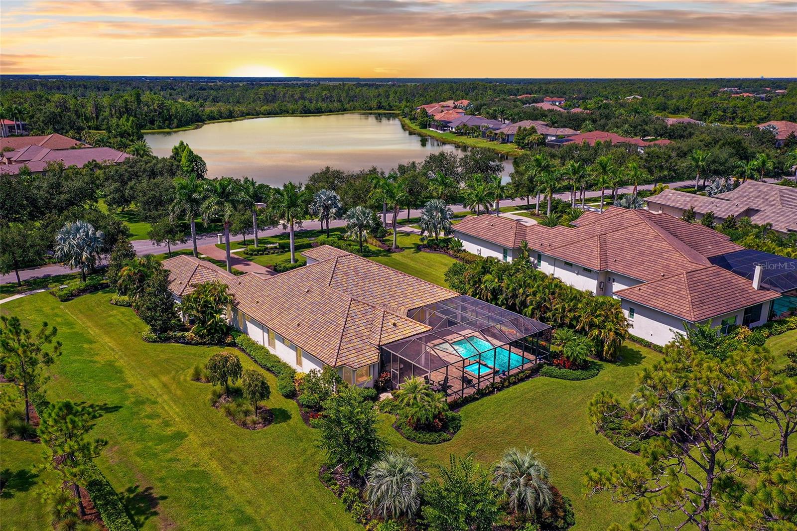 Set on a unique one-acre homesite in The Concession, 8361 Lindrick Lane captures the essence of refined Florida living. With tranquil lakefront sunsets at the front and a private preserve sanctuary at the rear, the orientation affords an unparalleled sense of serenity and seclusion. Its exceptional depth further distinguishes the property, offering the rare versatility to expand the residence or design a bespoke casita for your guests. The generous open plan blends elegance and comfort, showcasing 12-foot ceilings, wide-plank engineered flooring, and a striking stone feature wall with fireplace--elevating the home's timeless sophistication. Designed for both daily living and memorable entertaining, the home offers three bedrooms, three full baths, a custom office filled with natural light, and a versatile bonus/media room. The chef's kitchen is a centerpiece, featuring an impressive quartz island, natural gas cooking, built-in appliances, and seamless flow into the great room. Expansive pocketing sliders and a dramatic disappearing corner of glass open the interiors to the lanai, blurring the lines between indoor comfort and outdoor entertaining. The sweeping lanai serves as a private oasis, with a heated pool and spa, a fully equipped outdoor kitchen, multiple dining and lounge areas, and space for a firepit beneath the stars. The primary suite is a luxurious retreat with French doors to the pool terrace, oversized walk-in closets, and a spa-inspired bath. A three-car garage and thoughtful finishes throughout further enhance this exceptional property. Constructed in 2015 and located outside of a high-risk flood zone, this residence offers both elegance and peace of mind. Renowned for its championship golf (available through optional membership), the Concession has hosted prestigious PGA Tour events including the 2021 World Golf Championships and the 2023 World Champions Cup, complemented by celebrated wine-focused dining and serene natural beauty. Ideally located in Lakewood Ranch, near luxury shopping, fine dining, and Sarasota's finest Gulf Coast beaches, this residence offers the perfect blend of exclusivity and connection.