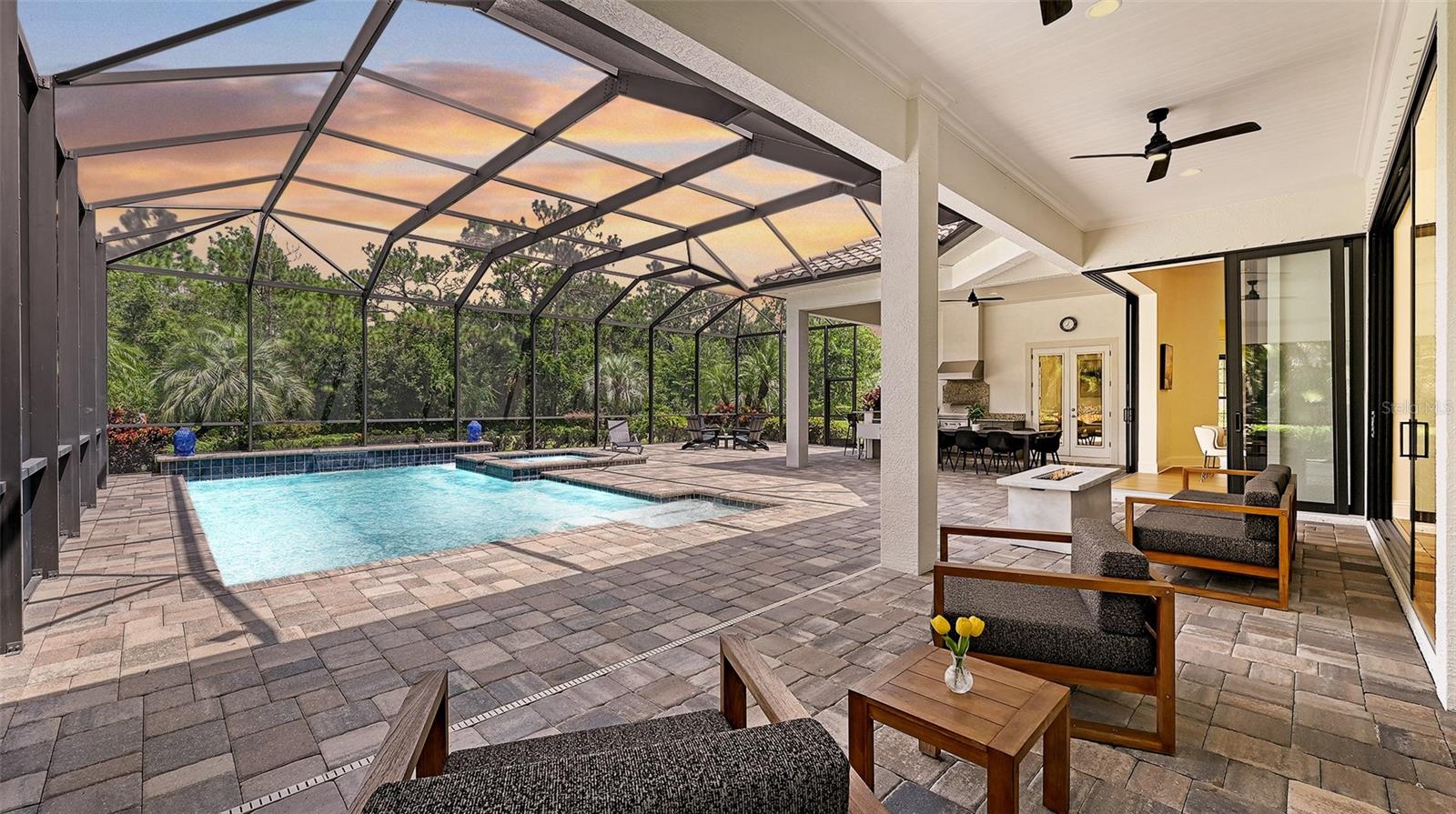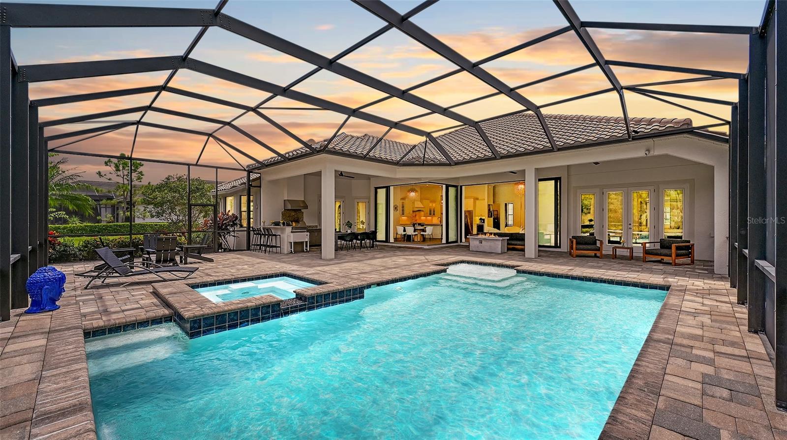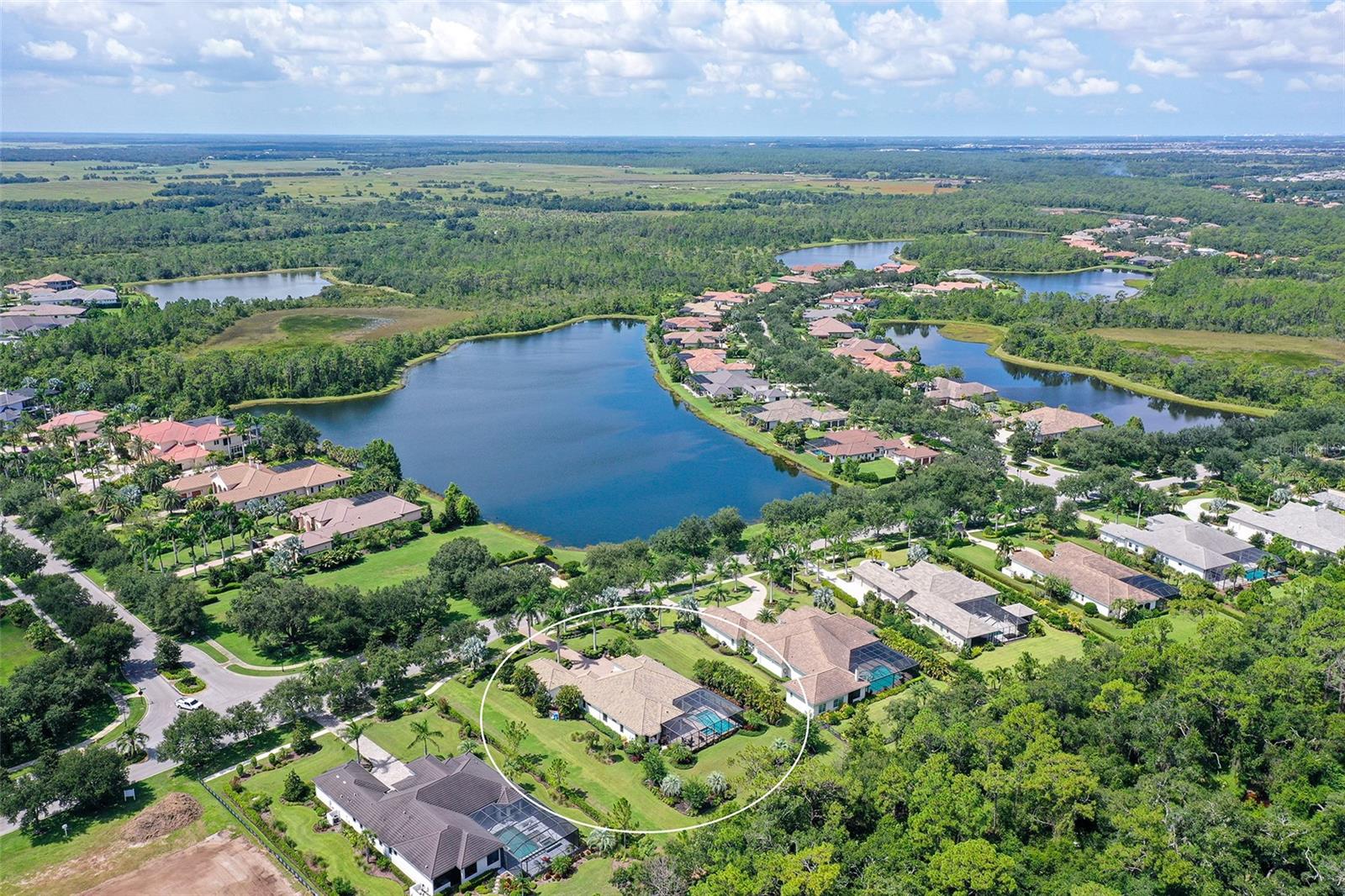 Set on a unique one-acre homesite in The Concession, 8361 Lindrick Lane captures the essence of refined Florida living. With tranquil lakefront sunsets at the front and a private preserve sanctuary at the rear, the orientation affords an unparalleled sense of serenity and seclusion. Its exceptional depth further distinguishes the property, offering the rare versatility to expand the residence or design a bespoke casita for your guests. The generous open plan blends elegance and comfort, showcasing 12-foot ceilings, wide-plank engineered flooring, and a striking stone feature wall with fireplace--elevating the home's timeless sophistication. Designed for both daily living and memorable entertaining, the home offers three bedrooms, three full baths, a custom office filled with natural light, and a versatile bonus/media room. The chef's kitchen is a centerpiece, featuring an impressive quartz island, natural gas cooking, built-in appliances, and seamless flow into the great room. Expansive pocketing sliders and a dramatic disappearing corner of glass open the interiors to the lanai, blurring the lines between indoor comfort and outdoor entertaining. The sweeping lanai serves as a private oasis, with a heated pool and spa, a fully equipped outdoor kitchen, multiple dining and lounge areas, and space for a firepit beneath the stars. The primary suite is a luxurious retreat with French doors to the pool terrace, oversized walk-in closets, and a spa-inspired bath. A three-car garage and thoughtful finishes throughout further enhance this exceptional property. Constructed in 2015 and located outside of a high-risk flood zone, this residence offers both elegance and peace of mind. Renowned for its championship golf (available through optional membership), the Concession has hosted prestigious PGA Tour events including the 2021 World Golf Championships and the 2023 World Champions Cup, complemented by celebrated wine-focused dining and serene natural beauty. Ideally located in Lakewood Ranch, near luxury shopping, fine dining, and Sarasota's finest Gulf Coast beaches, this residence offers the perfect blend of exclusivity and connection.
