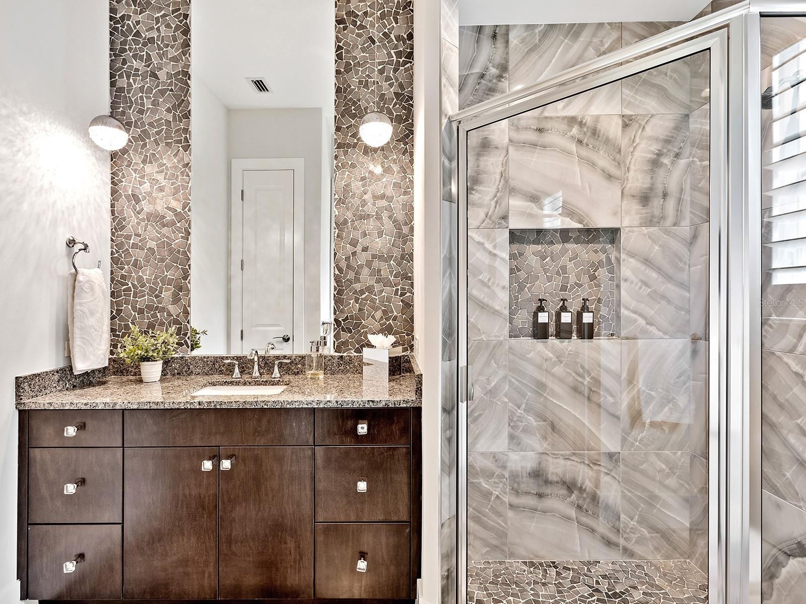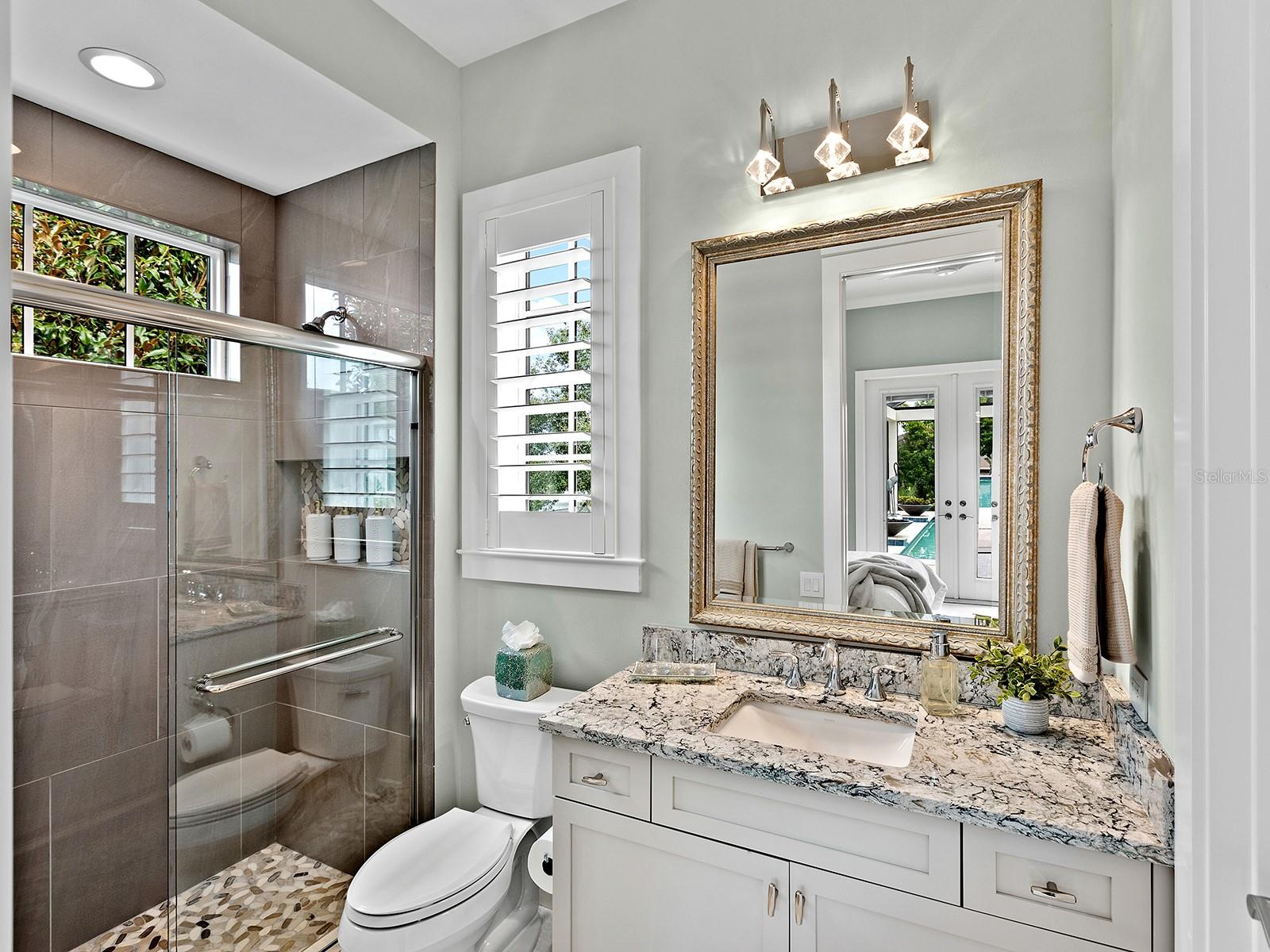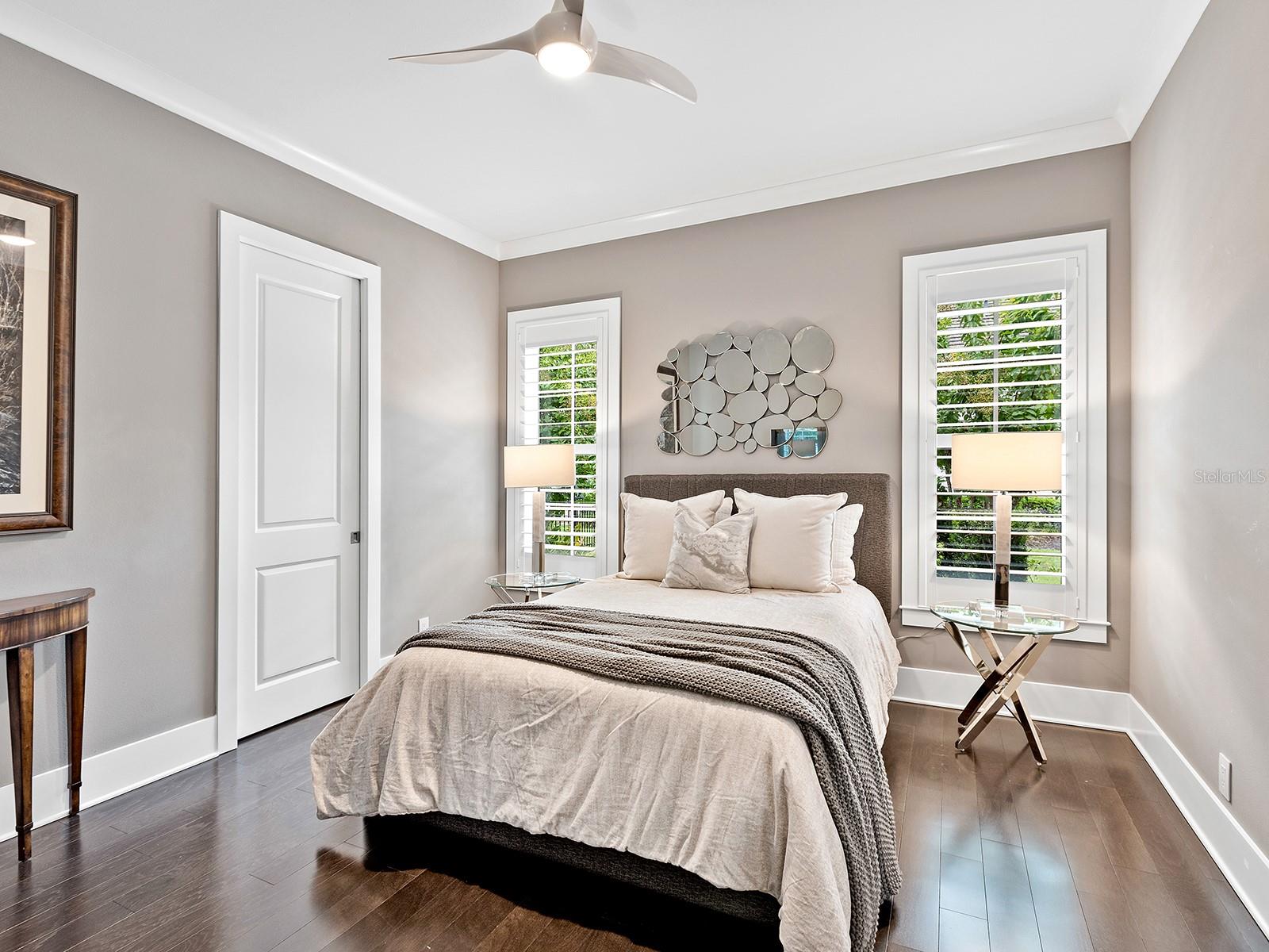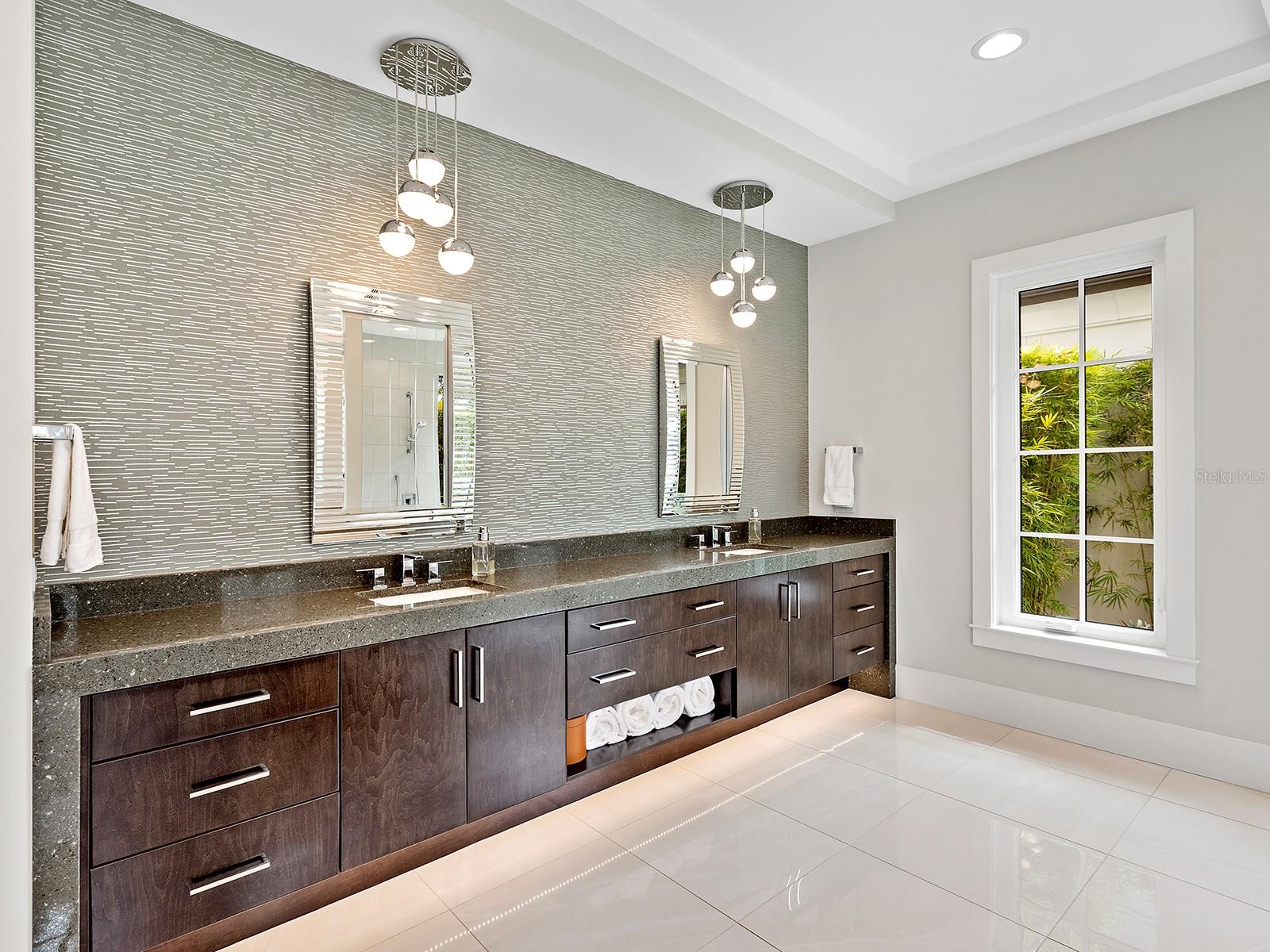 Enjoy the best of what The Lake Club has to offer with this resplendent lakeside residence. From this 2019 Arthur Rutenberg custom home the perfect Florida lifestyle comes to life with western sunset views over the expansive lake from the lanai and peaceful conservation just outside the front door. Gracing over 0.5 acres, this perfectly poised property offers privacy, lush Florida landscaping and a luxurious residence with hand selected details in every room. With over 4,100 SF of living space, this open and modern floor plan offers 4 en-suite bedrooms and 4.5 bathrooms, including a private study, flexible bonus room, and a desirable separate casita guesthouse with kitchenette. The paver driveway invites you home between towering palms and 3-car split bay garages each with their own air conditioning. Enter from the 2024 iron double door to impressive lake views from the moment you step inside where you will be enchanted by luxe upgrades including polished marble flooring, cove crown molding, designer light fixtures and custom window treatments. The great room sparkles with a custom feature wall of stacked stone, gas fireplace and custom coffered ceiling with lighting. Through impact pocketing sliding glass doors, the outdoors are seamlessly integrated into the floor plan featuring wood ceilings, travertine pavers, classic colonnade screen enclosure, 2023 Nebula star lights integrated into the pool cage, 2022 hurricane shades and outstanding lake views. The pool and spa are the perfect place to relax with sunken 360-edge spa with fountain and dual fire bowls, or spend evenings gathered around the gas firepit or dine alfresco from the outdoor kitchen. Inside the Chef's kitchen will delight with completely custom wood cabinetry, large island with quartz counters, designer pendant lights, full height quartz backsplash, reverse osmosis, and a cleverly hidden oversized walk-in pantry with paneled door, abundant custom shelving and an additional full-size refrigerator. Cooking is a breeze with a stainless-steel appliance suite including Wolf gas range with Venta hood, Bosch dishwasher, Sub-Zero refrigerator, Wolf wall oven, Wolf microwave and Sub-Zero wine refrigerator. The dining room showcases disappearing corner impact sliders, designer light fixture, and custom dry bar with Sub-Zero wine refrigerator and stacked stone feature wall that mirrors the great room. The resplendent upgrades continue into the primary suite with engineered hardwood flooring, designer wallpaper and light fixtures, stunning lake views and dual walk-in closets. The spa-like bathroom will make you feel like you're at the Ritz every day with a large vanity featuring dual sinks, thick stone counters, and designer lighting; modern freestanding soaking tub; glass enclosed walk-in rain shower; and private outdoor courtyard oasis. Two split guest suites offer privacy, walk-in closets and fully upgraded en-suite bathrooms; plus, there is a separate casita guesthouse with a private entrance, morning bar kitchenette, walk-in closet and en-suite bath. Additional spaces in this exceptional home include an impressive study with 2023 custom built-ins, large bonus room, powder bath, laundry with plentiful cabinetry and separate walk-in storage. Peace of mind is secured with impact windows/doors, whole-home generator, and whole-home water filtration system. The Lake Club is an exclusive premier, gated community with a Grande Clubhouse, restaurant, pool, tennis, pickleball and more.