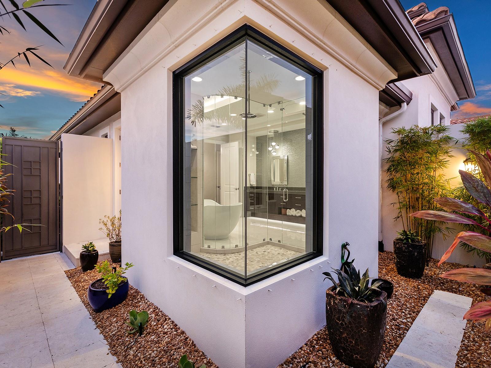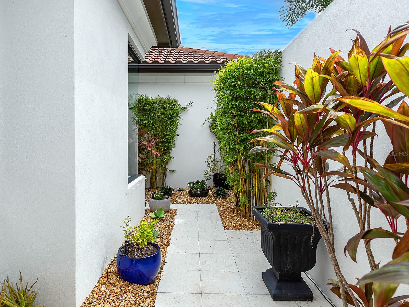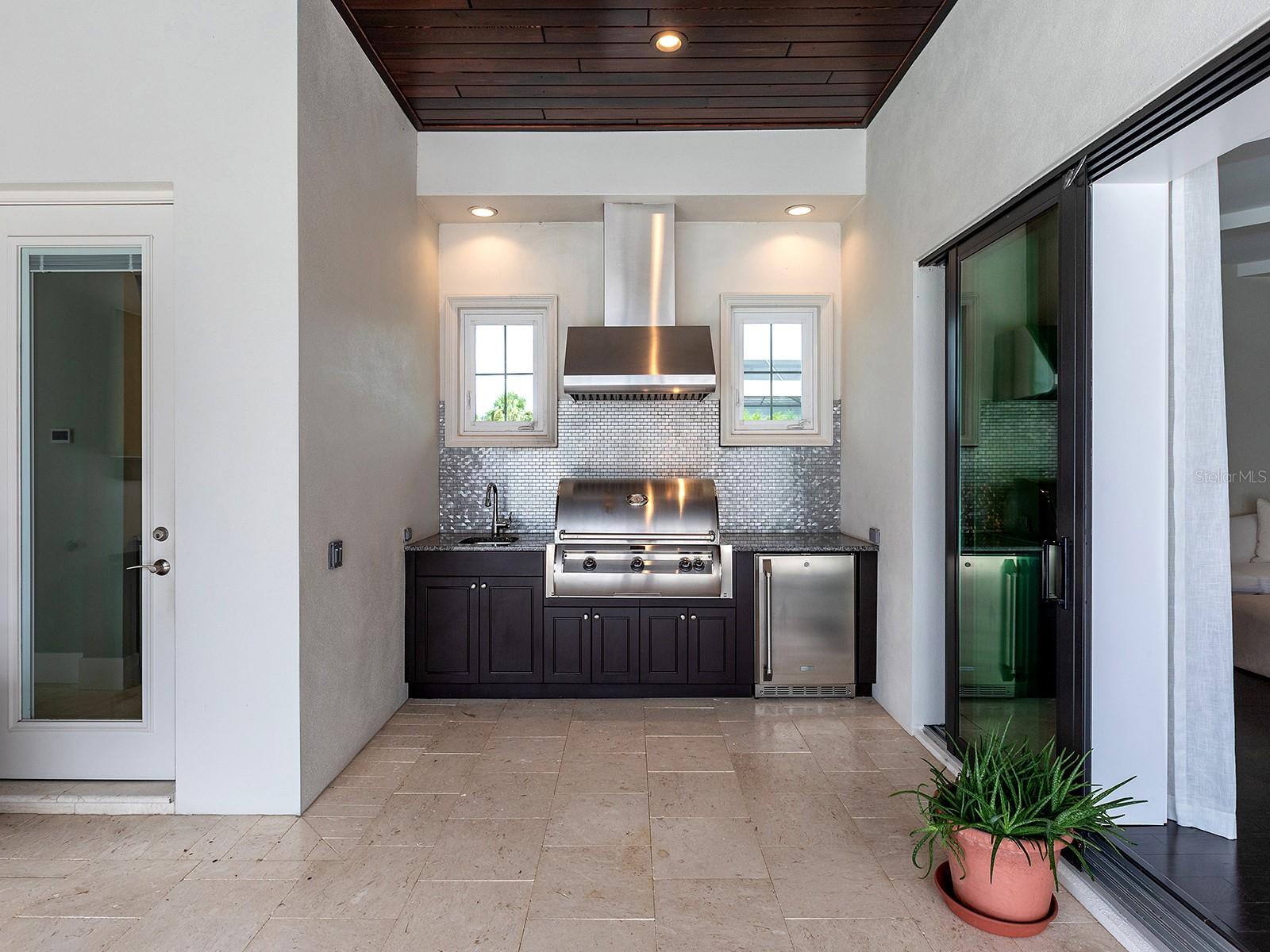 Exterior: Courtyard, French Doors, Outdoor Grill, Outdoor Kitchen, Private Mailbox, Rain Gutters, Sidewalk, Sliding Doors