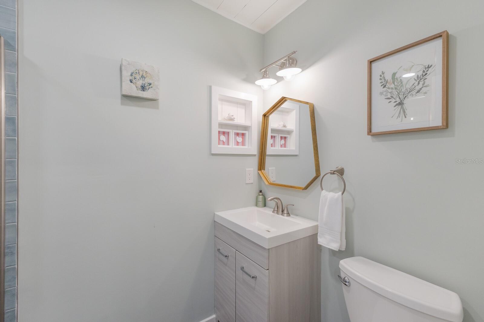 Exterior: Lighting, Outdoor Grill, Outdoor Shower, Private Mailbox, Rain Gutters, Sliding Doors, Storage
